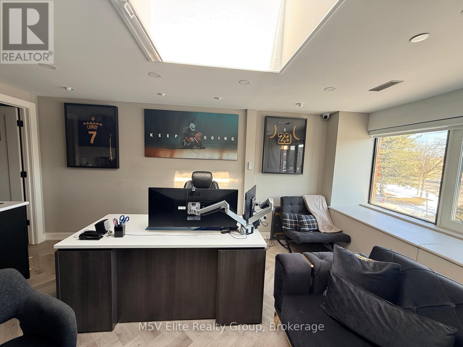 Centrally located in Vaughan, close to both Toronto and Brampton, this rare fully renovated modern corner unit offers 1,840 sq. ft. of completely finished space filled with natural light from expansive windows. The unit features seven private offices, a generous open area ideal for meetings, collaboration, or potential rental income, and a well-equipped kitchenette. The expansive primary office is illuminated by a skylight, includes automated blinds, and comes with a full washroom with shower and convenient laundry facilities for effortless functionality. Can be combined with Unit #16 for an even larger space. With its contemporary design and bright, airy layout, this turnkey commercial space offers style, practicality, and convenience. Exceptional building with ample parking, which includes low property taxes and low maintenance fees. For added flexibility, Vendor Take-Back financing can be arranged for qualified buyers. (id:50787)
