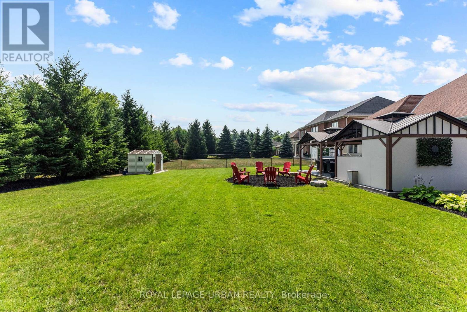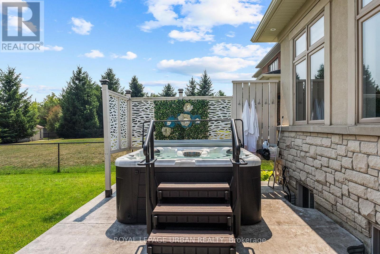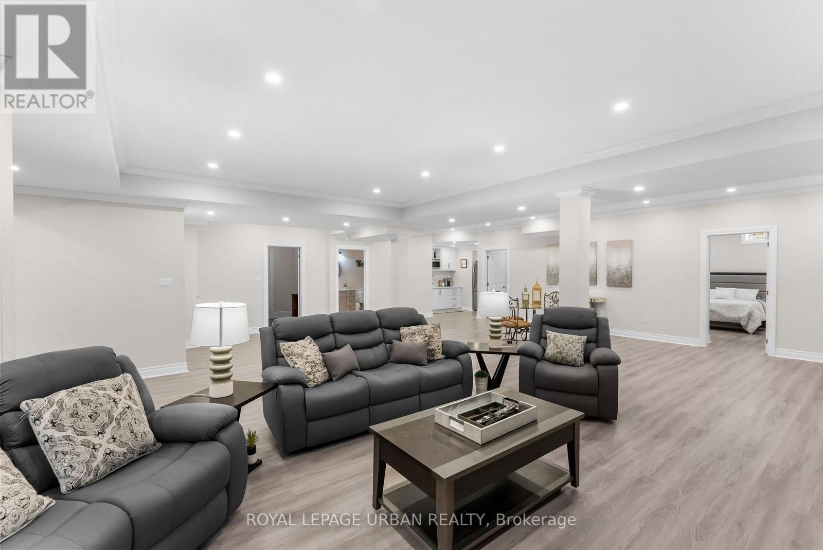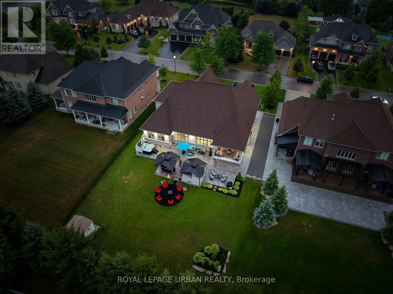 Welcome to this luxurious 6-bedroom, 5-bath bungaloft, perfectly positioned on an impressive 85 x 205 ft lot within one of Uxbridge's most exclusive gated golf course communities. Offering over 6,000 sq. ft. of finished living space with soaring 10 ft ceilings throughout, this home blends timeless elegance with modern convenience. The main level showcases a chef-inspired kitchen with Sub-Zero and Wolf appliances, walk-in pantry, custom wall units, and a convenient main-floor laundry. Expansive principal rooms flow seamlessly, with spacious bedrooms featuring walk-in closets for ultimate comfort. The fully finished basement offers versatile living and entertainment spaces, ideal for hosting family and friends. Every detail has been thoughtfully upgraded, including stamped concrete walkway, accent walls and ceilings, pot lights, and an EV charger. Step outside to your private backyard retreat, complete with a hot tub, two gazebos, outdoor custom kitchen with two grills, full fridge, wine fridge and plumbing. Professionally landscaped grounds perfect for outdoor living and entertaining. With parking for 9 vehicles plus a 3-car garage, fully heated with radiant heating and custom LED lighting; this home truly has it all. A rare opportunity to own a modern, upgraded residence in one of Uxbridge's most sought-after communities. (id:50787)