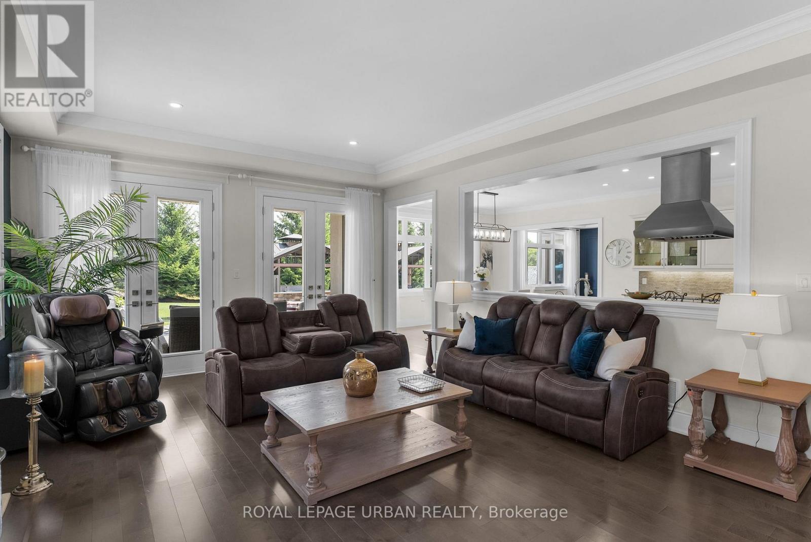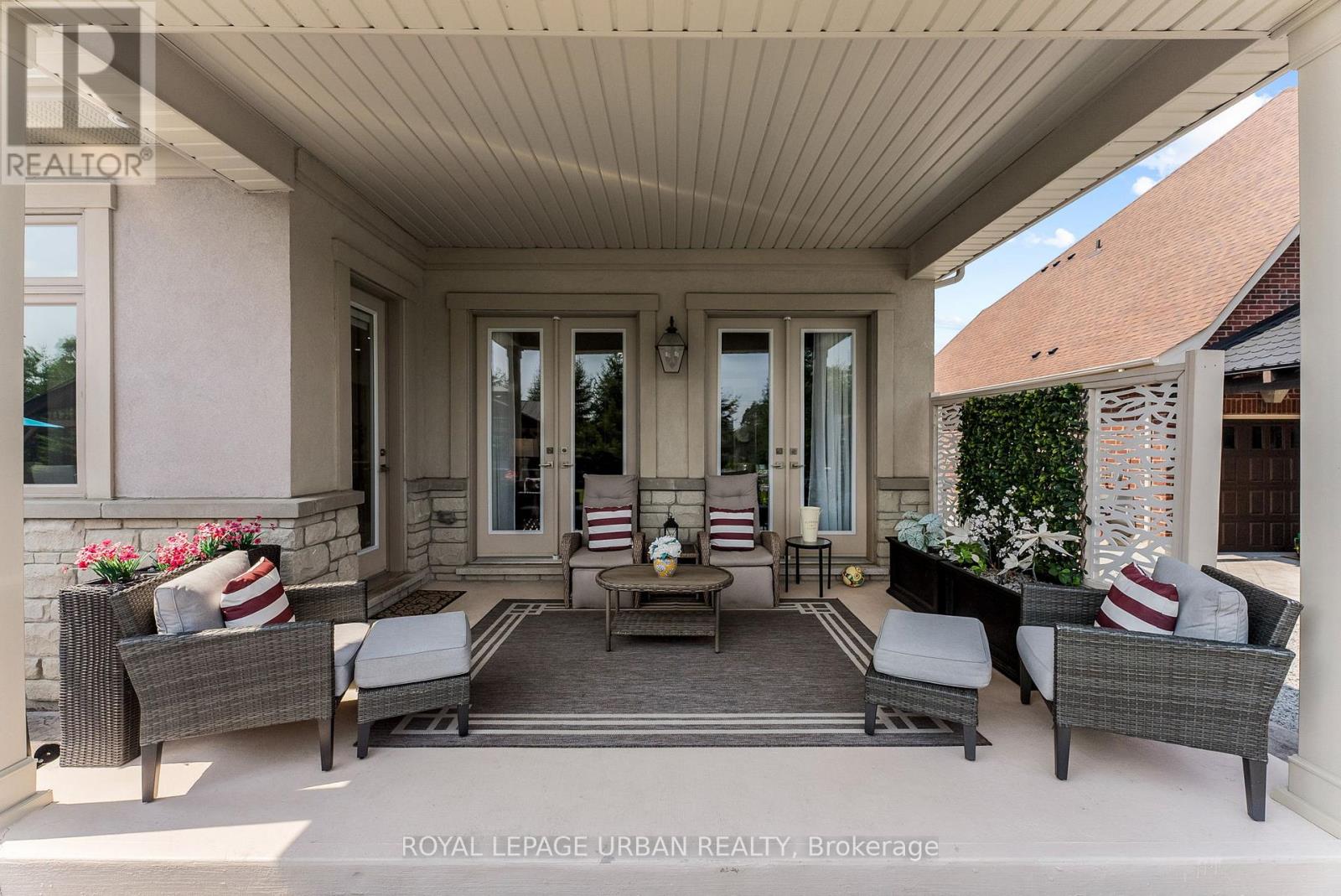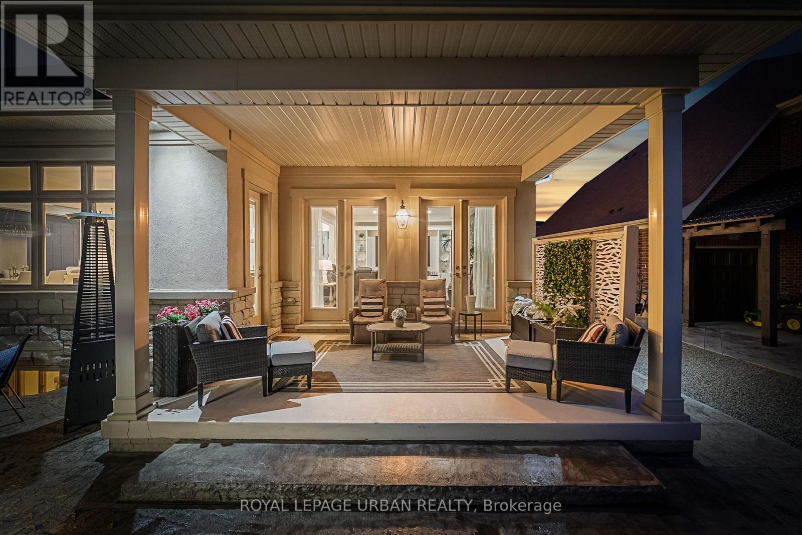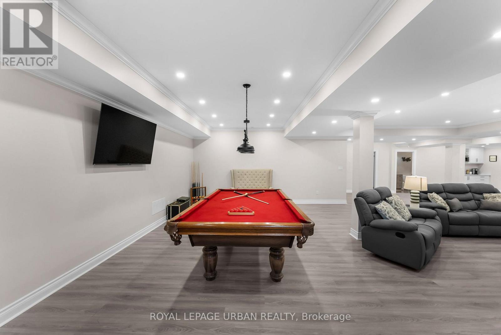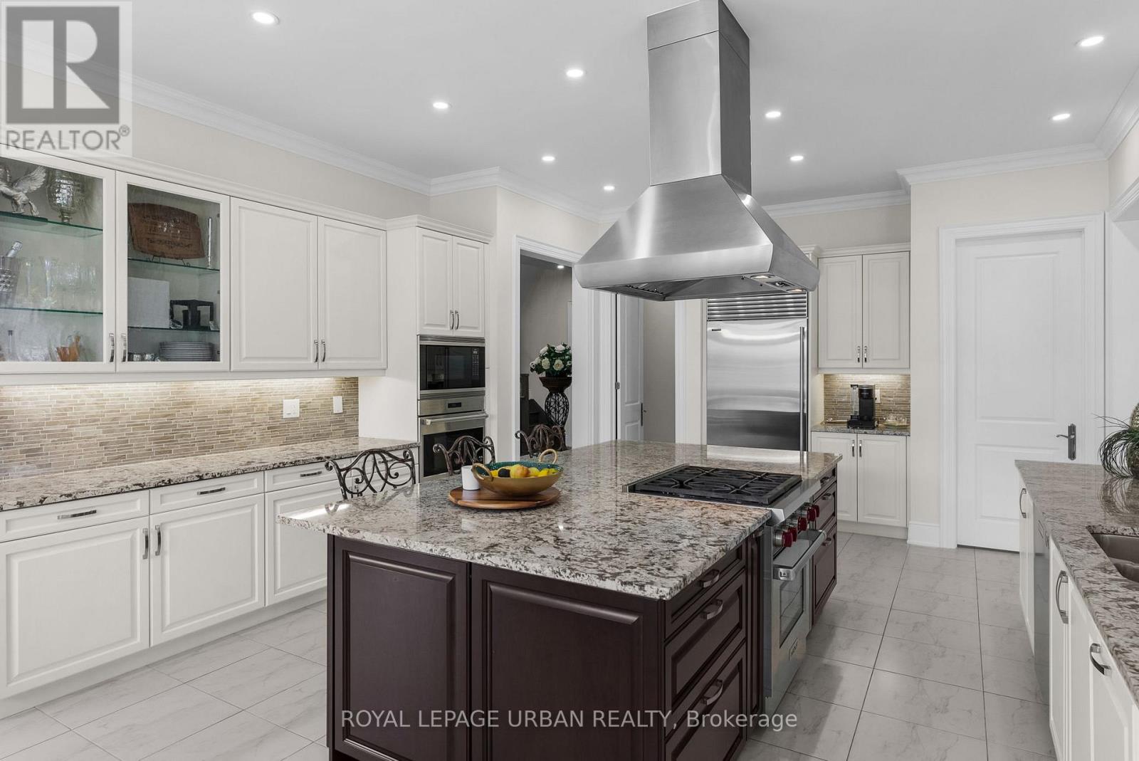 Welcome to this luxurious 6-bedroom, 5-bath bungaloft, perfectly positioned on an impressive 85 x 205 ft lot within one of Uxbridge's most exclusive gated golf course communities. Offering over 6,000 sq. ft. of finished living space with soaring 10 ft ceilings throughout, this home blends timeless elegance with modern convenience. The main level showcases a chef-inspired kitchen with Sub-Zero and Wolf appliances, walk-in pantry, custom wall units, and a convenient main-floor laundry. Expansive principal rooms flow seamlessly, with spacious bedrooms featuring walk-in closets for ultimate comfort. The fully finished basement offers versatile living and entertainment spaces, ideal for hosting family and friends. Every detail has been thoughtfully upgraded, including stamped concrete walkway, accent walls and ceilings, pot lights, and an EV charger. Step outside to your private backyard retreat, complete with a hot tub, two gazebos, outdoor custom kitchen with two grills, full fridge, wine fridge and plumbing. Professionally landscaped grounds perfect for outdoor living and entertaining. With parking for 9 vehicles plus a 3-car garage, fully heated with radiant heating and custom LED lighting; this home truly has it all. A rare opportunity to own a modern, upgraded residence in one of Uxbridge's most sought-after communities. (id:50787)