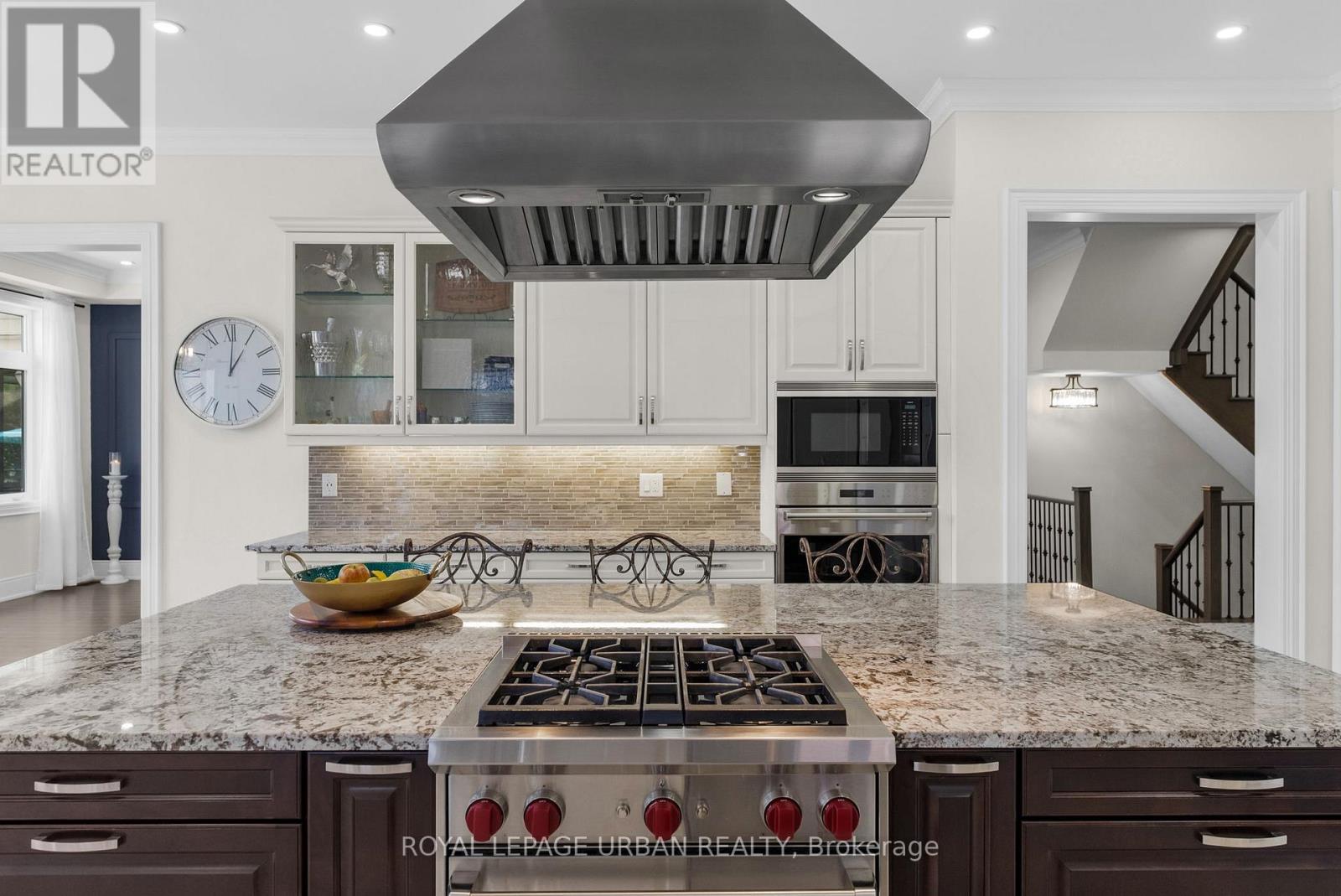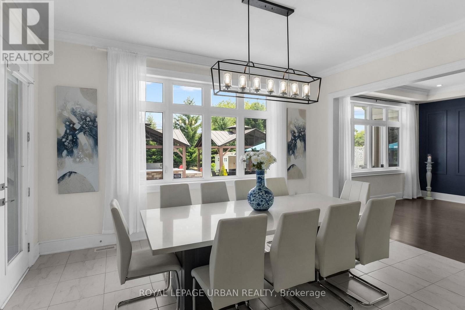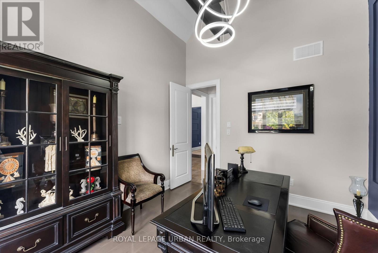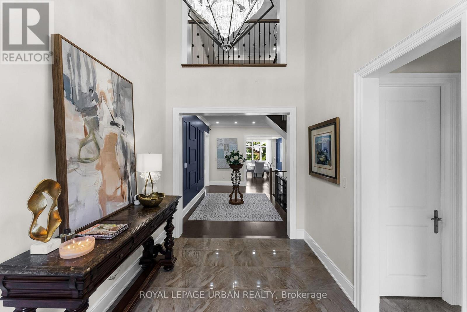 Welcome to this luxurious 6-bedroom, 5-bath bungaloft, perfectly positioned on an impressive 85 x 205 ft lot within one of Uxbridge's most exclusive gated golf course communities. Offering over 6,000 sq. ft. of finished living space with soaring 10 ft ceilings throughout, this home blends timeless elegance with modern convenience. The main level showcases a chef-inspired kitchen with Sub-Zero and Wolf appliances, walk-in pantry, custom wall units, and a convenient main-floor laundry. Expansive principal rooms flow seamlessly, with spacious bedrooms featuring walk-in closets for ultimate comfort. The fully finished basement offers versatile living and entertainment spaces, ideal for hosting family and friends. Every detail has been thoughtfully upgraded, including stamped concrete walkway, accent walls and ceilings, pot lights, and an EV charger. Step outside to your private backyard retreat, complete with a hot tub, two gazebos, outdoor custom kitchen with two grills, full fridge, wine fridge and plumbing. Professionally landscaped grounds perfect for outdoor living and entertaining. With parking for 9 vehicles plus a 3-car garage, fully heated with radiant heating and custom LED lighting; this home truly has it all. A rare opportunity to own a modern, upgraded residence in one of Uxbridge's most sought-after communities. (id:50787)