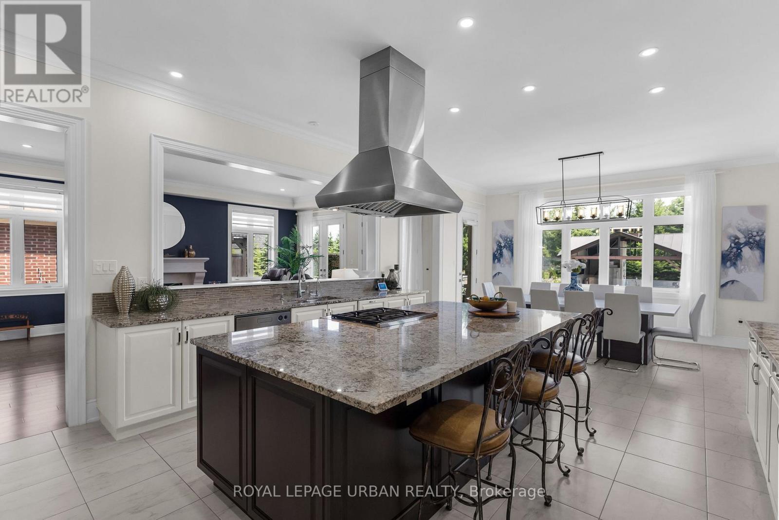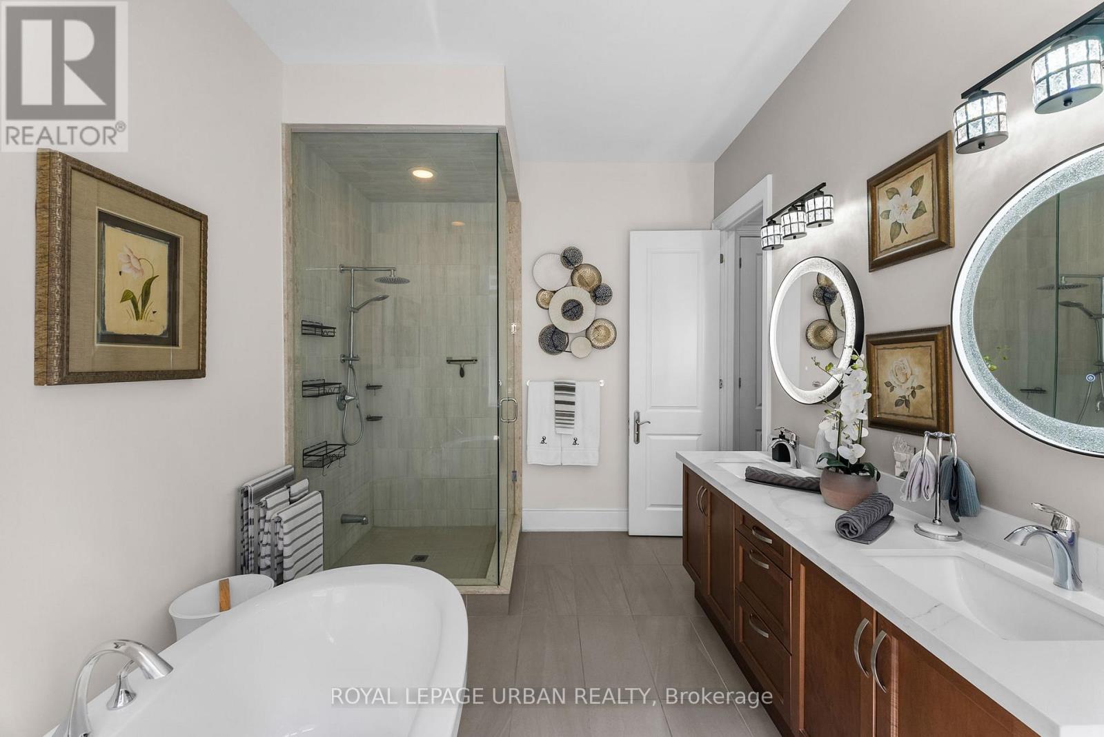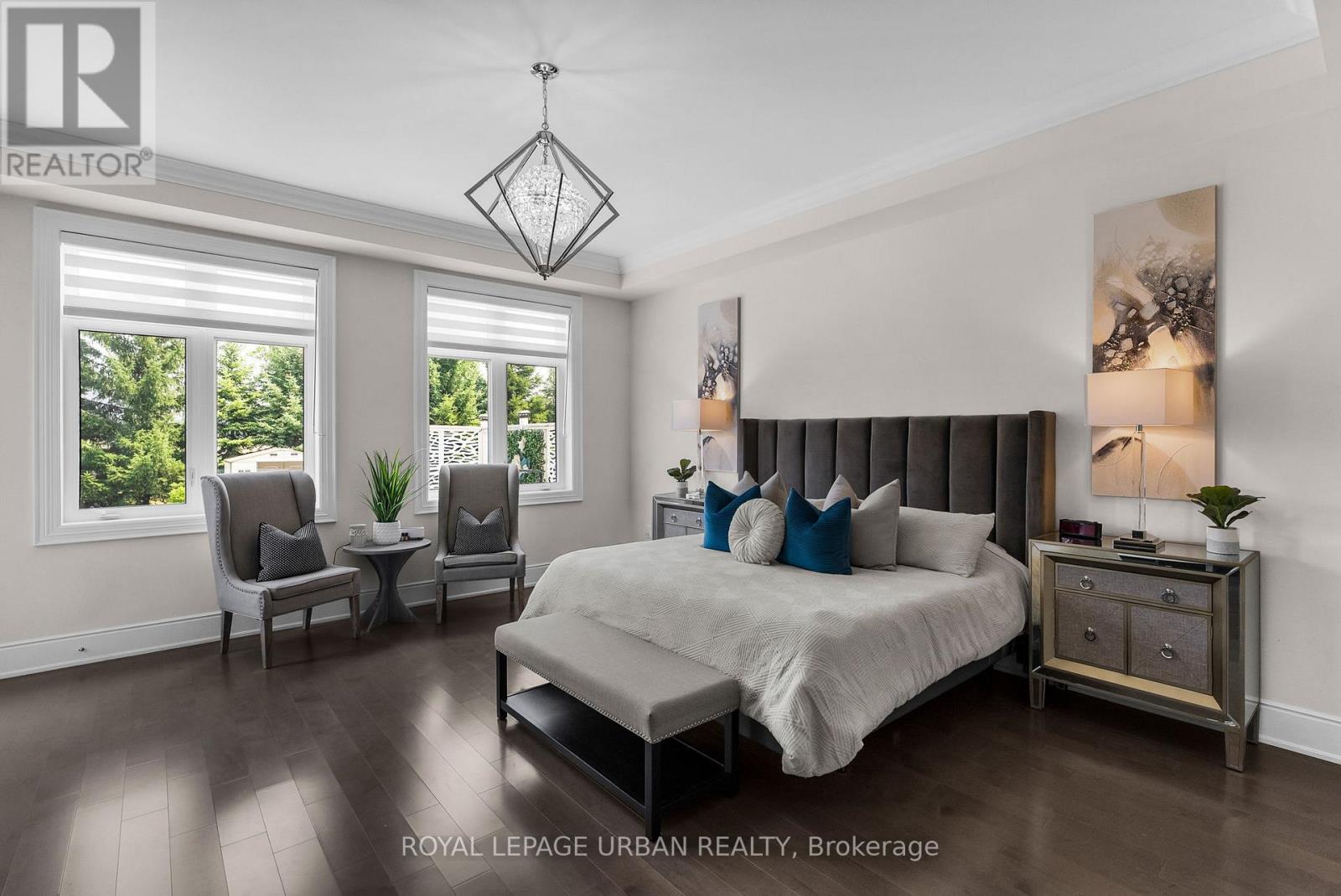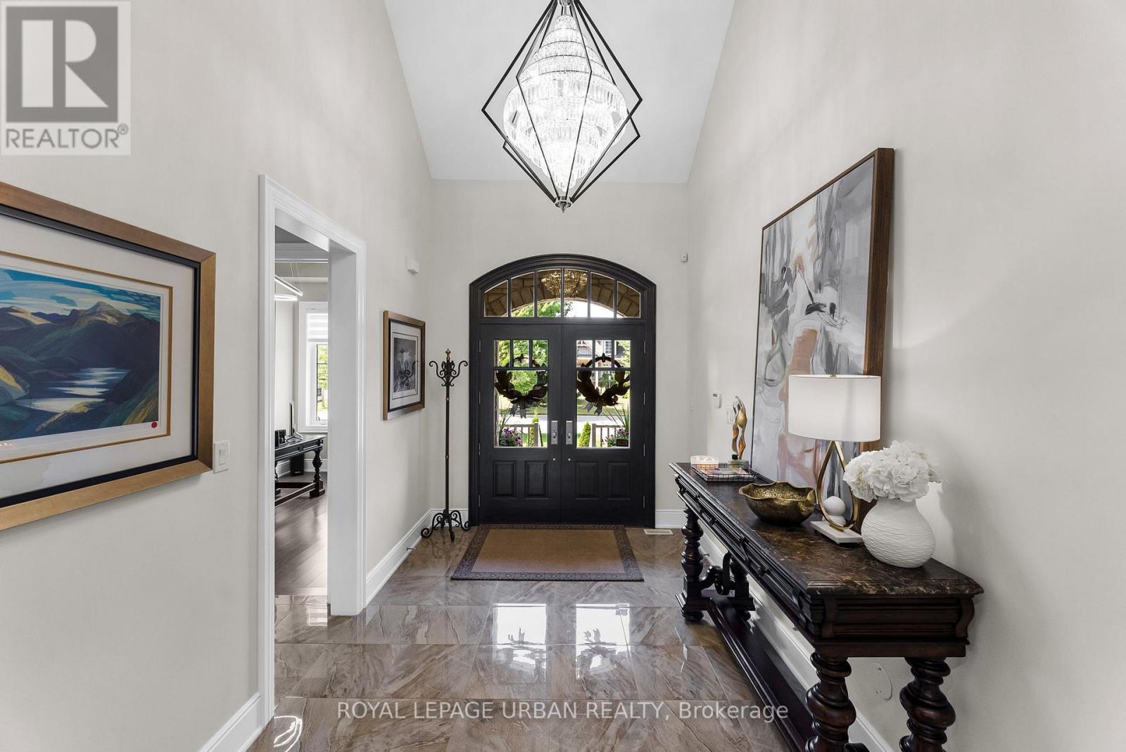Welcome to this luxurious 6-bedroom, 5-bath bungaloft, perfectly positioned on an impressive 85 x 205 ft lot within one of Uxbridge's most exclusive gated golf course communities. Offering over 6,000 sq. ft. of finished living space with soaring 10 ft ceilings throughout, this home blends timeless elegance with modern convenience. The main level showcases a chef-inspired kitchen with Sub-Zero and Wolf appliances, walk-in pantry, custom wall units, and a convenient main-floor laundry. Expansive principal rooms flow seamlessly, with spacious bedrooms featuring walk-in closets for ultimate comfort. The fully finished basement offers versatile living and entertainment spaces, ideal for hosting family and friends. Every detail has been thoughtfully upgraded, including stamped concrete walkway, accent walls and ceilings, pot lights, and an EV charger. Step outside to your private backyard retreat, complete with a hot tub, two gazebos, outdoor custom kitchen with two grills, full fridge, wine fridge and plumbing. Professionally landscaped grounds perfect for outdoor living and entertaining. With parking for 9 vehicles plus a 3-car garage, fully heated with radiant heating and custom LED lighting; this home truly has it all. A rare opportunity to own a modern, upgraded residence in one of Uxbridge's most sought-after communities. (id:50787)