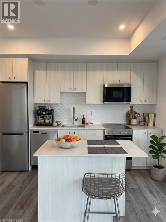 Looking for a chic and cozy brand new one bedroom apartment in the heart of Kitchener's Station Park!! Look no further! This corner unit is perfectly situated to give you the best of both worlds - the hustle and bustle of the city and the tranquility of a quiet neighbourhood. This is a carpet free unit with 625 square feet of interior living space and an additional 60 square feet balcony with high end finishes throughout the unit and building. As soon as you walk in, you'll be greeted by a bright and open living space that's perfect for entertaining or simply relaxing after a long day. Large floor to ceiling windows flood the space with natural light, making it feel spacious and inviting. The modern kitchen is equipped with all the essentials, including stainless steel appliances, sleek countertops, and ample cabinet space and breakfast island. The bedroom is a peaceful retreat that offers a welcome escape from the daily grind. It's spacious enough to accommodate a queen-sized bed, and features a large closet that provides ample storage space and the bathroom boasts modern fixtures and finishes. This corner unit does come with a locker and parking spot, but there are plenty of transit options with easy access to public transportation, getting around town is a breeze. Outside there are many amenities such as a dog park, amphitheater, outdoor work areas, beautiful lounging areas, etc. Inside you will have access to bowling alleys, arcade and party rooms, lobby/lounge area you name it. Some pictures are AI staged pictures. (id:50787)