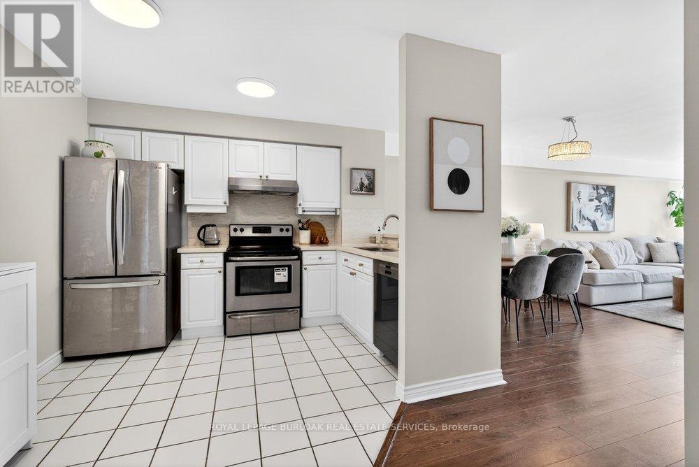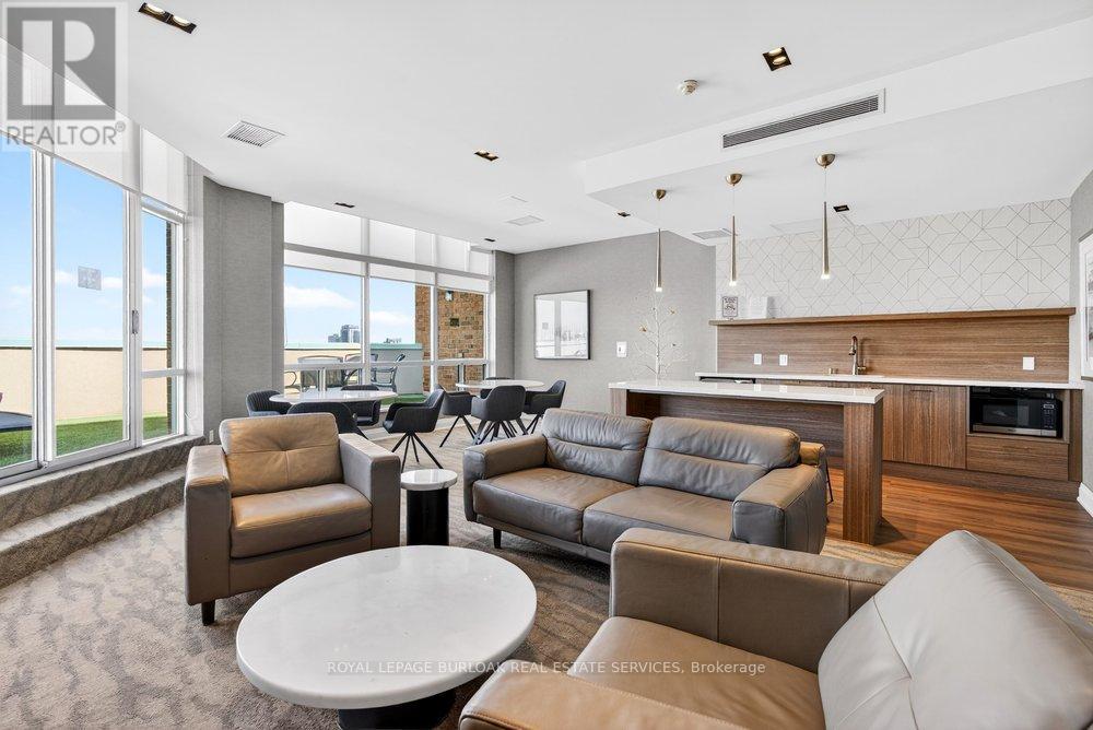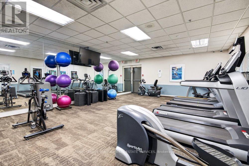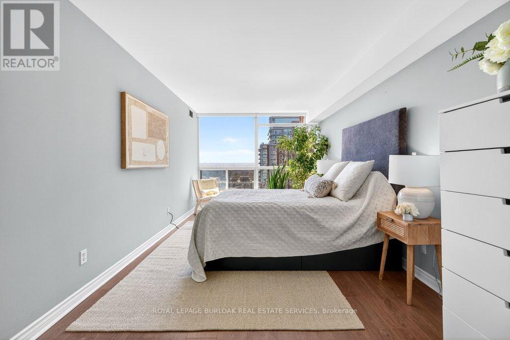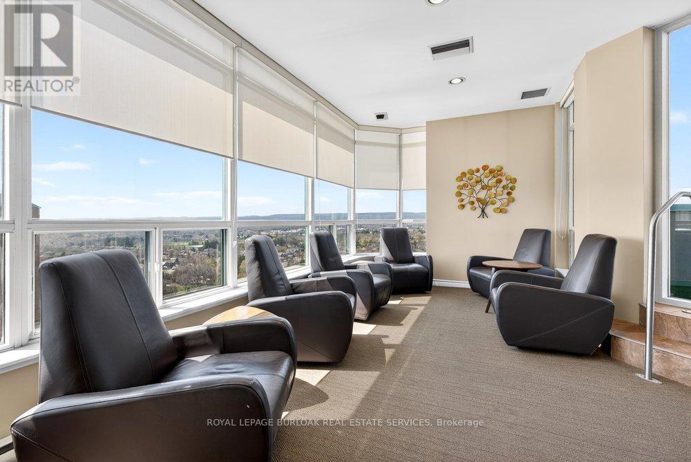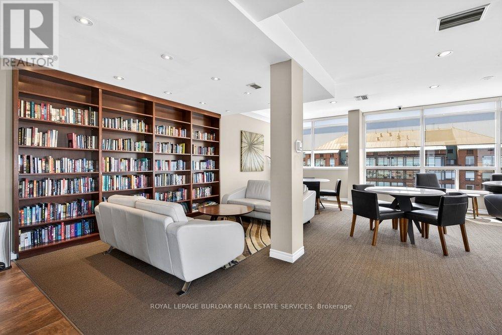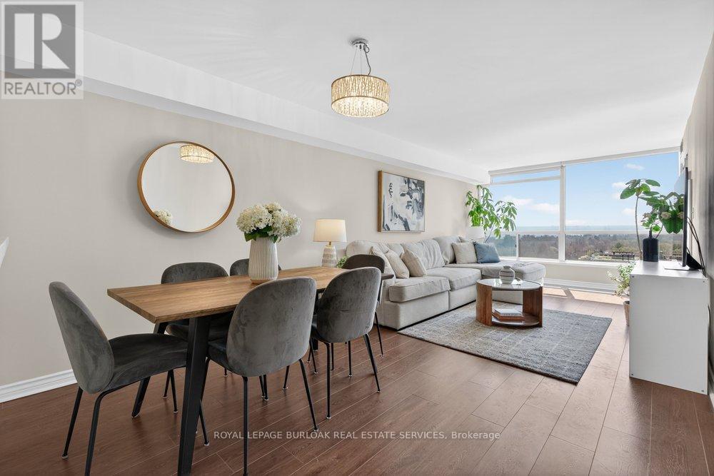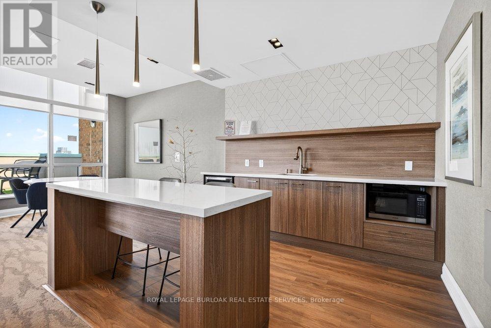 Live the best of Burlington in this sought-after Grand Regency condo steps to Lake Ontario &vibrant downtown. This bright, 2 bed, 2 bath + den suite showcases floor-to-ceiling windows with stunning south-facing lake views, including from the private den and has approximately, 1100 sqft of living space. Enjoy a spacious open-concept layout with a large kitchen featuring stainless steel appliances, quart counters, & overlooks the dining/ & living areas, perfect for entertaining .Retreat to generous bedrooms with large closets & an ensuite bath, plus a full-size washer/dryer& 1 underground parking. Resort-style amenities include 24 hr concierge, outdoor pool & BBQ area, tennis, squash/racquetball, rooftop patio, party room, guest suites, gym & sauna. All-inclusive fees (heat, hydro, water, cable) + walkable access to Mapleview Mall, cafes, dining& the waterfront, and a short drive to the 403, make this a compelling lifestyle upgrade. (id:50787)