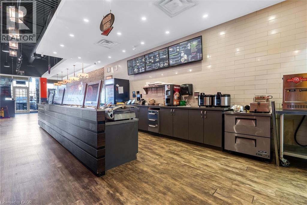 RARE TURN-KEY RESTAURANT OPPORTUNITY IN PREMIUM RIOCAN PLAZA! Incredible opportunity to acquire a fully built-out, 1,191 sq. ft. fast-casual restaurant in Hamilton’s bustling Upper James Square. Located in a high-traffic, professionally managed RioCan power centre, this unit benefits from massive daily foot traffic and exposure alongside powerhouse co-tenants like Winners, Mandarin, Montana's, and Starbucks. Skip the massive upfront costs, permit delays, and headaches of building a commercial kitchen from scratch! This asset sale includes a fully fitted turn-key setup and an extensive equipment package perfectly optimized for a high-volume takeout or fast-casual concept. Please contact the listing agent directly for the complete equipment list and value breakdown. Secure your business's future by taking over a highly competitive existing lease expiring July 31, 2030. The buyer has the opportunity to bring their own brand and menu, subject to the Landlord’s written approval of the use clause and lease assignment. (id:50787)