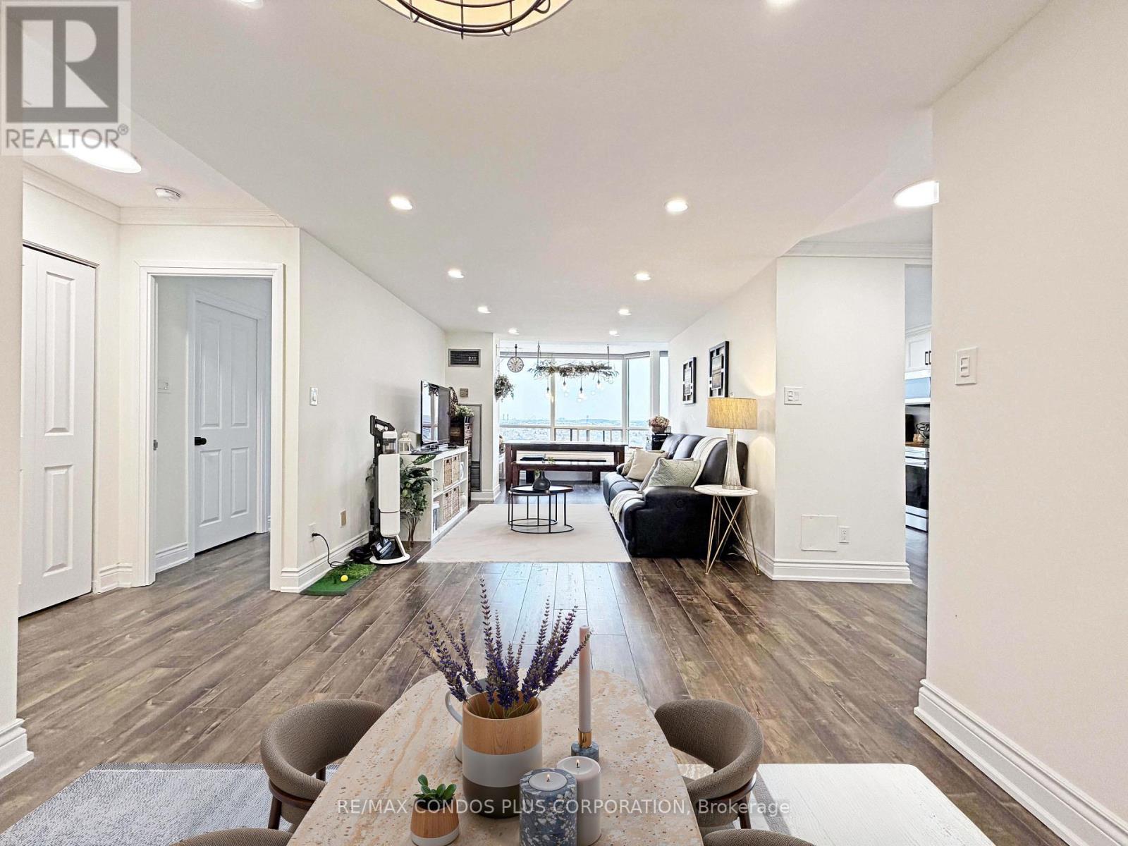 $1,150.89 MonthlyPanoramic-view 2-bedroom, 2-bathroom suite at 120 Promenade Circle offering approximately 1,260 sq. ft. with a bright split-bedroom layout, tandem parking, and 1 locker. Spacious renovated unit features hardwood flooring throughout, large windows with abundant natural light, and a functional solarium that adds flexible living space. Generous foyer with oversized double closet offers excellent storage. Well-designed layout includes a spacious primary bedroom with his-and-hers closets and a 5-piece ensuite, while the second bedroom features its own walk-in closet. Tandem parking for 2 cars is conveniently located close to the elevator for added everyday ease. Windows replaced in 2022. Maintenance fees include cable TV. Excellent Promenade location just steps to Promenade Shopping Centre, restaurants, Walmart, and public transit. (id:50787)
