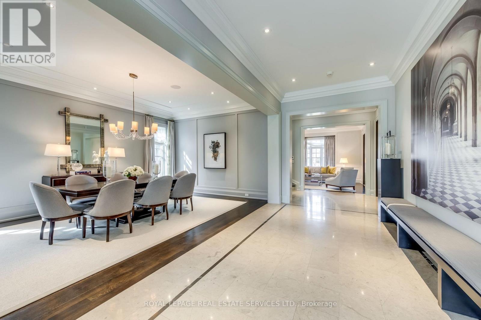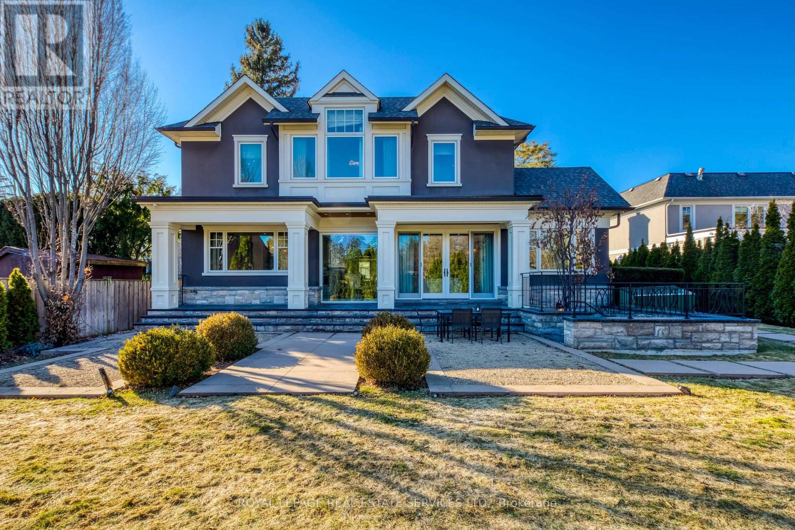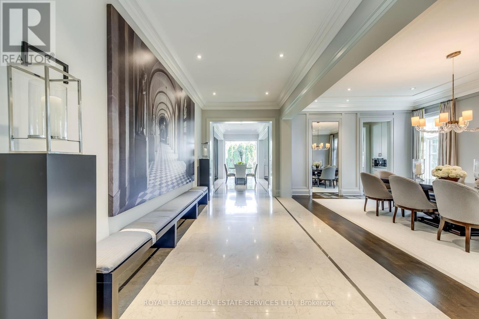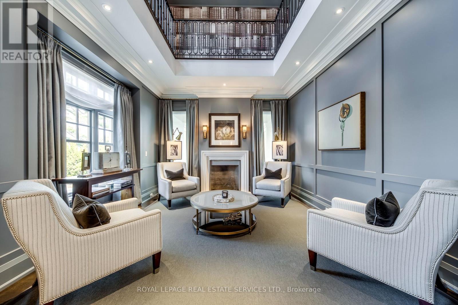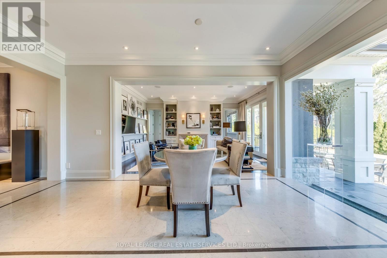 Elegant Custom Estate in Prestigious Southeast Oakville. Experience refined living in this stunning custom residence offering over 4,800 sq ft above grade and more than 7,300 sq ft of total living space. Thoughtfully designed by Michael Pettes and expertly built by PCM, this home showcases timeless architecture and exceptional craftsmanship throughout. The main level exudes European sophistication, featuring plaster crown mouldings, custom drapery, designer wall sconces, and intricate architectural detailing. A dramatic main floor library impresses with soaring ceilings, a gas fireplace, and a striking wrought-iron catwalk above. The grand formal dining room comfortably accommodates large gatherings, perfect for elegant entertaining. At the heart of the home is a Downsview chef's kitchen complete with a large centre island, servery, and seamless flow into the breakfast area and spacious family room. The upper level offers an outstanding layout highlighted by a wide skylit hallway-ideal for displaying art or family memories. All four generously sized bedrooms feature private ensuites and ample closets. The luxurious primary retreat boasts a cathedral ceiling, dressing room, and spa-inspired ensuite with a built-in bookshelf beside the soaker tub. The fully finished lower level is designed for both relaxation and entertaining, featuring a fifth bedroom, full bath, expansive recreation room with wet bar, and a stone-accent wine cellar. A large laundry room with extensive counter space and a wide winding walk-up to the backyard adds convenience. Additional highlights include a main floor den, upper-level study, heated interlock driveway, oversized garage with car lift capability, covered rear porch, and dual furnaces and A/C units. Ideally located within walking distance to top-rated schools and just minutes to shopping, amenities, and major highways, this exceptional home offers luxury, functionality, and an unbeatable Southeast Oakville lifestyle. (id:50787)