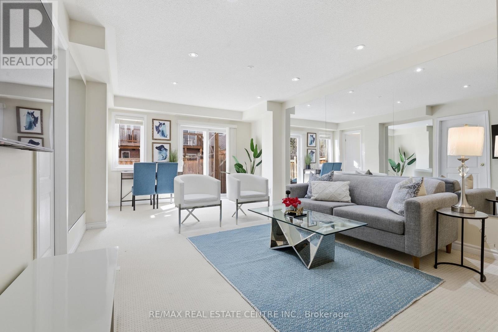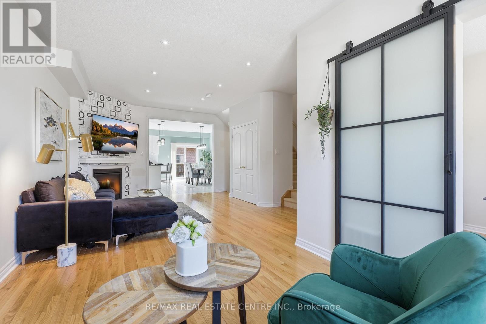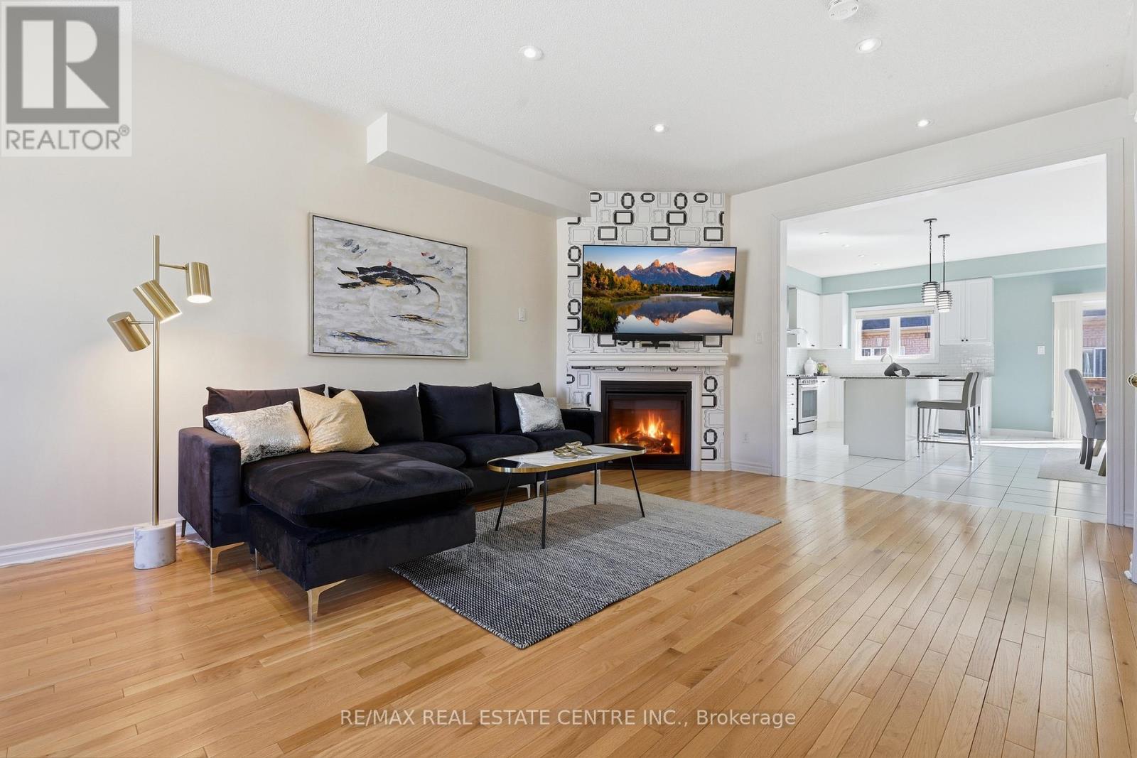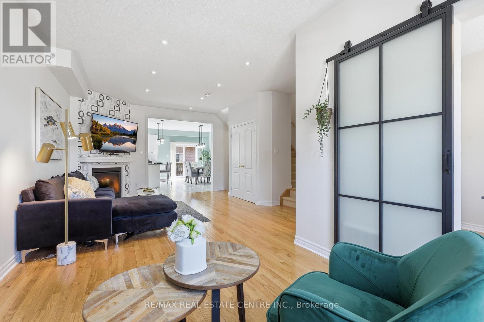 Welcome to this stunning FREEHOLD 3-storey townhouse in the desirable Duffin Heights community of Pickering, offering approximately 2,588 sq ft of spacious and versatile living. Designed for modern family living, this home features 3+1 bedrooms and 4 bathrooms with functional spaces across all three levels. The main floor offers a large family/rec room with a 4-piece bathroom and walk-out to the backyard, making it ideal for a guest suite, home gym, additional bedroom, or cozy movie nights. The second level showcases a bright open-concept layout with a massive living and dining area featuring hardwood floors and a gas fireplace, perfect for entertaining. The modern kitchen is equipped with stainless steel appliances, granite countertops, breakfast bar, pantry, and a large window. Generous size breakfast area that comfortably fits a 6-8 seat dining table which walks out to balcony. A separate den on this level provides an ideal space for a home office or study. $$ spent on a professionally added 2-piece washroom, enhancing both practicality and convenience. The third level features a spacious primary retreat with a private balcony, 5-piece ensuite, and an upgraded oversized walk-in closet. Additional bedrooms are bright and well-sized with large windows that bring in plenty of natural light. Located in a family-friendly neighborhood close to parks, trails, schools, shopping, and public transit, with easy access to Hwy 401 and major routes, making commuting simple while enjoying the natural beauty of Duffin Heights. EXPLORE THE 3D TOUR USING THE LINK BELOW!! (id:50787)