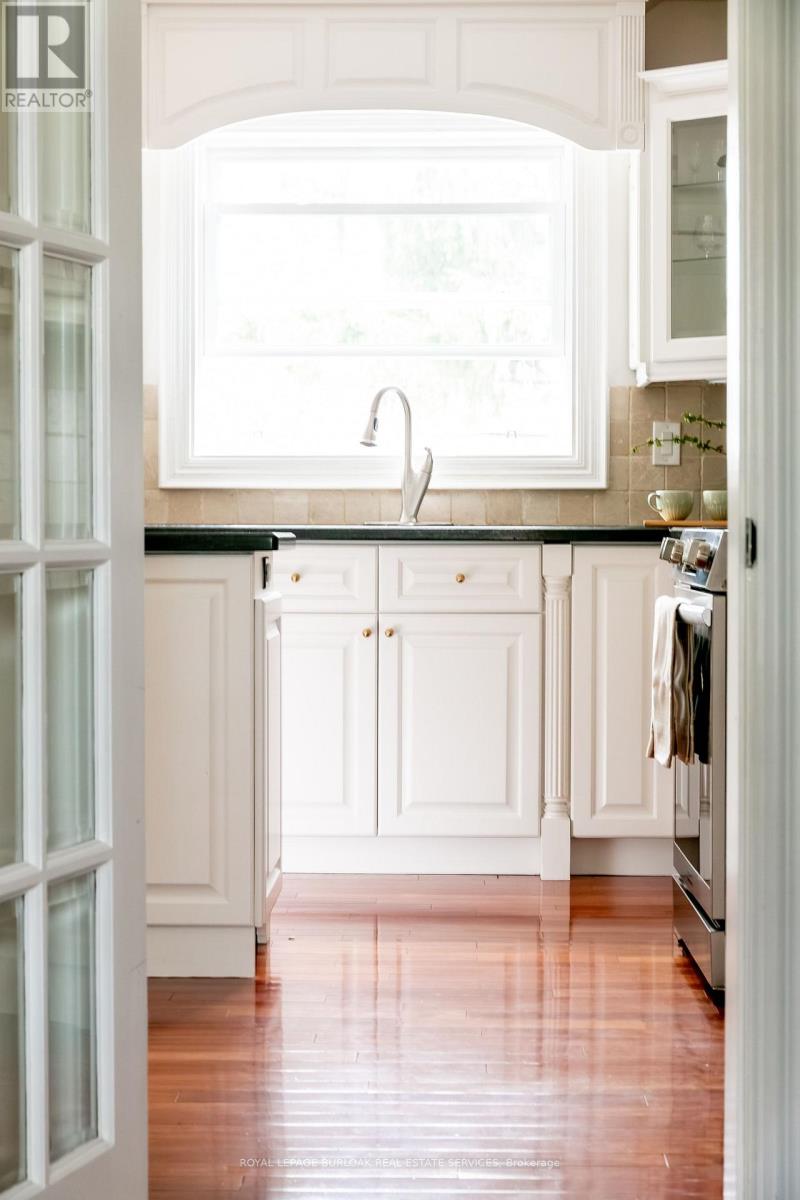 Tucked away on a quiet court of just nine homes in the prestigious Rattray Park Estates, this Cape Cod-style residence offers 4,044 sq. ft. of living space and sits proudly on a rare 63' x 101' x 111' x 107' x 75' ft irregular lot-providing both privacy and room to grow. The main floor is designed for family living and entertaining alike, now freshly painted in a soft off-white that gives the space a fresh, contemporary look. A separate dining room (or formal living room) with a bow window sets the stage for gatherings, while the eat-in kitchen impresses with stainless steel appliances, granite countertops, and crisp cabinetry, along with ample storage. Walk out to your oversized backyard oasis, complete with an in-ground pool, irrigation system (front and back), expansive stone patio, manicured gardens, and mature trees. The laundry room has also been updated with refreshed cabinetry and offers a separate entrance, mudroom functionality, and direct access to the double car garage. A cozy family room with a gas fireplace and bow window, a 2-piece bath, and a versatile office/sitting room complete this level. Upstairs, natural light pours in. The primary retreat features its own gas fireplace, a 3-piece ensuite, and a walk-in closet, complemented by three additional generously sized bedrooms and a 4-piece bathroom. The fully finished basement extends the living space with an additional bedroom, a 4-piece bath with double vanity and glass shower, and a spacious recreation room finished with durable ceramic wood tile flooring. Recent updates offer peace of mind: Furnace (2024), Roof (2024), Hot Water Heater (2023), AC (2023), Windows and Doors (2015), Hardwood Flooring (2015). All of this in a sought-after location, walking distance to Rattray Marsh Conservation Area, and just minutes to Jack Darling Memorial Park, Clarkson Community Centre, highway access, Clarkson GO, and everyday amenities. This home is a rare combination of lot size, luxury, and lifestyle. (id:50787)