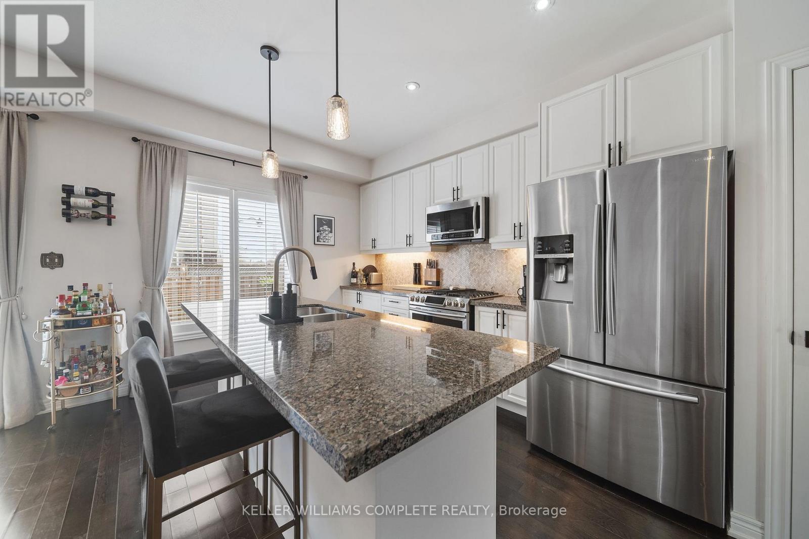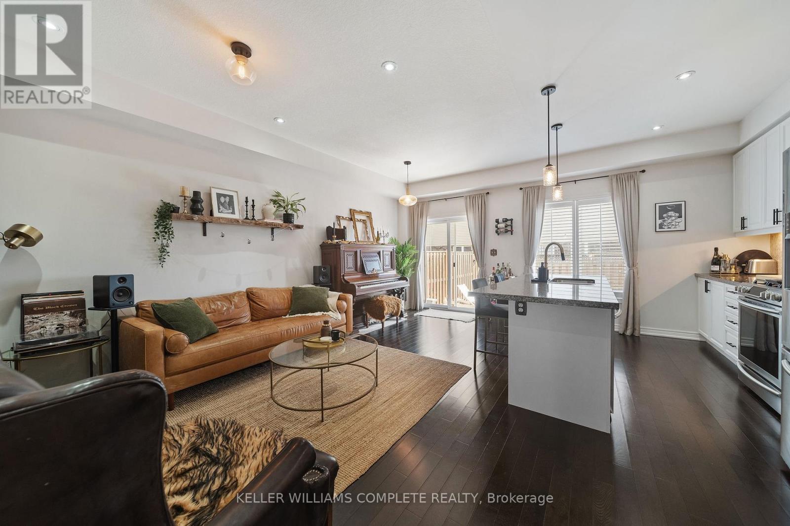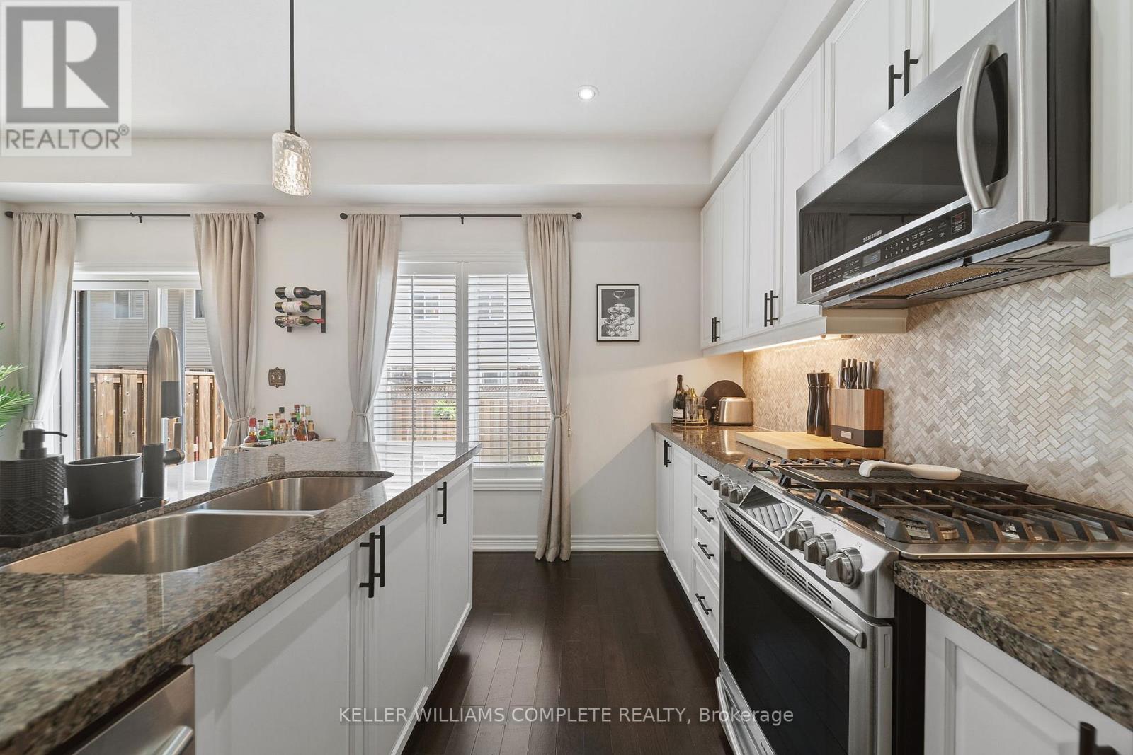 End-unit townhome tucked beside an open field in one of the quieter, more desirable pockets of the Hamilton Mountain. With no neighbour onone side, extra windows, and sun pouring in throughout the day, it has a noticeably brighter and more open feel than a typical interior unit.Inside, the layout just works. The main floor offers a bright, comfortable living and dining space with a fireplace, set up in a way that actuallyfeels livable day-to-day. The kitchen connects seamlessly and features a clean, modern look with granite countertops, high-end stainless steelappliances, extended cabinetry, a larger island, and a gas stove - a great setup for both everyday use and entertaining. Hardwood floors runthroughout the home, complemented by updated light fixtures, pot lights, and a consistent, well-kept finish. Upstairs, you'll find three well-sizedbedrooms, including a primary with a walk-in closet and its own ensuite, along with a full second bathroom. The layout works well for a family, acouple needing extra space, or anyone working from home. The backyard is fully fenced and private, giving you your own outdoor space to relax,entertain, or let kids and pets play. What really sets this one apart is the positioning - backing onto open field so you're not boxed in, with thatexposed side bringing in natural light all day. The large basement is perfect to use as storage now or finish in the future to add additional livingspace. An insulated garage door and clear pride of ownership carry throughout the home. Located close to schools, parks, shopping, and withquick access to major routes, this is an easy place to live day-to-day. End units in this kind of setting don't come up often - and this is one thatreally shows even better in person. (id:50787)