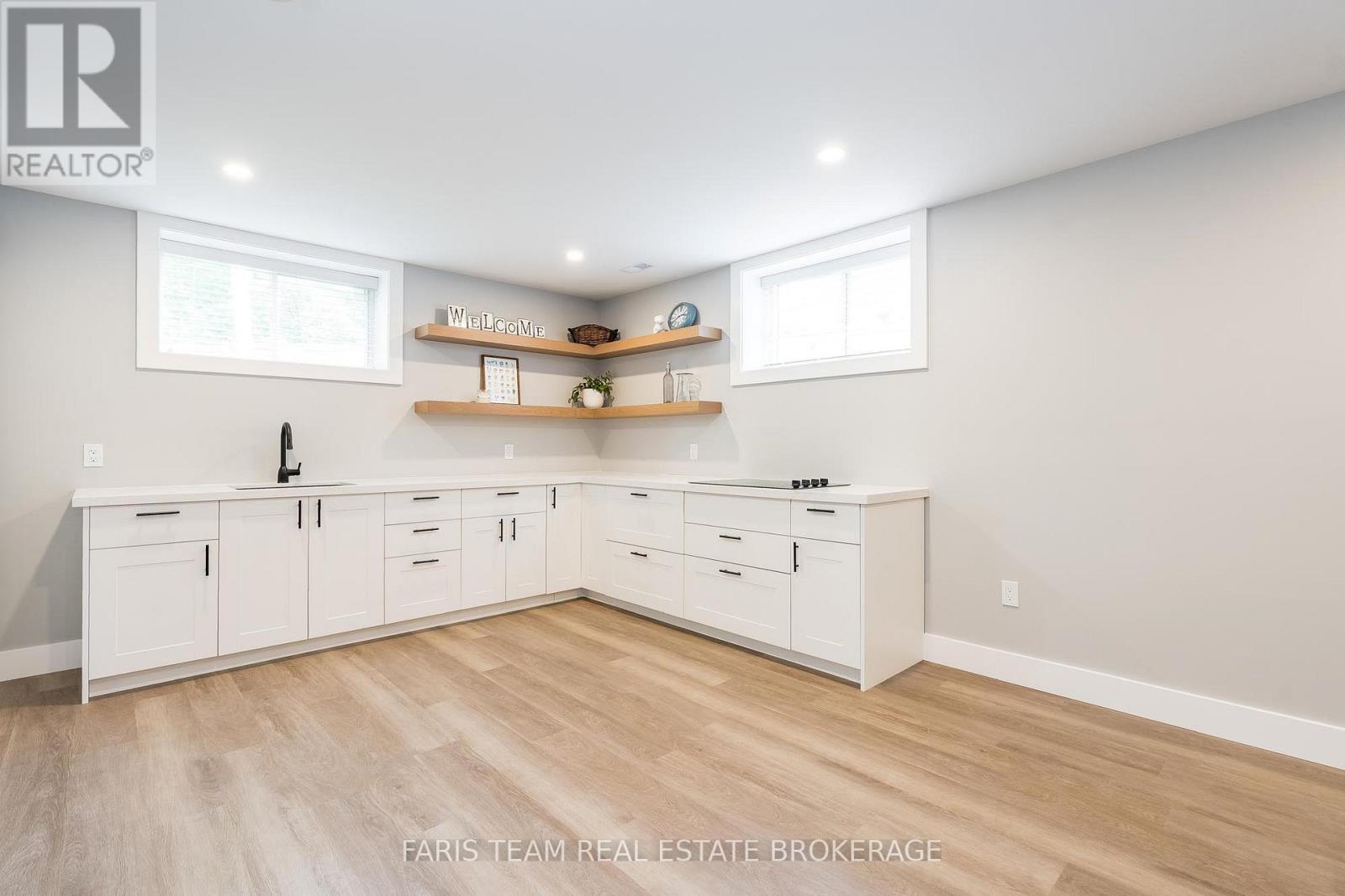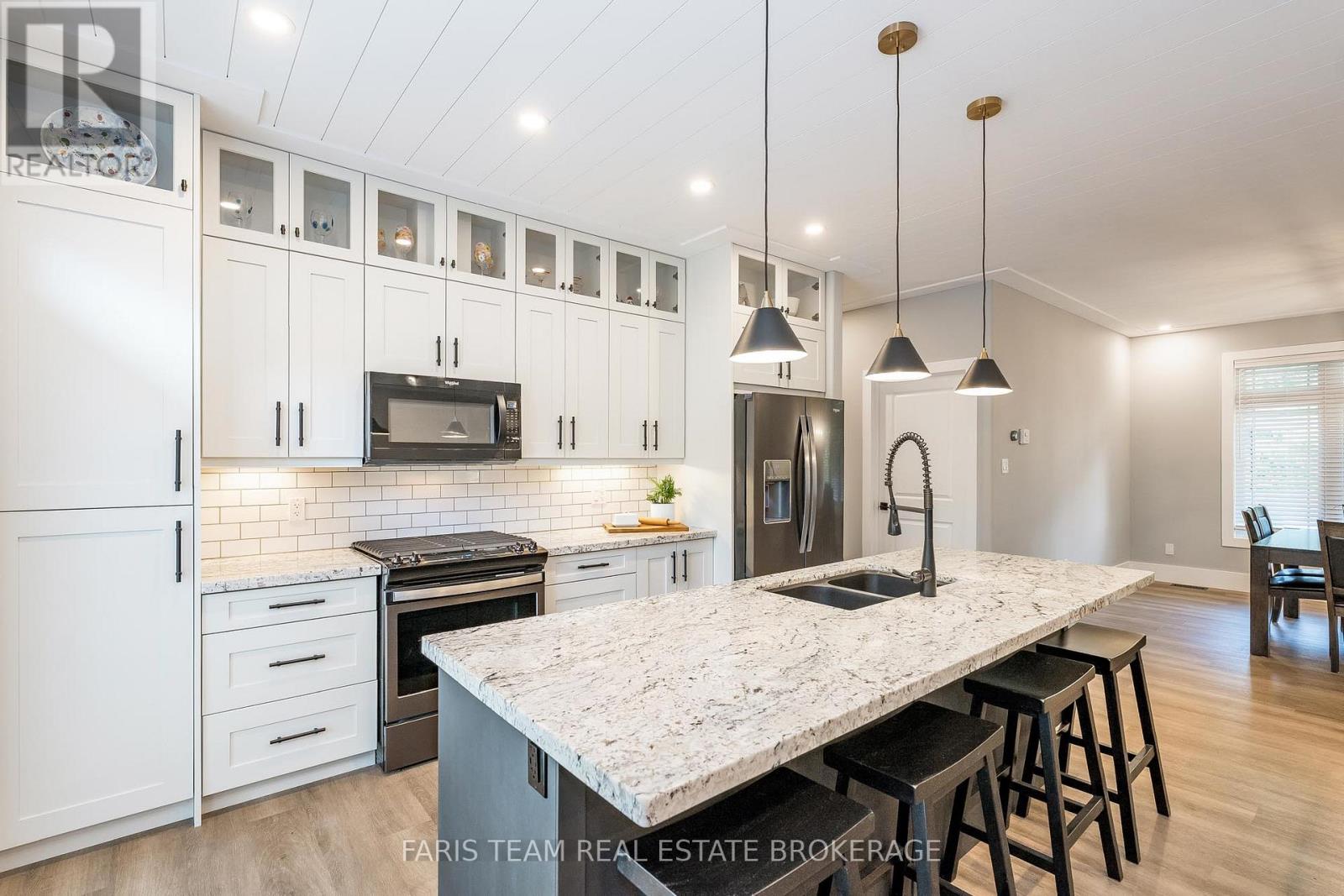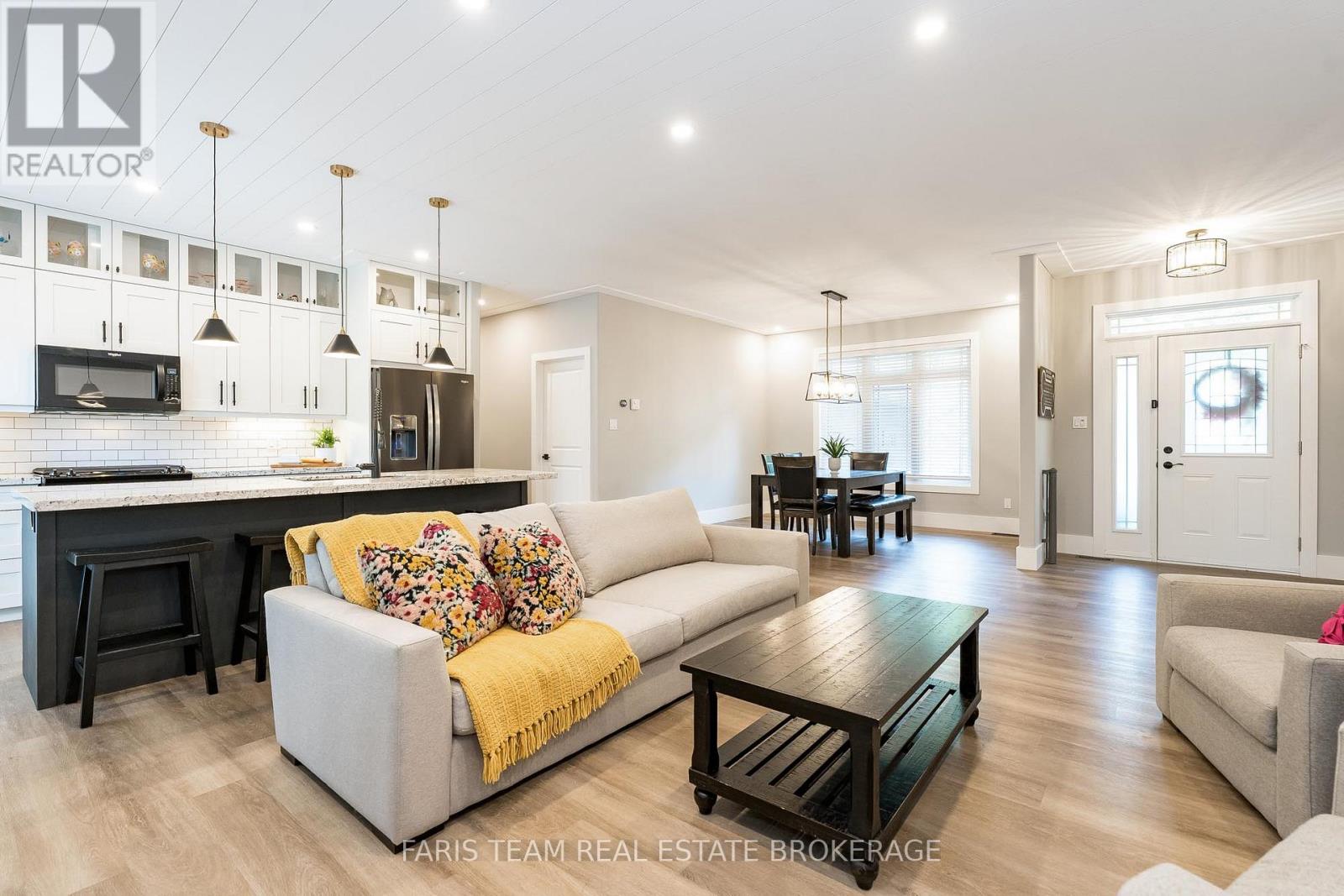 Top 5 Reasons You Will Love This Home: 1) Beautifully maintained modern 3+1 bedroom bungalow just steps from the beaches of Georgian Bay, thoughtfully upgraded for comfort and style 2) Fully finished basement featuring a wet bar in the spacious recreation room, plus an additional bedroom and a flexible space perfect for an exercise room or extra bedroom 3) Stylish eat-in kitchen with quality finishes and an open-concept layout that seamlessly connects to the main living area, ideal for hosting family and friends, with a walkout to the private rear deck 4) Enjoy outdoor living in the fully fenced backyard, complete with extensive landscaping that creates a peaceful, private retreat 5) Relax in the primary bedroom suite, offering a walk-in closet and a luxurious ensuite for your own personal escape. 1,573 above grade sq.ft. plus a finished basement. (id:50787)