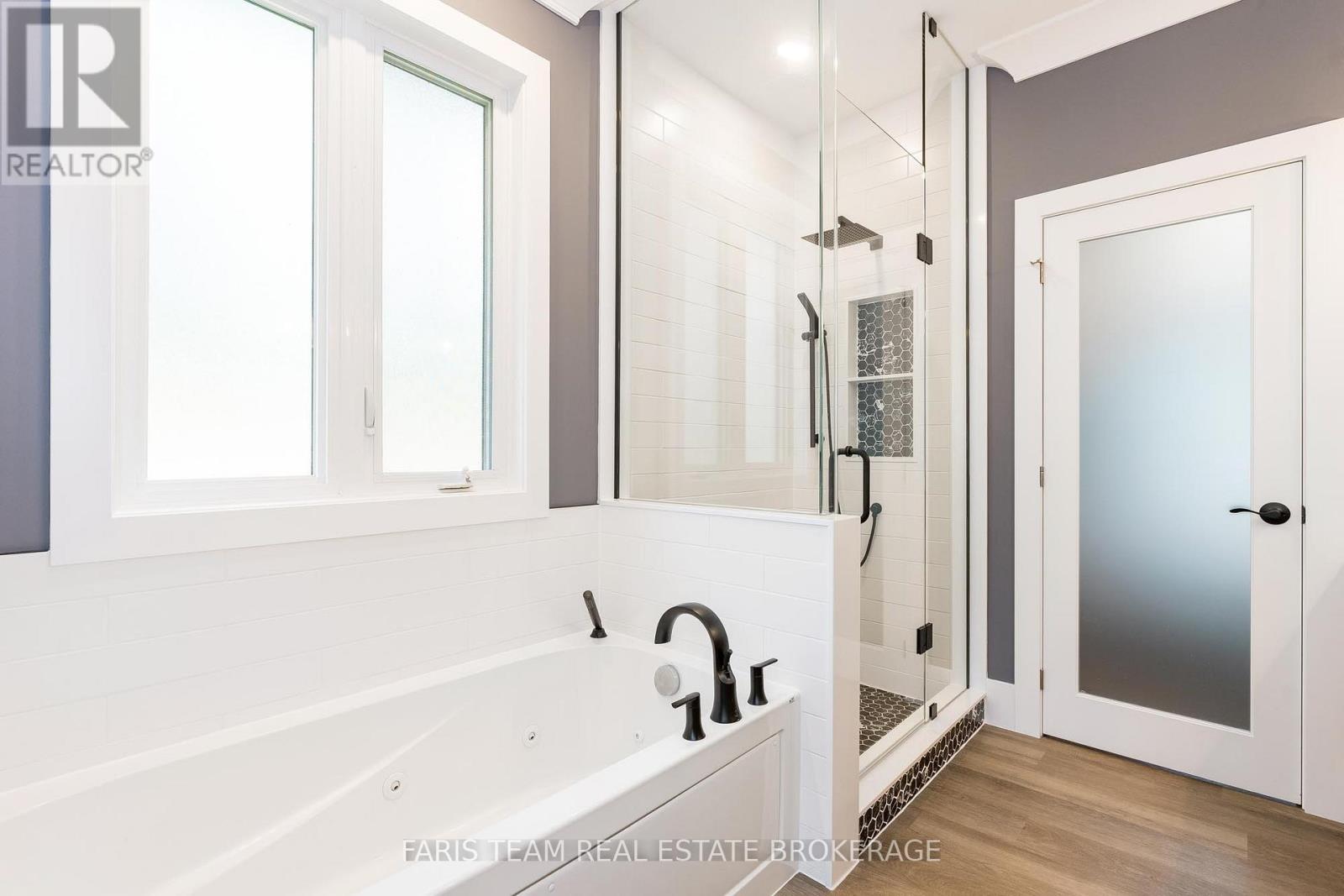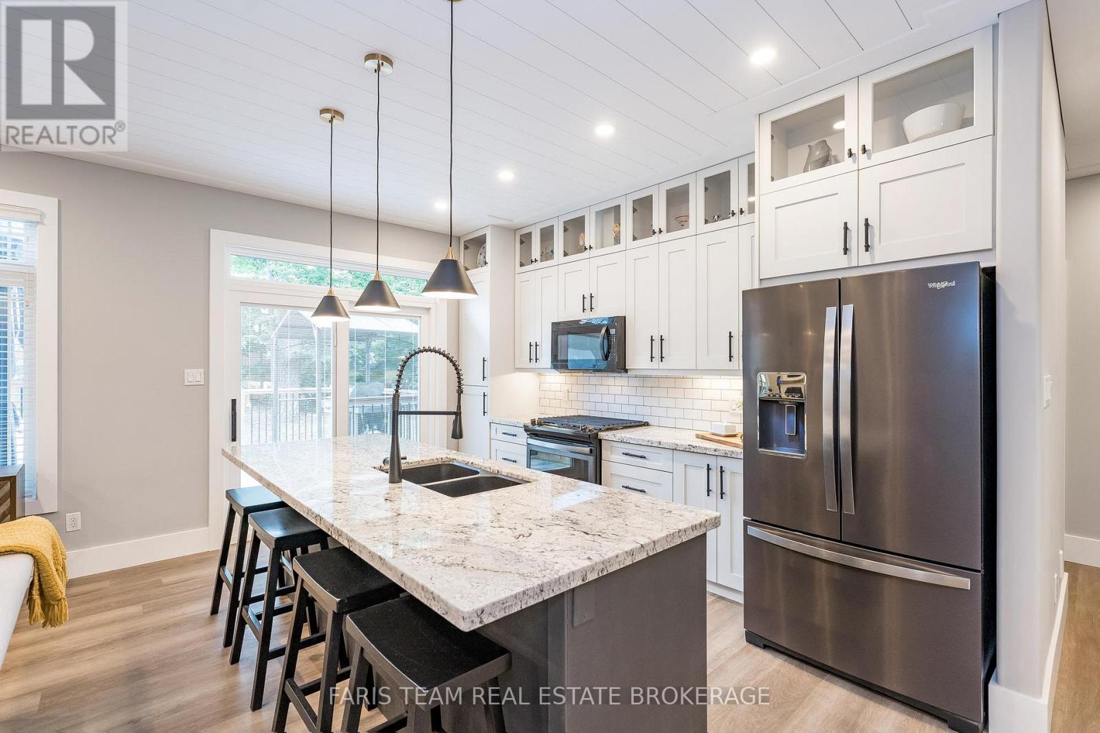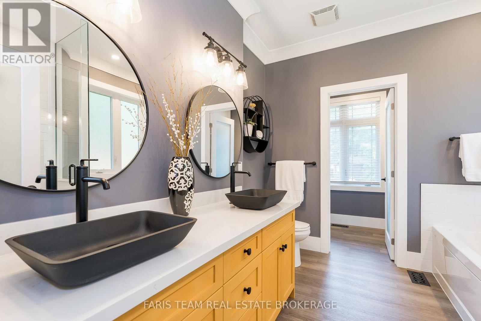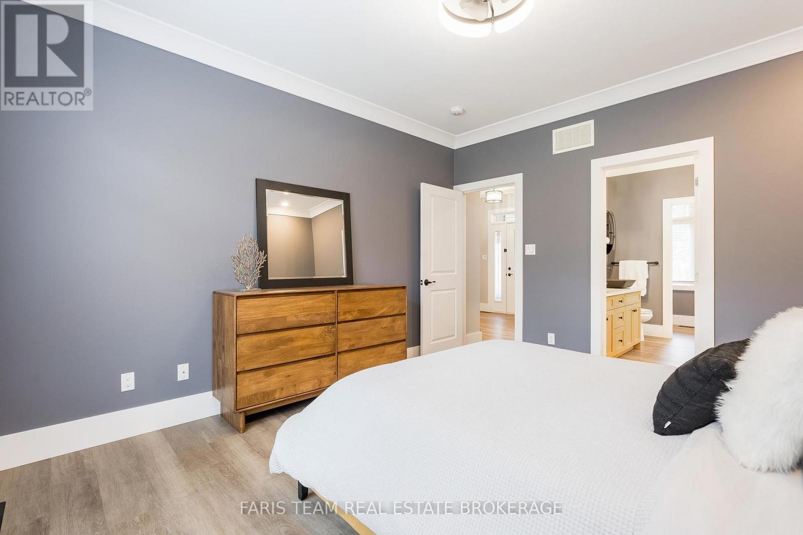 Top 5 Reasons You Will Love This Home: 1) Beautifully maintained modern 3+1 bedroom bungalow just steps from the beaches of Georgian Bay, thoughtfully upgraded for comfort and style 2) Fully finished basement featuring a wet bar in the spacious recreation room, plus an additional bedroom and a flexible space perfect for an exercise room or extra bedroom 3) Stylish eat-in kitchen with quality finishes and an open-concept layout that seamlessly connects to the main living area, ideal for hosting family and friends, with a walkout to the private rear deck 4) Enjoy outdoor living in the fully fenced backyard, complete with extensive landscaping that creates a peaceful, private retreat 5) Relax in the primary bedroom suite, offering a walk-in closet and a luxurious ensuite for your own personal escape. 1,573 above grade sq.ft. plus a finished basement. (id:50787)