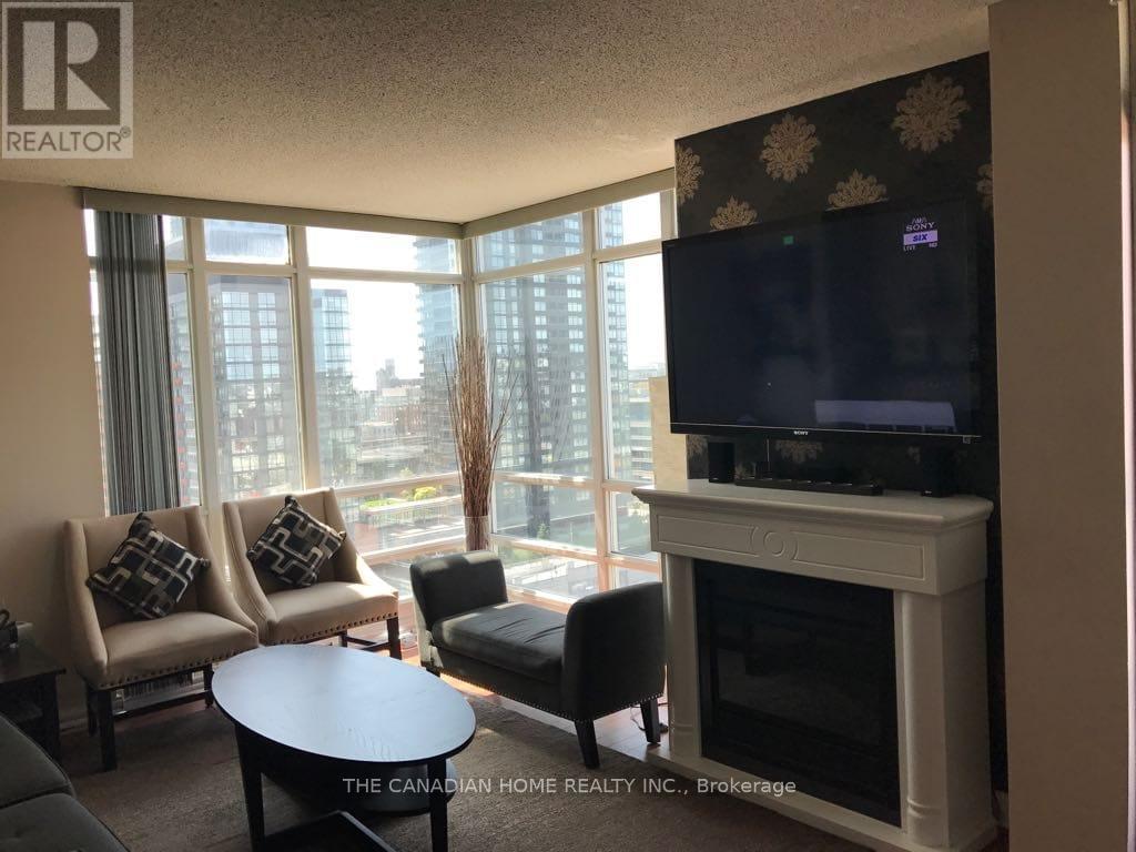Prime location! Experience upscale living in CityPlace with this bright corner 2-bedroom + den condo offering nearly 900 sq ft of space. Enjoy breathtaking south, north, and west views through floor-to-ceiling windows, complemented by sleek laminate flooring throughout. Conveniently located just steps to TTC, Rogers Centre, supermarket, CN Tower, ACC, outdoor cafés, and the Financial & Theatre Districts. Building features top-tier amenities including a 25m indoor pool, basketball court, party room, guest suites, 24-hour concierge, and visitor parking. Easy highway access. Rent includes one parking space, one locker, and all utilities. (id:50787)
