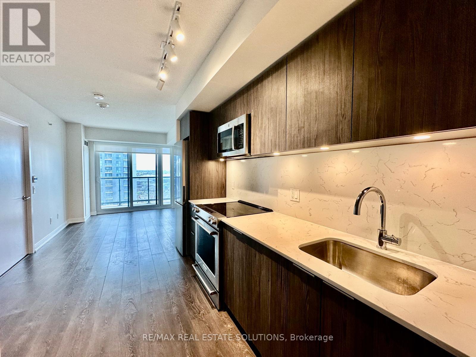 $454.01 MonthlyA great opportunity for homeownership or an investment at the sought after Kip 2 District. Jaw dropping sunset views await from the full length, west facing balcony of this stylish 1 bed, 1 bath suite, complete with a private locker. This meticulously maintained 524 sqft residence features an efficient open concept layout designed to maximize every inch, highlighted by floor to ceiling windows that flood the space with natural light and smooth laminate flooring throughout. The chic, modern kitchen is equipped with premium stainless steel appliances, while the spacious bathroom offers a sophisticated retreat with trendy 12x24 inch tiles and a deep soaker tub. Beyond the suite, enjoy an elevated lifestyle with top tier building amenities including a 24/7 concierge, a fully equipped fitness centre, a vibrant party room, and an outdoor patio with BBQs for summer entertaining. Perfectly positioned for the ultimate commuter experience, you are just steps from the Kipling Transportation Hub and GO Station, providing seamless access to the entire GTA and the downtown core. This vibrant Etobicoke community puts you minutes away from local parks, trendy cafes, and diverse shopping, offering the perfect blend of modern comfort and long term urban value. Don't miss your chance to own in one of the city's most connected neighborhoods. (id:50787)
