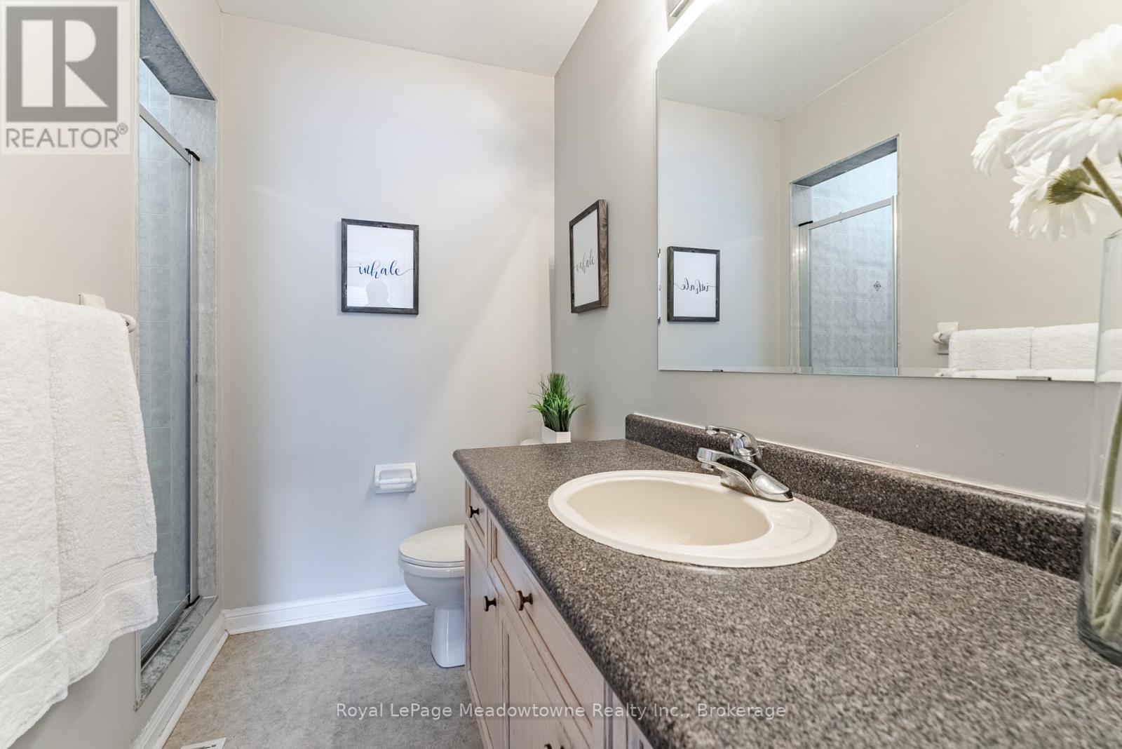 One of the first things you'll love in this Freehold Townhouse is the parking - with space for two cars in the driveway, plus a single-car garage. A covered front porch adds extra charm, with a tucked away nook that's perfect for a small table or outdoor storage. Step inside and you'll immediately feel the freedom this home offers with a great layout, a real backyard, and no condo fees. The dining room is thoughtfully positioned to keep everyday mess out of sight. As you move through the main floor, you'll pass a convenient powder room and inside entry from the garage before arriving in the inviting family room, ideal for entertaining, game nights, or cozy evenings. Overlooking the Family Room is the spacious kitchen, offering plenty of prep space, storage and room to add an island or breakfast table. Slide open the patio doors and the backyard becomes an extension of your living space, perfect for summer BBQs or easy outdoor time. Upstairs, you'll find three bedrooms and a full four piece main bath. The front bedroom features a study nook and a large window with a built in reading bench. The second bedroom overlooks the backyard and benefits from south facing windows that fill the room with natural light. Completing the level is the spacious primary retreat, with a walk-in closet and a private three piece ensuite. The finished basement is tailor made for a teen hangout, games zone or Gym, featuring pot lights and a wet bar for gaming snacks, workout fuel, or late-night movie treats. A powder room is already in place, along with a cleverly tucked away shower closet - quirky in the best way and incredibly practical for guests, teens, or post-workout showers. With 3 showers in the house, nobody's waiting in line! Set in Milton's Clarke neighbourhood, this home is just a short walk to the redeveloped Trudeau Park. Commuters will appreciate the quick access to James Snow Parkway and Hwy 401, making daily travel a breeze plus the added convenience of nearby amenities. (id:50787)