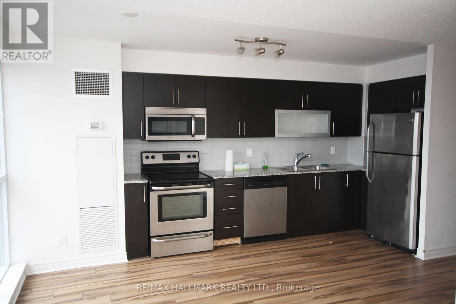 Suite 1710 at Encore is a bright, south-east facing corner unit on the 17th floor offering a flexible 2-bedroom plus solarium layout with sweeping views and natural light throughout the day. The open-concept living and dining area features floor-to-ceiling windows that make the space feel open and airy, flowing into a kitchen with granite countertops and stainless steel appliances. The primary bedroom has its own 4-piece ensuite, the second bedroom is a solid size, and the solarium works perfectly as a home office or reading nook. One parking spot and locker included. Vacant and available for immediate possession. Encore's amenity package covers the essentials - concierge, gym, party room, and more. Outside, the location is hard to beat for anyone who wants everything close by - Scarborough Town Centre is steps away for shopping, dining, and movies, with a YMCA, Real Canadian Superstore, and government offices all within walking distance. Hwy 401 is minutes away, and Scarborough Health Network hospital is nearby. A smart, well-connected home base for the professional or student who wants space, light, and convenience in Scarborough's core. (id:50787)
