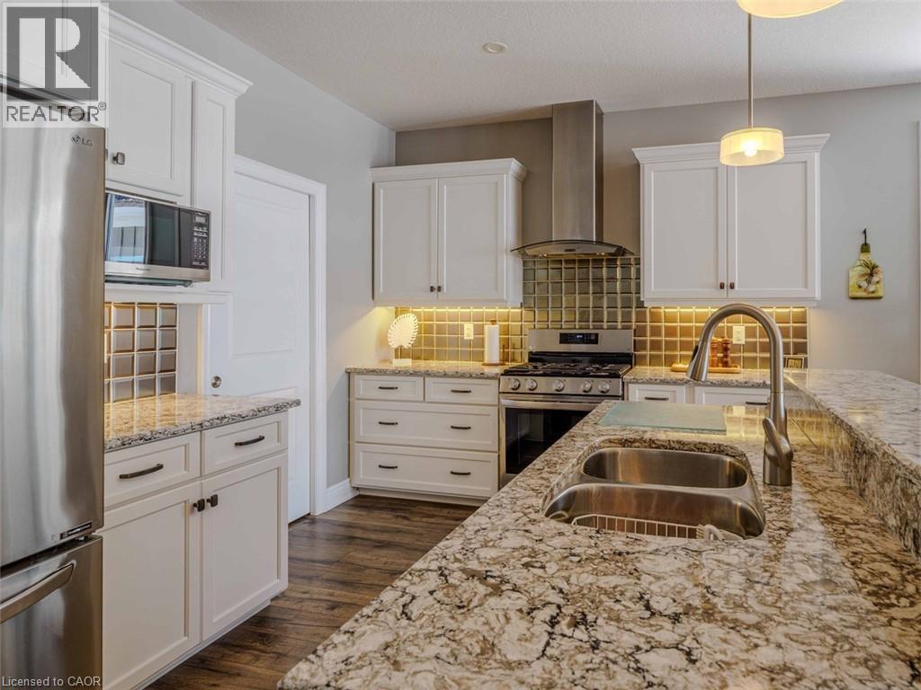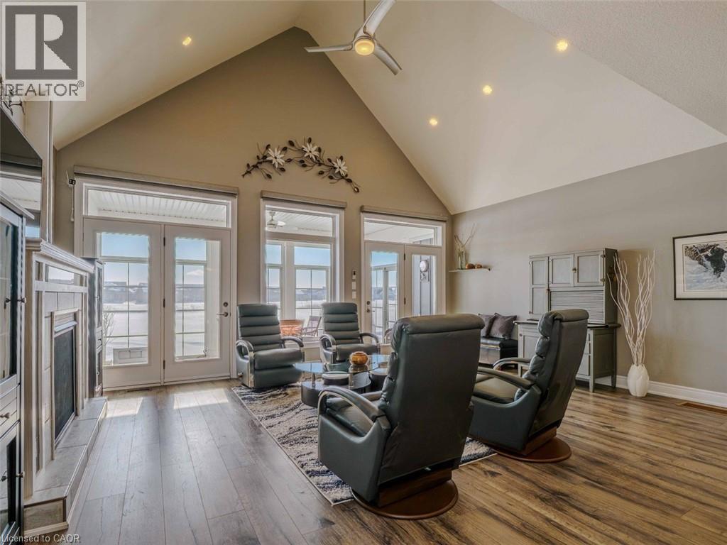 Welcome to this beautifully finished home offering 1834 sq. ft. low-maintenance living in the sought-after lakeside Dover Coast community. Offering custom finishes—including stained glass accents, custom barn doors, and a unique antique vanity—this home is truly one of a kind. Backing on to the 2nd fairway of the golf course, this property delivers comfort, functionality, & lifestyle in equal measure. The main level features a beautiful kitchen with quartz countertops, stainless steel appliances and quality cabinetry—perfect for both everyday living & entertaining. The open-concept design flows into the dining area and a stunning living room highlighted by a vaulted ceiling, beautiful gas fireplace, and 2 sets of glass doors leading to the 3 season sunroom that fill the space with natural light. Enjoy peaceful mornings or relaxing evenings in the sunroom, overlooking the golf course—a lovely setting for quiet moments or gathering with friends. Convenient main-floor laundry offers excellent flexibility and could easily function as a walk-in pantry off the kitchen or a walk-in closet for the adjacent office/bedroom, depending on your needs. The fully finished lower level provides 1,834 sq ft of additional living space, featuring a rec room, bedroom, 3-piece bathroom, creating an ideal space for guests, hobbies & storage. For the car enthusiast, the home offers an oversized double garage complete with heating and durable epoxy floors. Residents enjoy access to amenities including private swimming access, golf course, pickleball crts, & a fenced dog park, enhancing the active lifestyle this community provides. (*some amenities addition fee) Located in the vibrant destination town of Port Dover on the shores of Lake Erie, you’ll enjoy beaches, boating, fishing, a marina, walking & biking trails, restaurants, boutiques, and all that Norfolk County has to offer. Here's your opportunity to own a beautifully finished home in one of Ontario’s most charming waterfront towns. (id:50787)