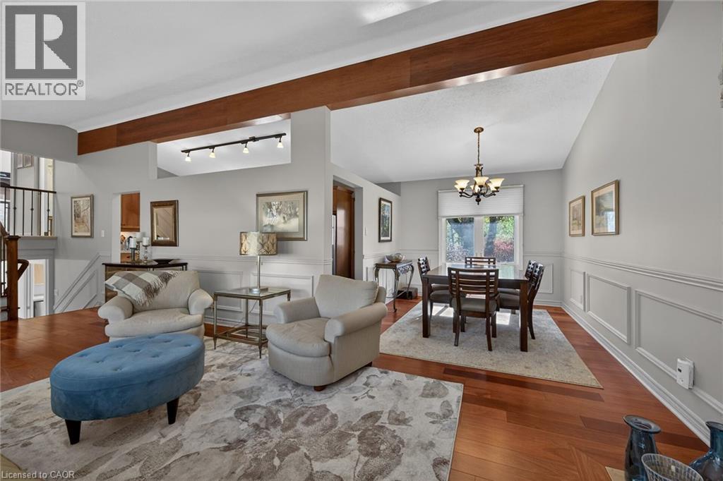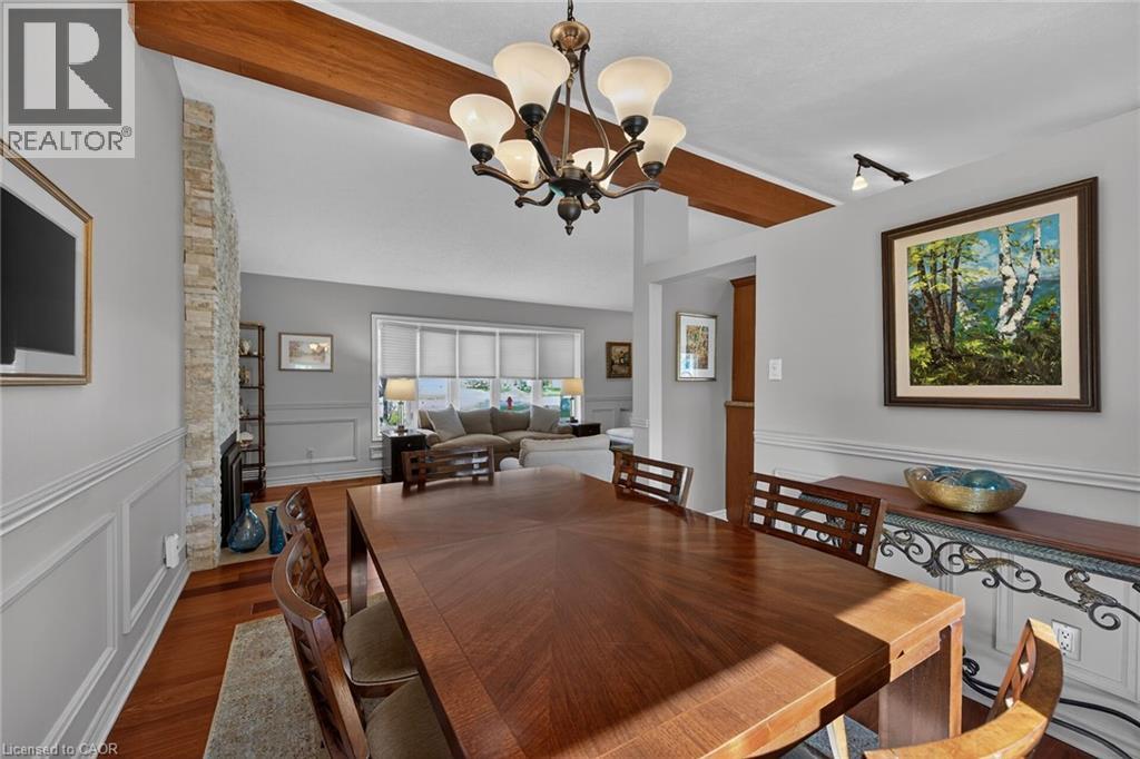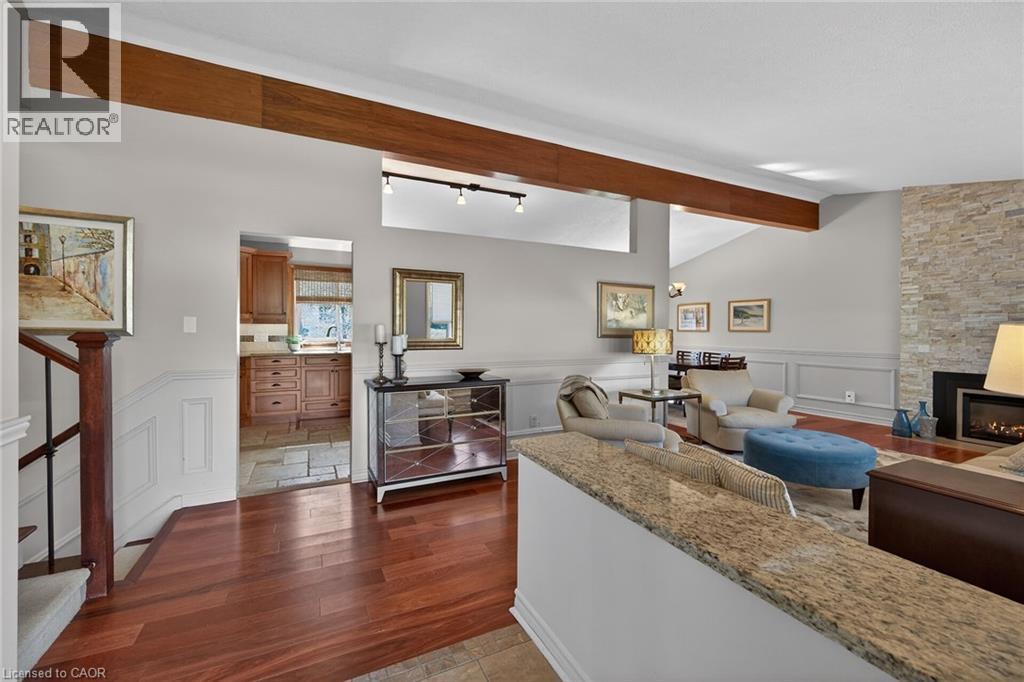 Welcome home! This beautifully maintained 3-bedroom side-split is ideally situated on a spectacular, fully fenced lot in the heart of the sought after Spring Valley community. Step inside to a bright and spacious main floor featuring a welcoming living room with rich hardwood flooring and a cozy gas fireplace, perfect for relaxing evenings. The formal dining room offers an elegant space for entertaining, while the updated kitchen (2008) is a true standout, complete with granite countertops and a charming breakfast nook. Upstairs, you'll find three generously sized bedrooms. The primary bedroom features ample closet space with custom built-ins. The stunning 5-piece bathroom, thoughtfully renovated (2013), showcases warm finishes and includes a separate soaker tub for a spa-like retreat. The lower level offers a large recreation room with an additional fireplace, creating the perfect space for family gatherings or movie nights. This level also includes an updated laundry area with a convenient 2-piece bathroom (2013), along with a spacious crawl space providing plenty of storage. A walkout leads directly to the beautifully landscaped backyard, featuring multi-level seating areas ideal for outdoor entertaining and relaxation. Located within a quick walking distance to beautiful trails, Spring Valley Area, Morgan Firestone Sports Complex, excellent schools and multiple shopping plazas including Fortinos, Food Basics, Shoppers Drug Mart, banks, dental offices, and a variety of restaurants. This home offers exceptional convenience. Plus, with quick access to Highway 403, commuting is a breeze. Move in and enjoy everything this wonderful home and vibrant community have to offer! (id:50787)