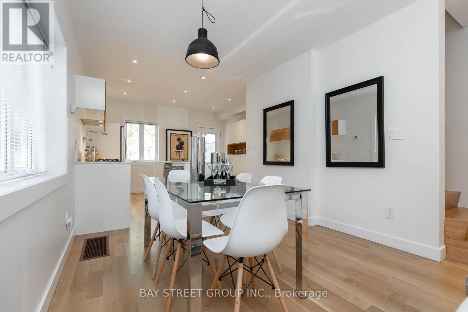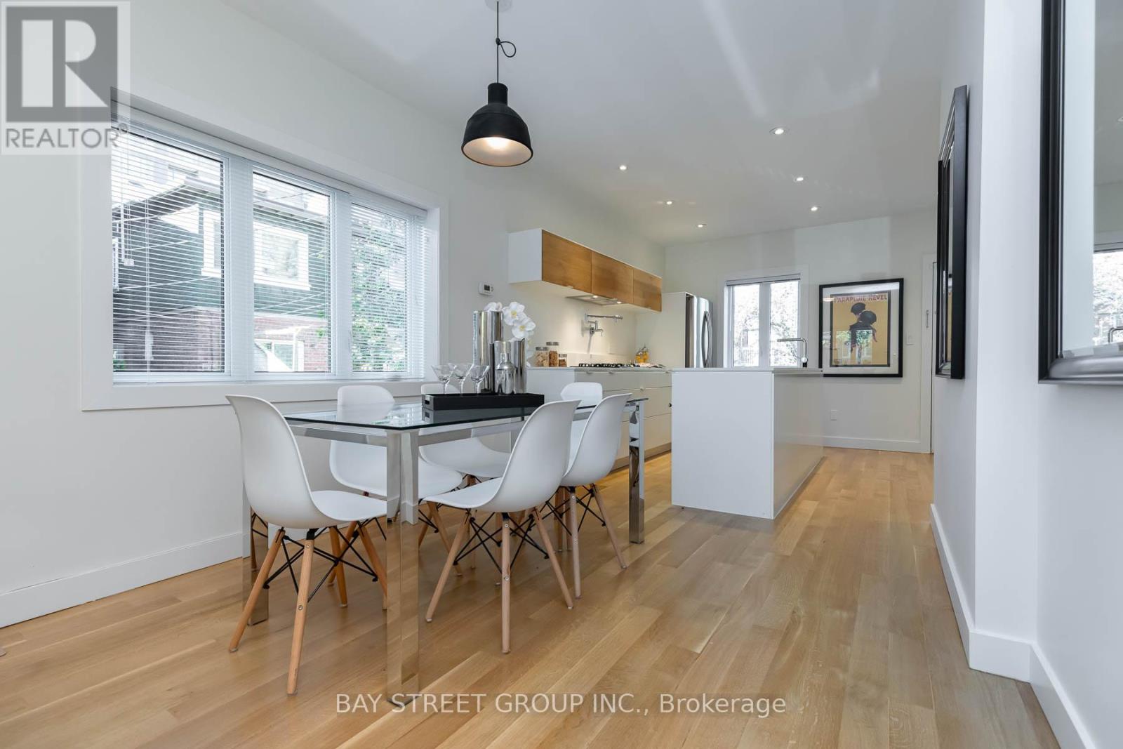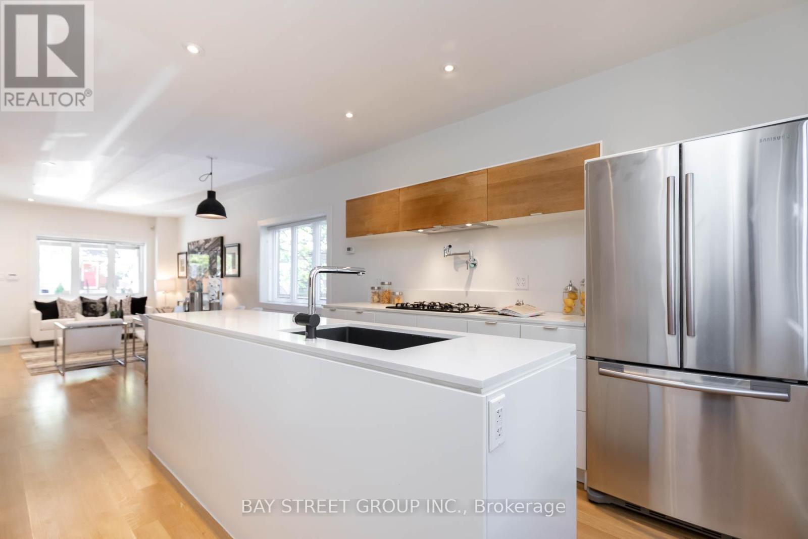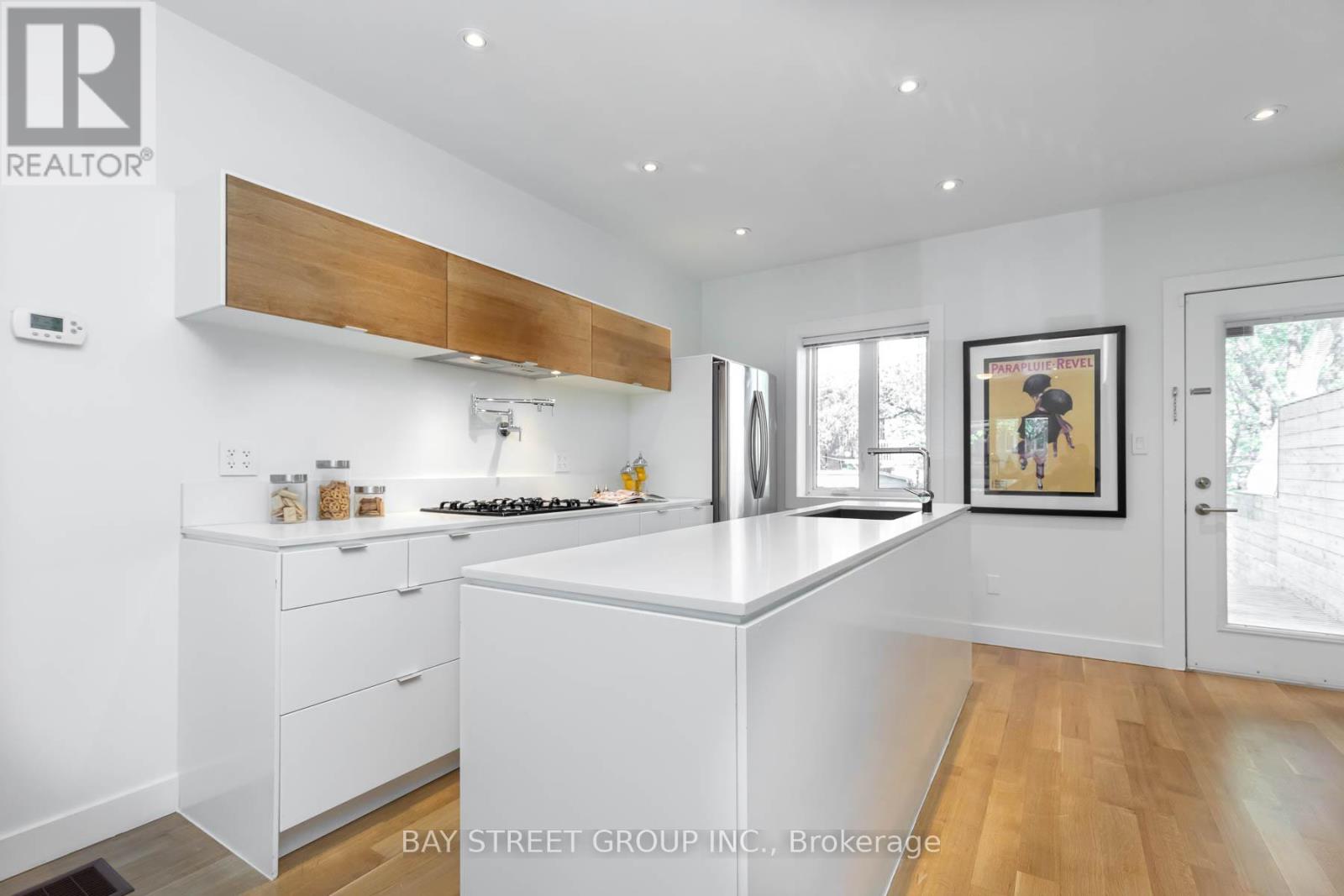 Stunning Modern 3+1 Bdrm Compact Family Home That's Been Gutted Out Down To The Bricks. Ideal for a small family. This Sun Filled Open Concept Home Features Gorgeous White Oak Floors Thru-Out, Pot Lights, Main Floor Powder Room, Contemporary Kitchen W/Quartz Counters. Centre Island, W/O To Spacious Private Deck, Finished Basement. With 4th Br., Laminate Floors + Spa Bath W/ Heated Floor. Legal Pad Parking. Great Location + Just Steps To Subway, Shops, Schools And Restaurants. (id:50787)