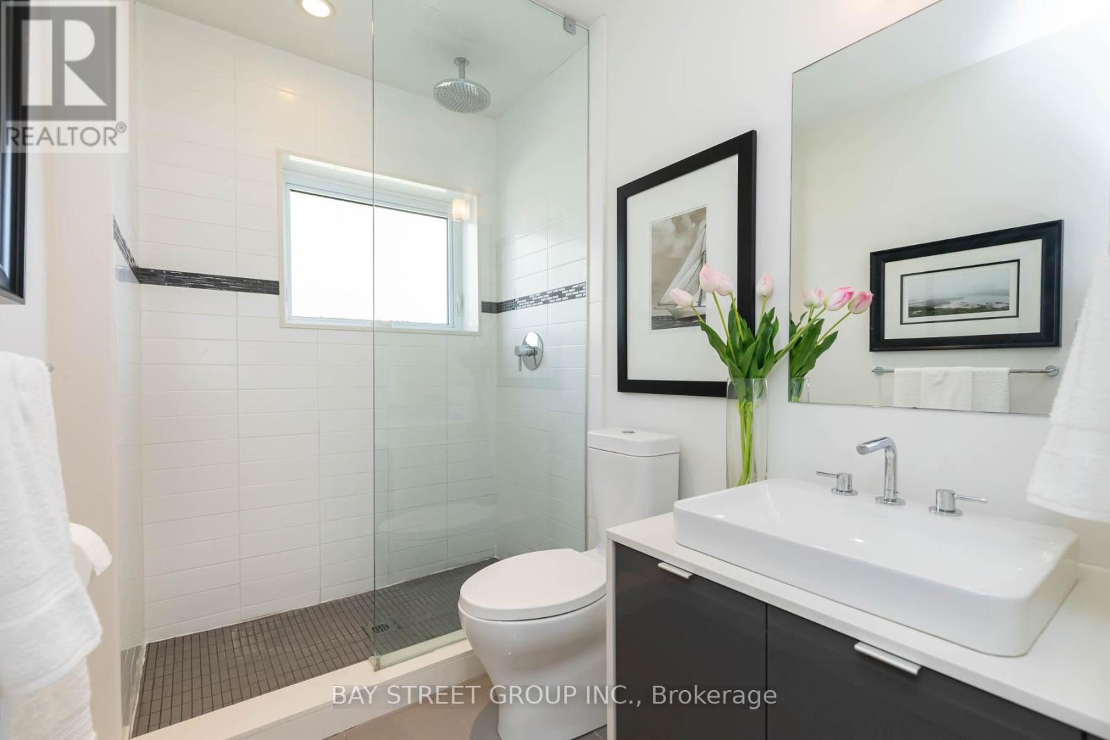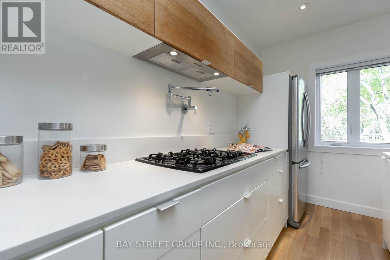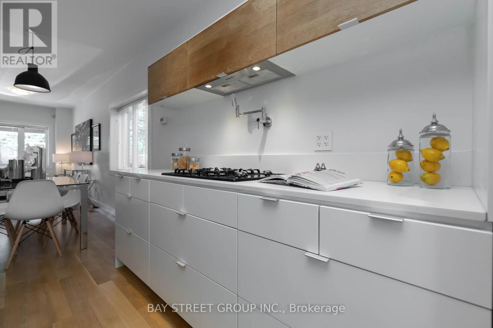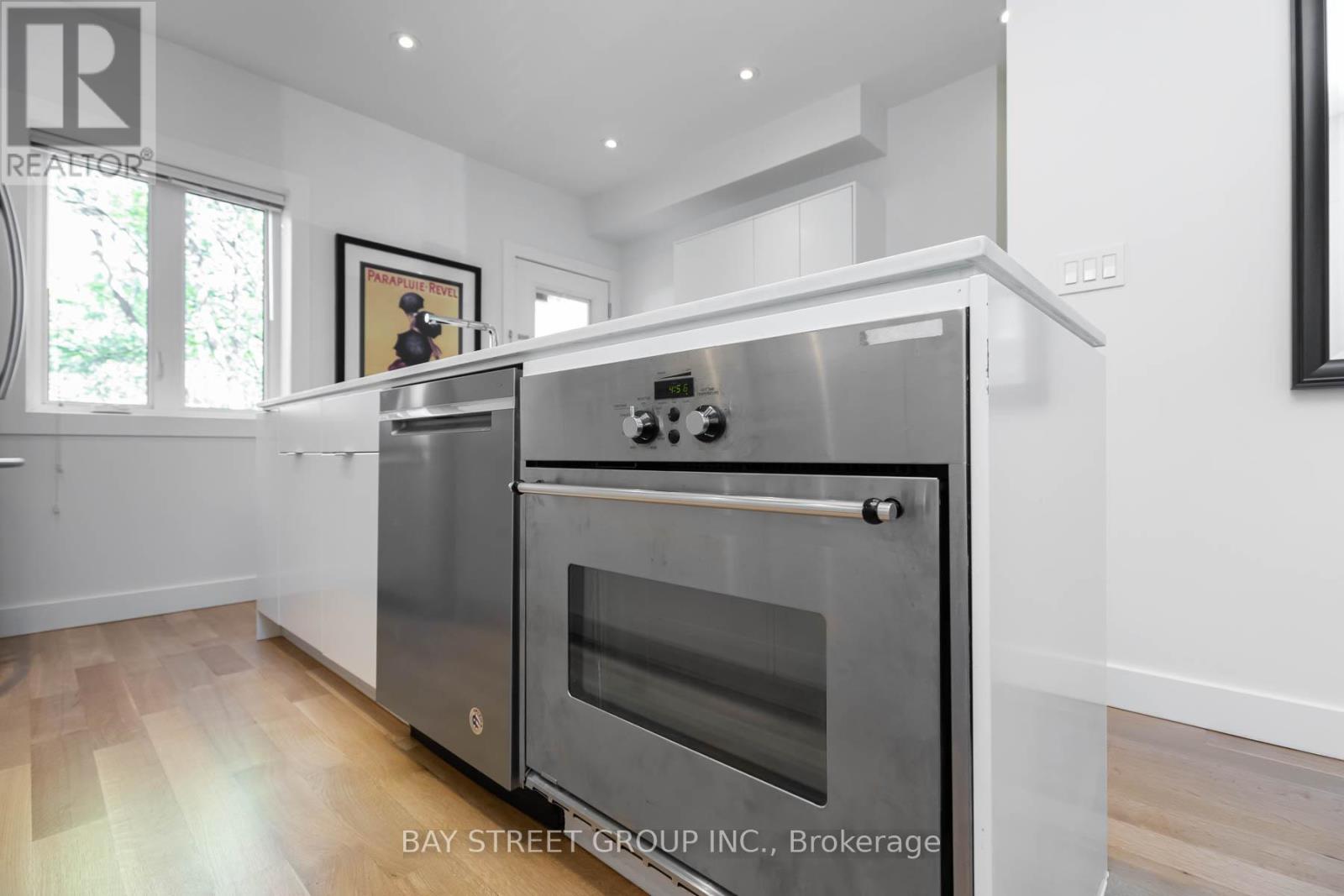 Stunning Modern 3+1 Bdrm Compact Family Home That's Been Gutted Out Down To The Bricks. Ideal for a small family. This Sun Filled Open Concept Home Features Gorgeous White Oak Floors Thru-Out, Pot Lights, Main Floor Powder Room, Contemporary Kitchen W/Quartz Counters. Centre Island, W/O To Spacious Private Deck, Finished Basement. With 4th Br., Laminate Floors + Spa Bath W/ Heated Floor. Legal Pad Parking. Great Location + Just Steps To Subway, Shops, Schools And Restaurants. (id:50787)