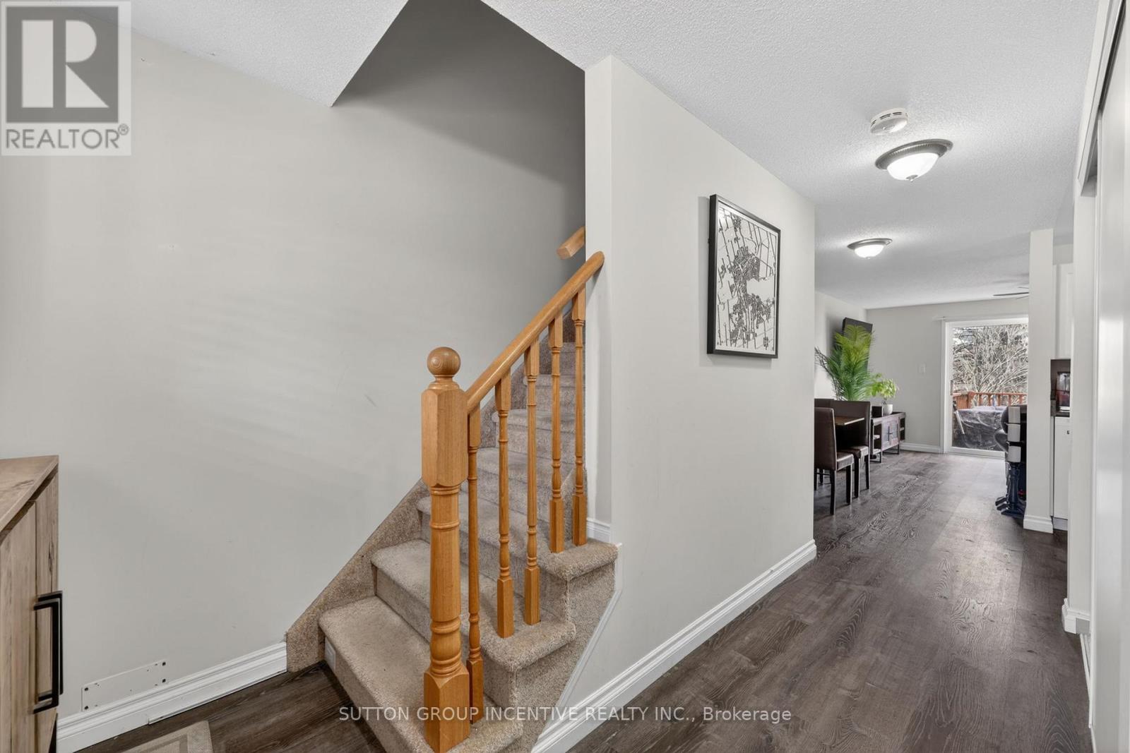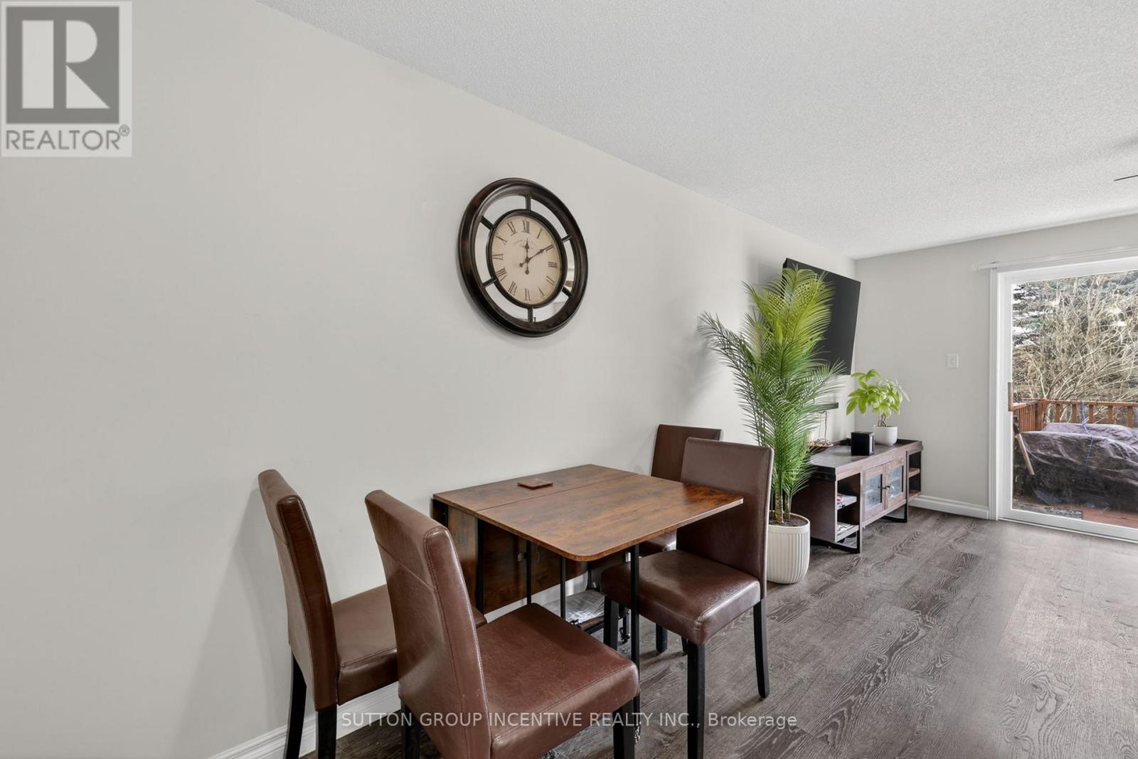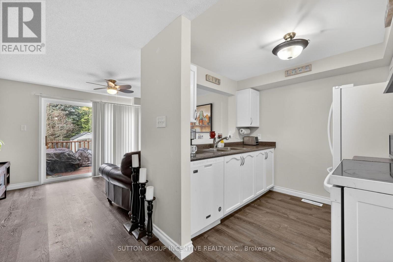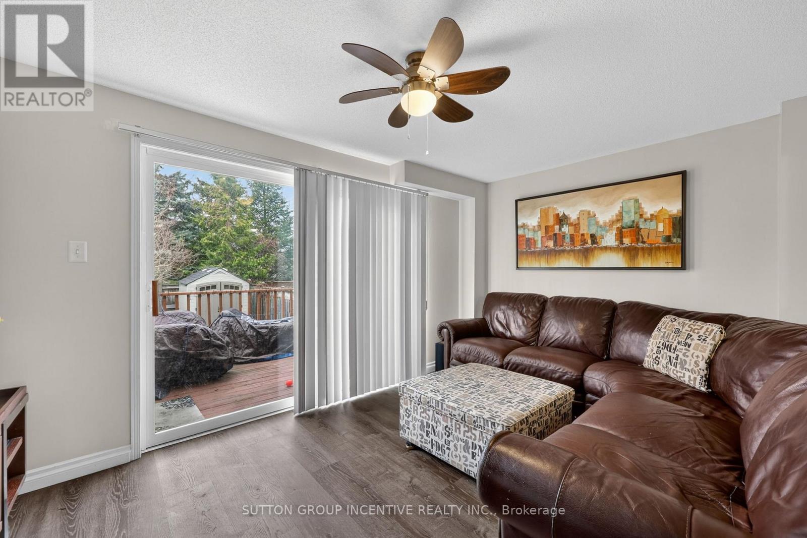 Charming 2-bedroom townhome ideally situated in the highly sought-after south east end, close to every convenience including shopping, restaurants, library, parks, schools, golf, the GO Station, and easy access to Hwy 400. Welcoming private front porch leads into a bright and spacious main level featuring beautiful laminate flooring throughout. Functional kitchen with white cabinetry and a pass-through opening overlooking the expansive living room, perfect for entertaining. Separate dining area and a spacious living room with walkout to the deck and fully fenced, landscaped backyard complete with a garden shed for added storage. Upstairs offers two generous-sized bedrooms, including one with a walk-in closet and semi-ensuite privilege, along with an updated 4-piece bathroom. The unfinished lower level provides endless potential to create additional living space tailored to your needs. Additional highlights include newer shingles, a large front entry closet, and ample storage throughout. Ideal for first-time buyers, investors, or those looking to downsize, this is a fantastic opportunity to own in a desirable family-friendly neighbourhood. (id:50787)