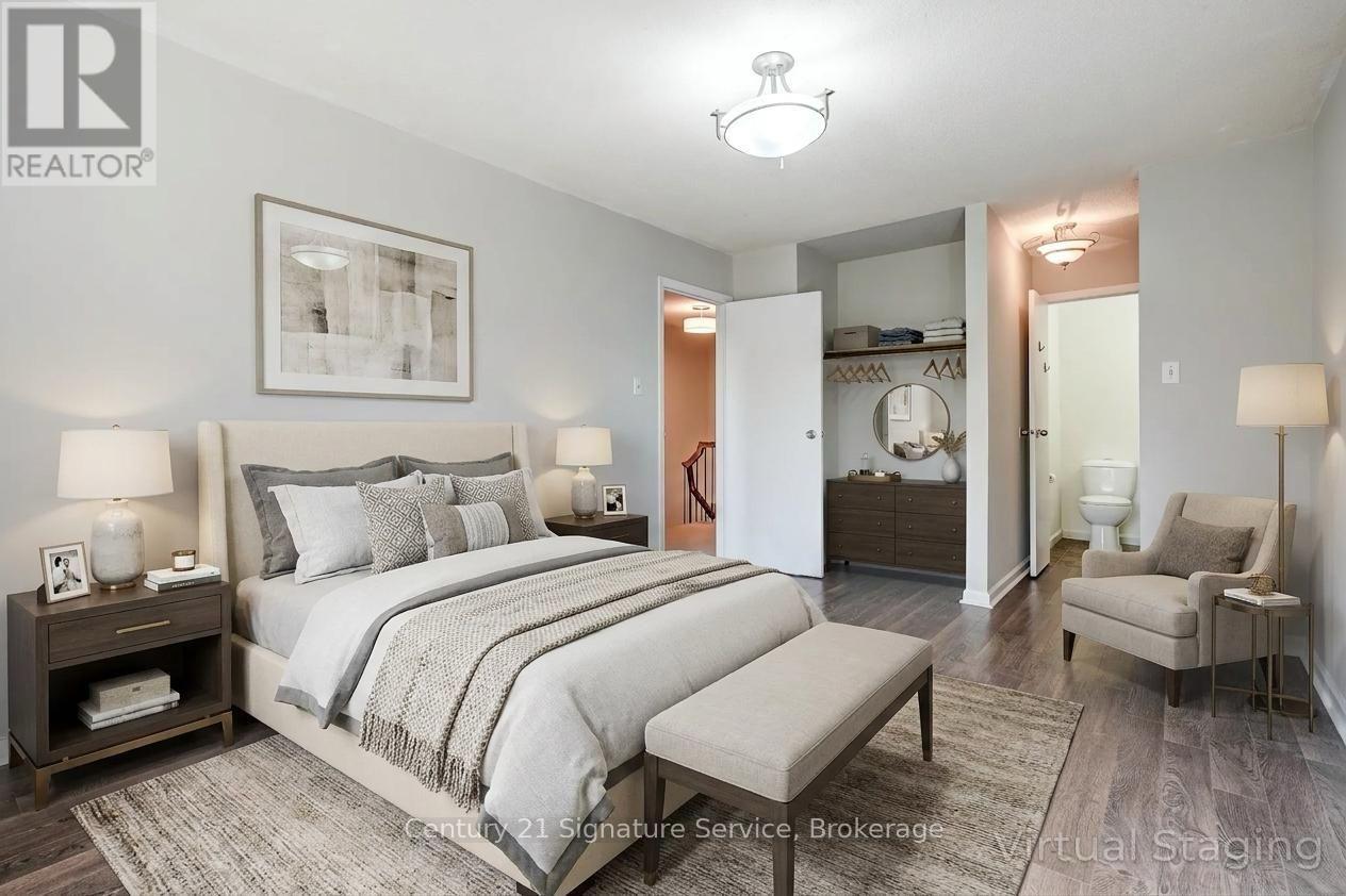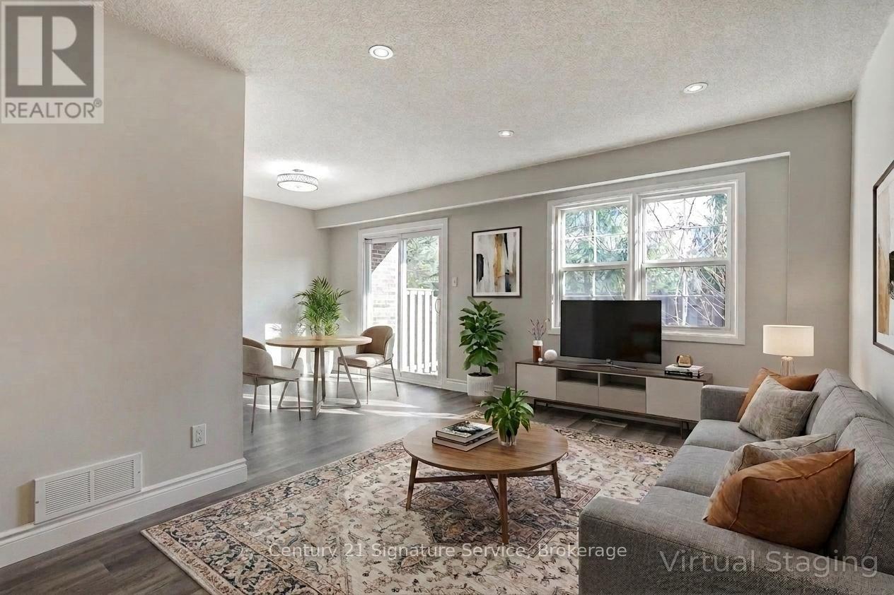 Welcome to Rockwood Village, one of East Mississauga's most established and family-friendly communities, known for its green space, connected trails, and convenient location. This end-unit townhome is ideally situated within the complex, close to an entrance and visitor parking, while backing directly onto the playground and tennis courts.The main floor features laminate flooring, pot lights, and a walkout to a privately fenced backyard where you can enjoy direct views of the park and tennis courts.Upstairs, the spacious primary bedroom offers a private balcony and its own 2-piece ensuite. The finished lower level adds exceptional flexibility with a large rec room and a cozy wood-burning fireplace.Step outside to the Etobicoke Creek Trail system and enjoy quick access to Toronto's Centennial Park, offering walking paths, sports fields, and year-round recreation. Golf lovers will appreciate being just minutes from Centennial Park Golf Centre. Commuting is easy with nearby TTC and MiWay transit, Dixie GO Station, and quick access to Highways 401, 403, 427, and the QEW, with Toronto Pearson Airport only 15 minutes away. Walk to Longos for daily essentials and enjoy nearby parks, playgrounds, tennis courts, and splash pads. Maintenance fees include exterior maintenance, lawn care, internet, cable TV, and water.Don't miss this opportunity to own in a well-loved community. Come see it today. (id:50787)