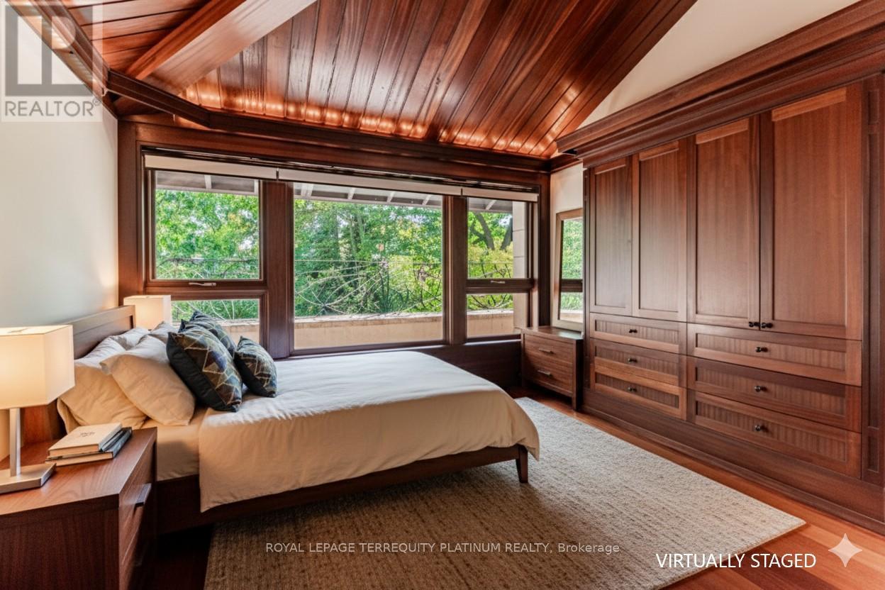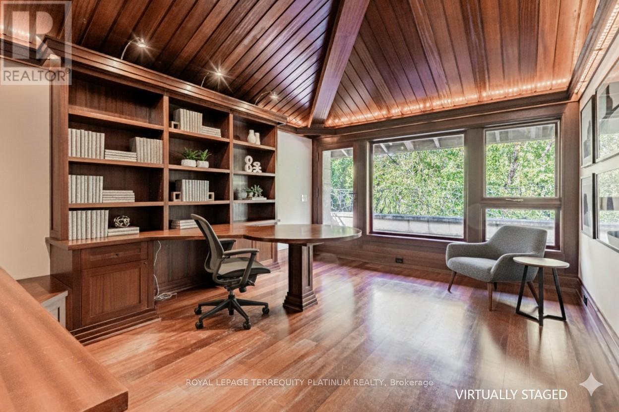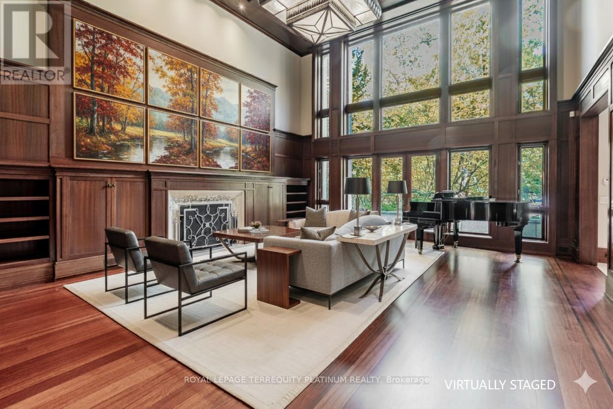 An architectural tour de force by acclaimed Robert Le Blond, recipient of the 1990 Governor Generals Award in Architecture ("Head-Smashed-In Buffalo Jump" in Alberta, now a UNESCO World Heritage Site), this 20-year-young bespoke residence is a French Art Deco masterwork of craftsmanship with inspired ironwork by Goudy from Spain. Offering over 5,000 sq ft of living space on a coveted corner by Chorley Park in prestigious Rosedale, the home is clad in rare Manitoba Tyndall stone, prized for its striking fossilized patterning. The residence blends enduring elegance with modern comfort, from the heated front porch and rear veranda to the soaring 17-foot living room crowned by a vintage theatre chandelier and wrapped in rich, mahogany-stained Jatoba wood wainscoting and floors. Formal entertaining spaces flow seamlessly into the chefs kitchen, breakfast area, and family room, all opening onto a landscaped garden sanctuary. The detached, heated garage, complete with a skylight, wet bar, shower, and custom storage, offers versatility as a private workshop, while a gated driveway ensures both privacy and grandeur. With five bedrooms, two offices, five fireplaces, six bathrooms, wrap-around balcony and even a dedicated pet wash, every element reflects a commitment to refined living without compromise. (id:50787)