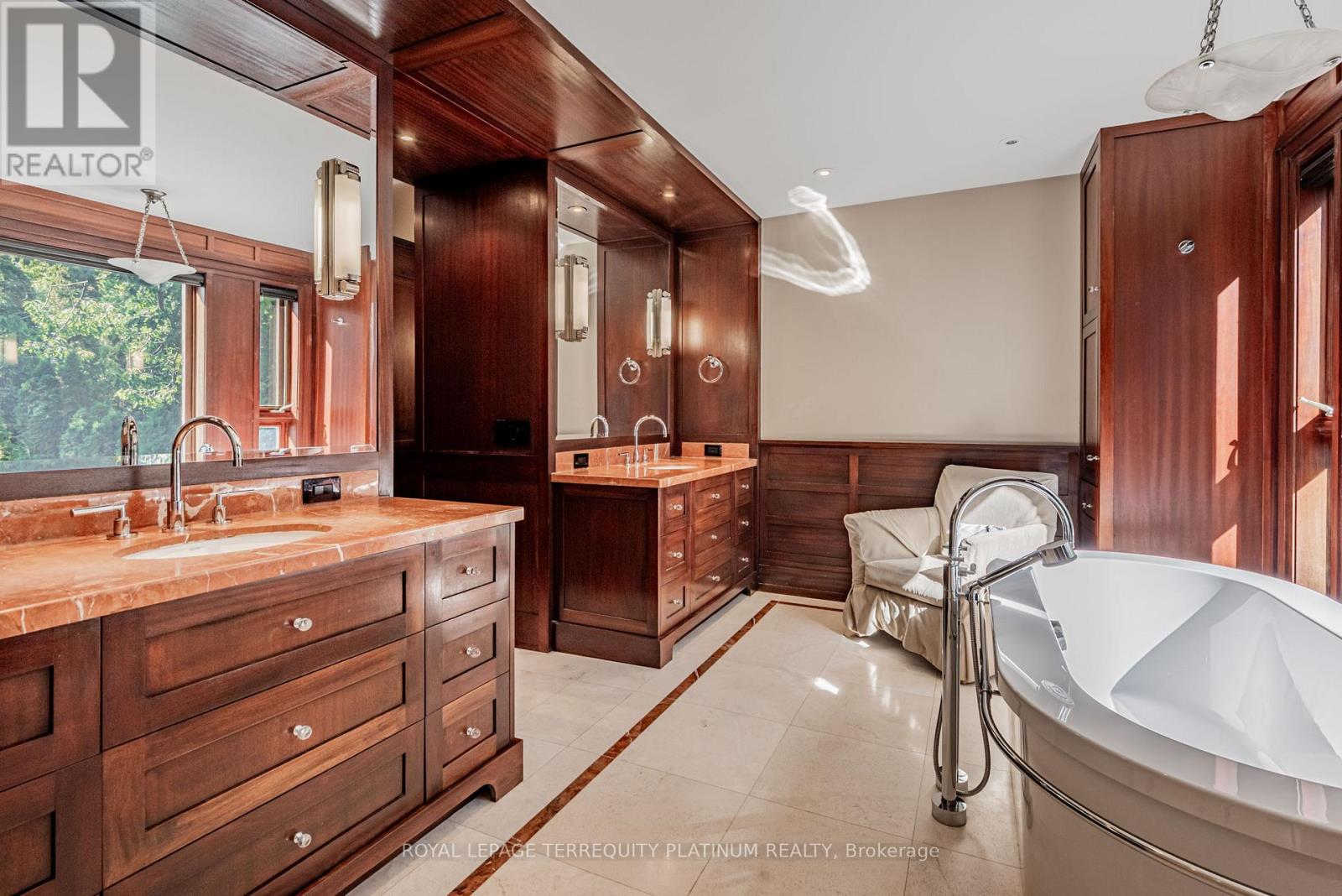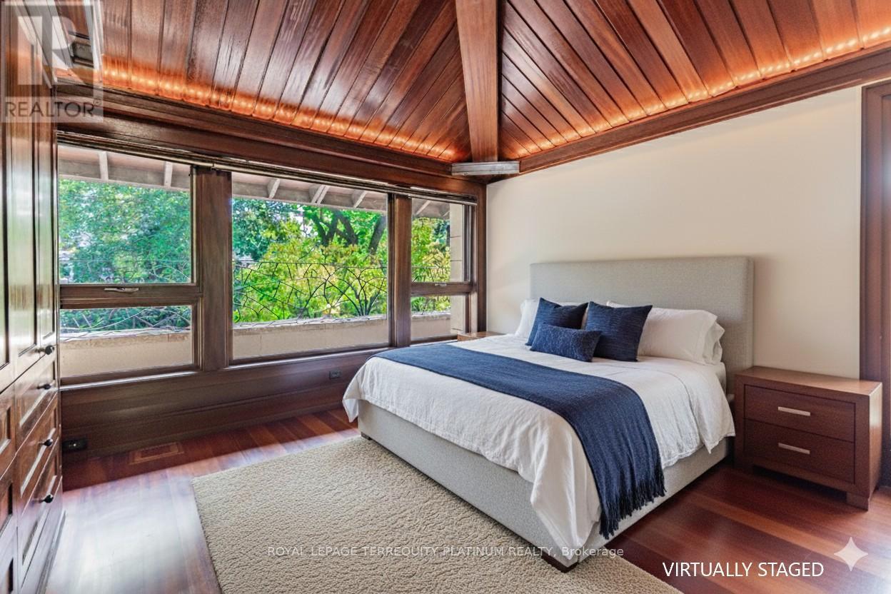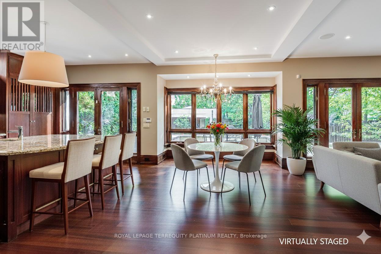 An architectural tour de force by acclaimed Robert Le Blond, recipient of the 1990 Governor Generals Award in Architecture ("Head-Smashed-In Buffalo Jump" in Alberta, now a UNESCO World Heritage Site), this 20-year-young bespoke residence is a French Art Deco masterwork of craftsmanship with inspired ironwork by Goudy from Spain. Offering over 5,000 sq ft of living space on a coveted corner by Chorley Park in prestigious Rosedale, the home is clad in rare Manitoba Tyndall stone, prized for its striking fossilized patterning. The residence blends enduring elegance with modern comfort, from the heated front porch and rear veranda to the soaring 17-foot living room crowned by a vintage theatre chandelier and wrapped in rich, mahogany-stained Jatoba wood wainscoting and floors. Formal entertaining spaces flow seamlessly into the chefs kitchen, breakfast area, and family room, all opening onto a landscaped garden sanctuary. The detached, heated garage, complete with a skylight, wet bar, shower, and custom storage, offers versatility as a private workshop, while a gated driveway ensures both privacy and grandeur. With five bedrooms, two offices, five fireplaces, six bathrooms, wrap-around balcony and even a dedicated pet wash, every element reflects a commitment to refined living without compromise. (id:50787)