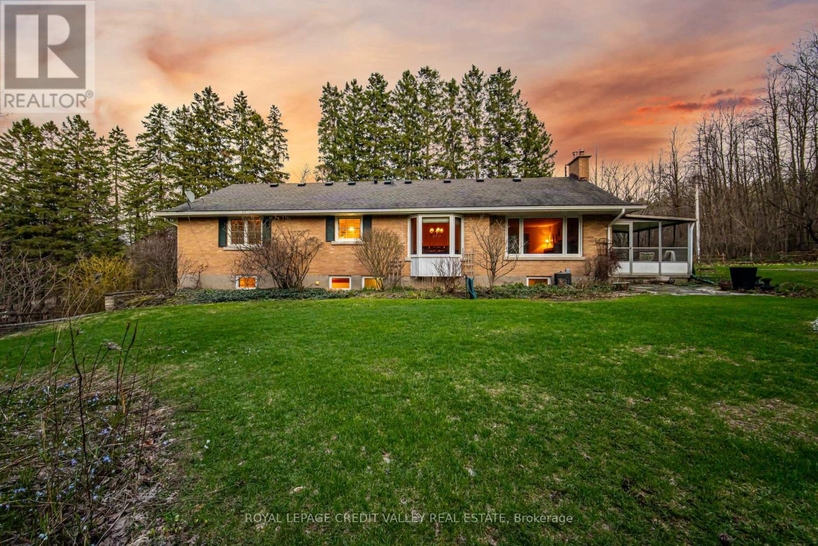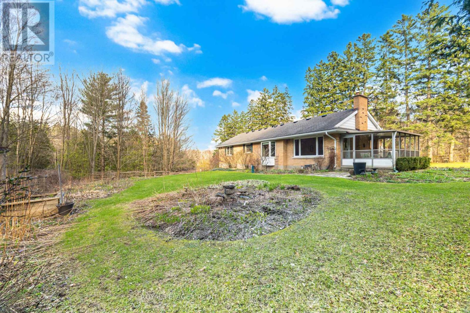 Welcome to a rare opportunity to own approximately 24 acres of private, mature forest in the heart of Caledon where quiet mornings, fresh air, & natural beauty define everyday life. Offered for the 1st time in 68 years & tucked along a peaceful country road, this picturesque property blends privacy, tranquility, & exceptional potential. More than just a home, it offers a chance to embrace a serene rural lifestyle. The land is the true center piece, rich in ecological diversity. The headwaters of the Humber River flow thru the property from Innis Lake Rd to Finnerty Side Rd, creating a peaceful landscape & offering excellent brook trout fishing. The Bruce Trail runs along Finnerty Side Rd, providing direct access to one of Ontario's most celebrated natural pathways. Scenic trails wind throughout the property & along the stream, ideal for hiking, birdwatching, & snowshoeing. 2 charming bridges cross the water, adding both accessibility & character. Wetlands, spring wildflowers, & a natural spring support abundant wildlife, including frequent deer sightings particularly in winter mnths. The forest was thoughtfully reforested w/ species recommended by the Department of Lands & Forests, including approx.500 sugar maples planted in the 1940s & 50s. Over time, this regeneration has strengthened the land expanding the stream & eliminating concerns of erosion.A charming brick bungalow offers approx. 1,400 sqft. w/ 2 bdrms, 1 bthrm, a walk-out basement, & att. garage.Large windows bring in natural light & frame the surrounding landscape.A 3 season sunroom inground pool provide ideal spaces to relax & enjoy. Additional features include a wood-burning fireplace, windows (~ 10 yrs) , & furnace (2010). Designated as Managed Forest, the property may offer long-term environmental value & potential tax benefits. A truly special property where the beauty & value of the land far exceed the home itself, min. from Caledon East convenient access to the GTA. Furnishings virtually staged. (id:50787)