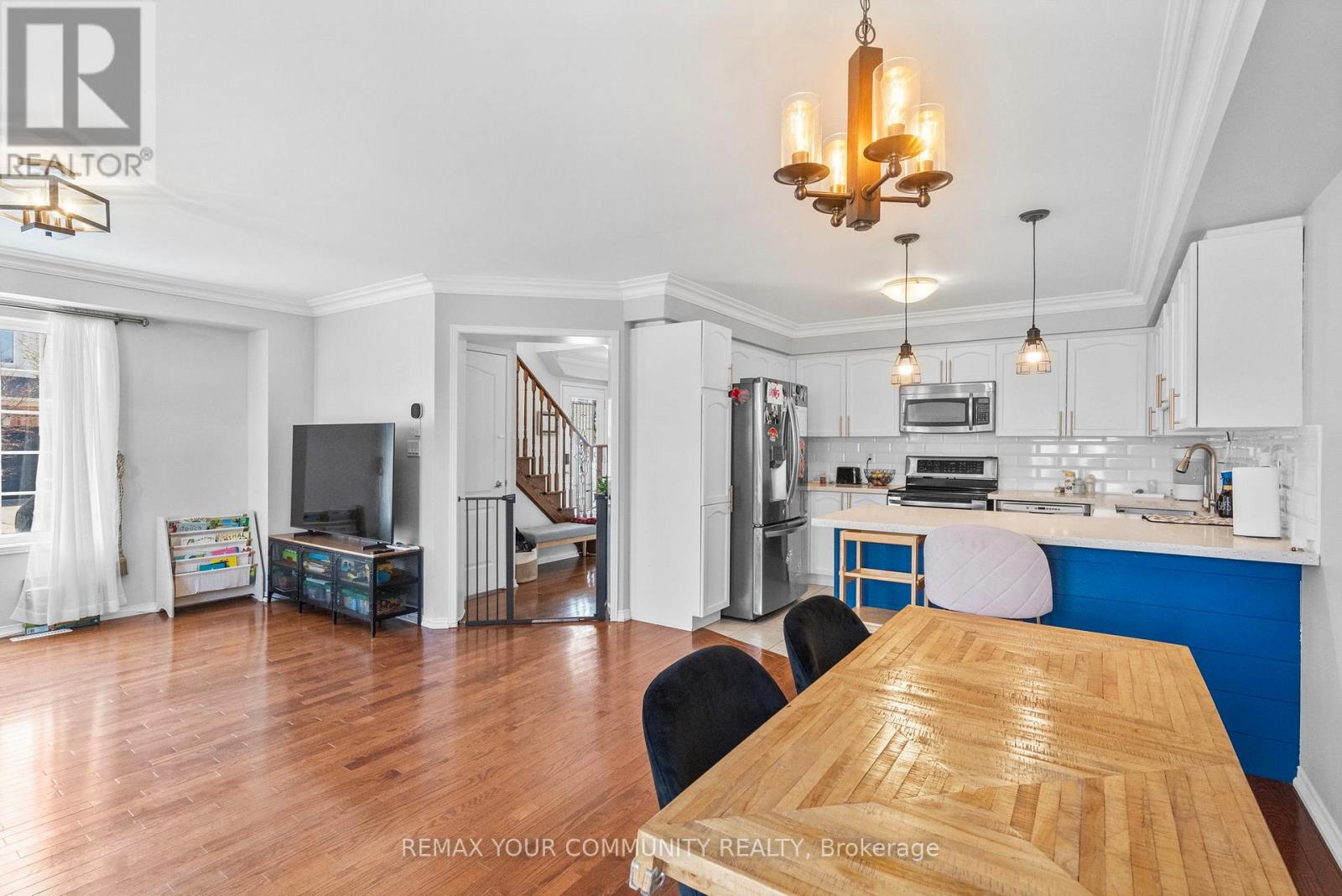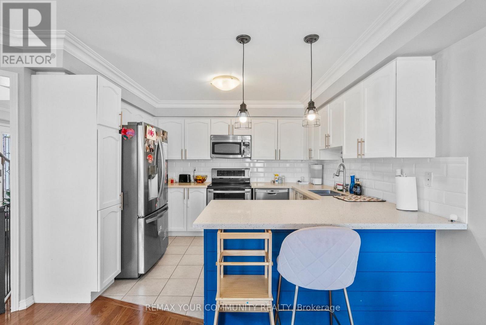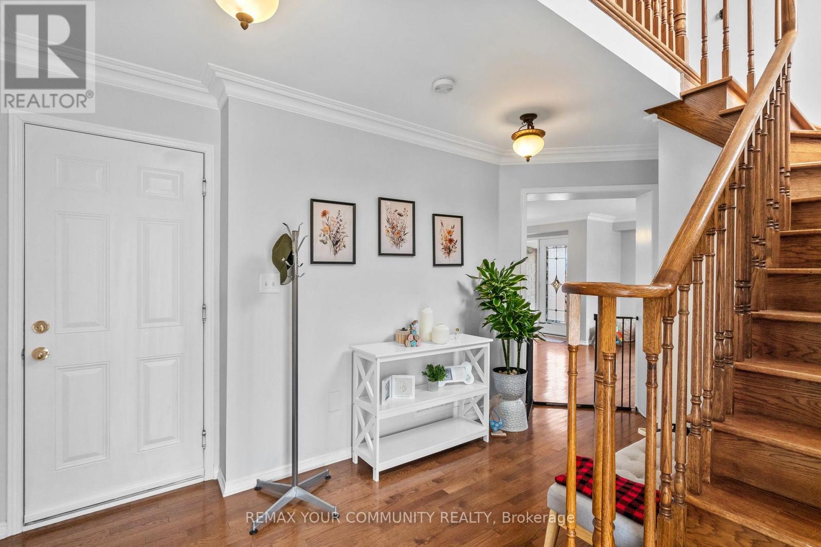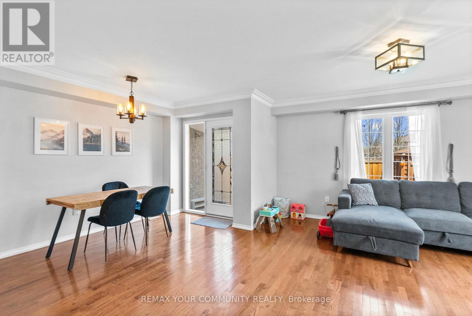 Welcome to this beautifully maintained 3 bedroom end unit townhome in the highly desirable Brooklin community of Whitby. Offering 1,761 sq. ft. of thoughtfully designed living space, this home is a fantastic opportunity for first time buyers, condo upsizers, downsizers, young professionals, and families looking for more space, comfort, and a true neighbourhood lifestyle. The large wraparound porch creates instant curb appeal and offers the perfect spot to enjoy your morning coffee or unwind at the end of the day. Inside, the main floor features crown moulding, a bright open layout, garage access, and an upgraded modern kitchen with quartz countertops, ideal for everyday living and entertaining. The ground floor office with wraparound windows provides a beautiful work from home space, reading nook, or creative studio. Upstairs, you will find three spacious bedrooms and the convenience of a second floor laundry room. The professionally finished basement adds valuable living space, perfect for a rec room, guest area, home gym, or movie night setup. Recent and practical upgrades include a new furnace installed in December 2025, an owned water softener, upgraded front and backyard doors, and a custom built wooden shed. Set on a premium lot with professional landscaping, this end unit offers extra outdoor space and a backyard that feels private, functional, and easy to enjoy. The location is exceptional, just steps to Brooklin Memorial Park with a track field, skate park, arena, and tennis courts. You are also close to grocery shopping, Highway 407, Lyndebrook Golf Course, Heber Down Conservation Area, walking trails, and community centres.Brooklin is loved for its small town charm, family friendly streets, parks, trails, and convenient access to major routes. This is the kind of home that gives you room to grow, space to simplify, and a connected lifestyle in one of Whitby's most desirable communities. (id:50787)