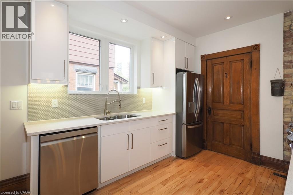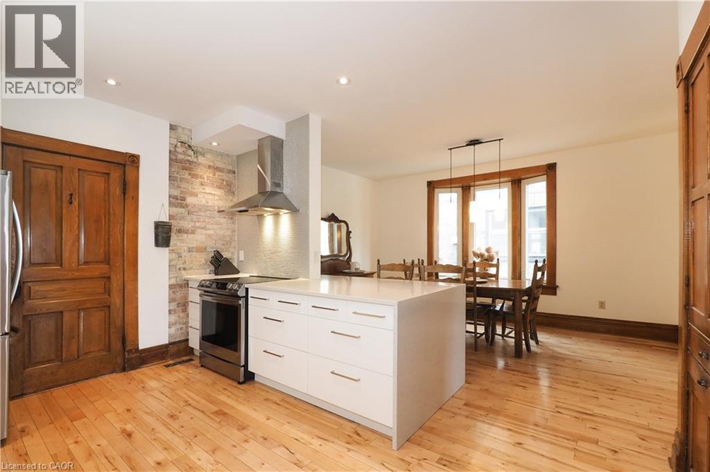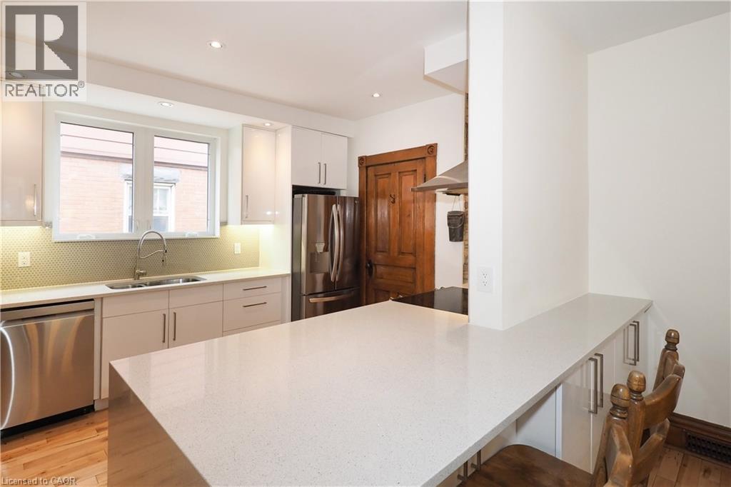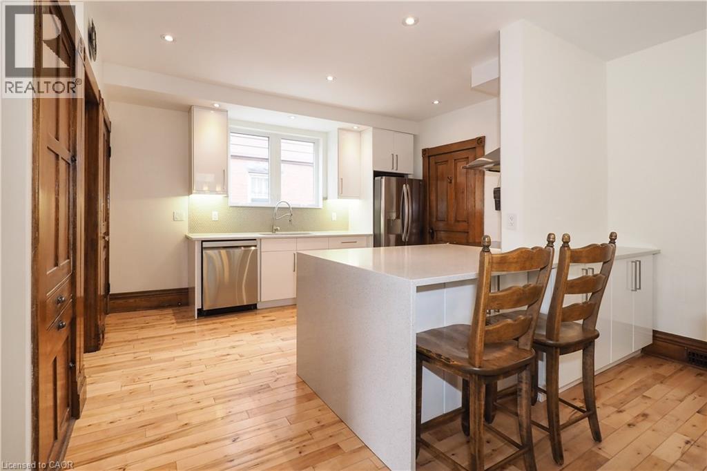 Welcome to this charming 3-bed, 1-bath century home nestled in one of Kitchener’s most sought-after neighbourhoods — just steps from Victoria Park. With a high walk score and unbeatable access to shops, cafés, restaurants, and transit, this location offers the perfect blend of convenience and community. Victoria Park is a signature downtown landmark — a scenic lake, mature trees, and winding paths creating a peaceful retreat in the city’s core. The park hosts many of Kitchener’s most beloved festivals and events, like the Kitchener Blues Festival, Ribfest, the Multicultural Festival, outdoor concerts, and seasonal celebrations. A spacious front porch offers the ideal spot to enjoy your morning coffee in warm sunlight while listening to the sounds of nature. The backyard provides sunny afternoons perfect for relaxing or entertaining. Step inside to an inviting living room featuring stunning original details, including preserved natural hardwood trim and beautiful wood pocket doors that add character and timeless appeal. The updated kitchen is bright and functional, offering a generous quartz island, with a waterfall edge and plenty of storage. On the other side of the island is a well-sized dining area that makes everyday meals and weekend hosting feel effortless. An additional bonus room at the back of the home provides flexible living space with direct access to the backyard. Whether you need a bright home office, a kids’ playroom, or a cozy reading nook, this room adapts beautifully to your lifestyle. Upstairs, you’ll find three comfortable bedrooms and a full bathroom. The finished basement adds more usable space with a rec room perfect for movie nights or a home gym, plus a utility room with laundry. The home is in one of Kitchener’s most sought-after areas, known for its welcoming community and beautiful heritage homes. This property delivers the character and lifestyle you'll fall in love with. Schedule your viewing and see everything this home has to offer. (id:50787)