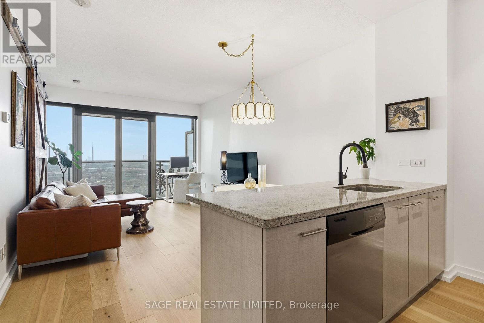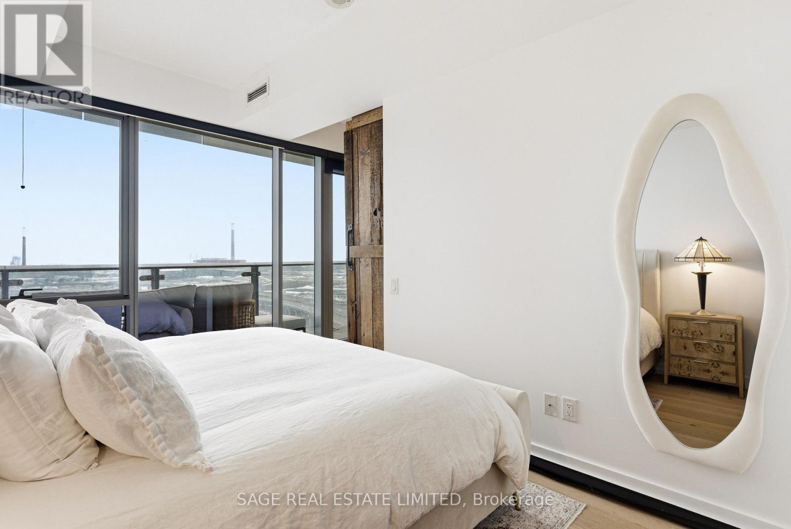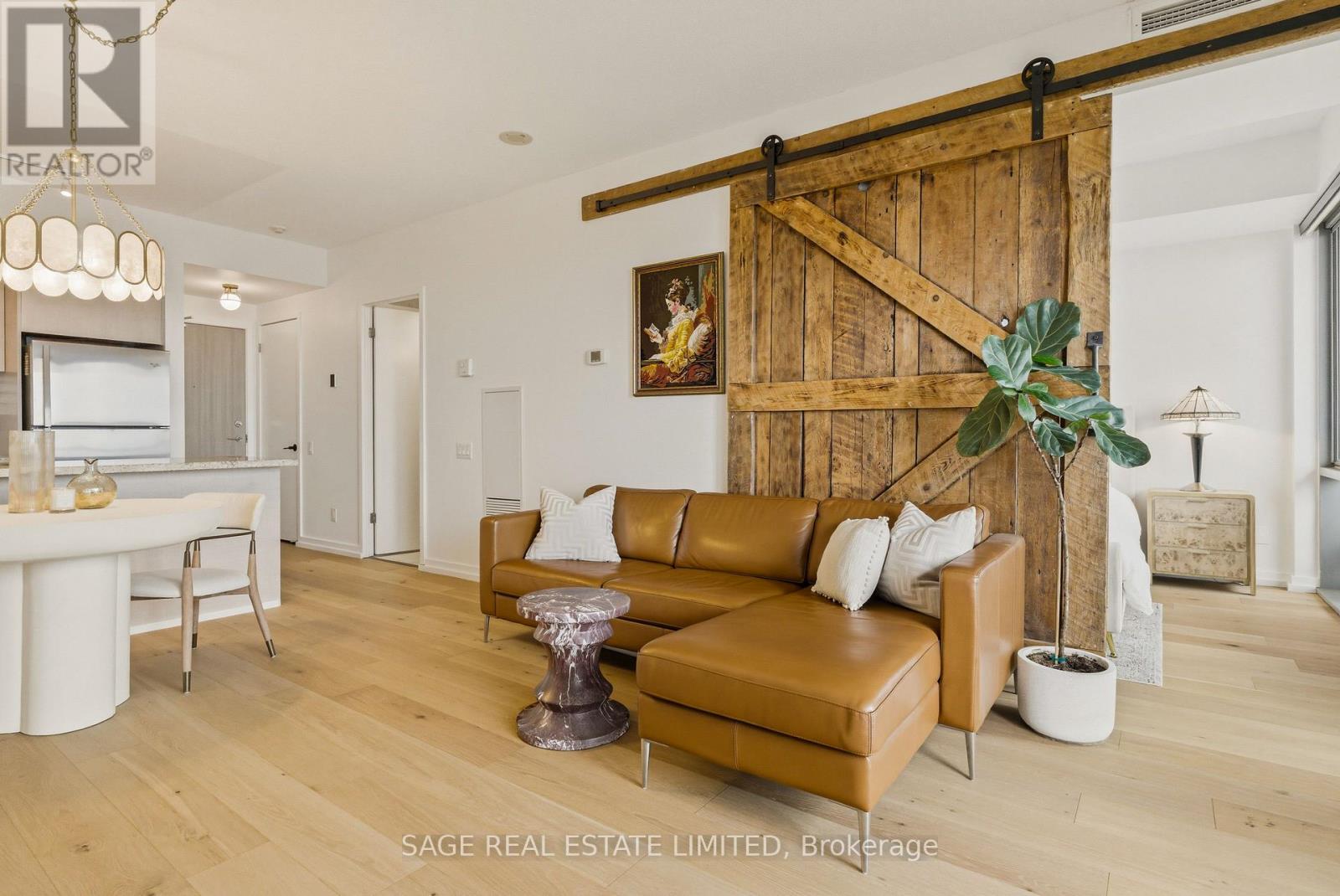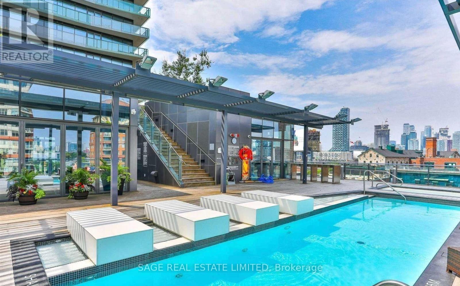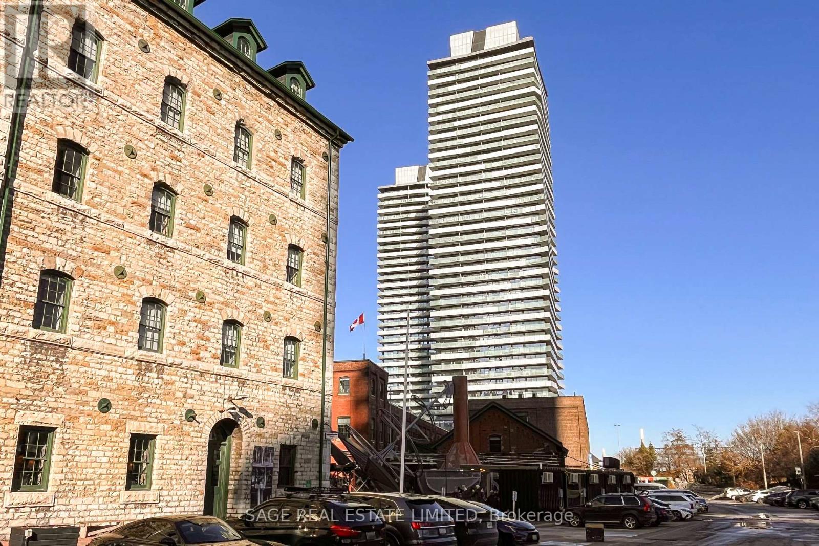 Fully renovated one-bedroom in the heart of the Distillery District-thoughtfully upgraded and immaculately maintained. Nearly 600 sq ft of bright, South East-facing living space finished with Coastal Retreat oak wide-plank engineered hardwood floors. Floor-to-ceiling windows flood the space with natural light and frame open views toward the lake, with a walkout to your private balcony.The kitchen features granite counters, stainless steel appliances, and a centre island. The bathroom has been finished with Corian double sinks, high-end faucets, a deep soaker tub, and a rain shower. A reclaimed wood barn door with black iron hardware connects the bedroom to the living area, offering flexibility without sacrificing the open feel. Steps to TTC, the DVP, and the Gardiner. A short walk to St. Lawrence Market and the Financial District. 24/7 concierge and full building amenities included. One parking spot included. (id:50787)