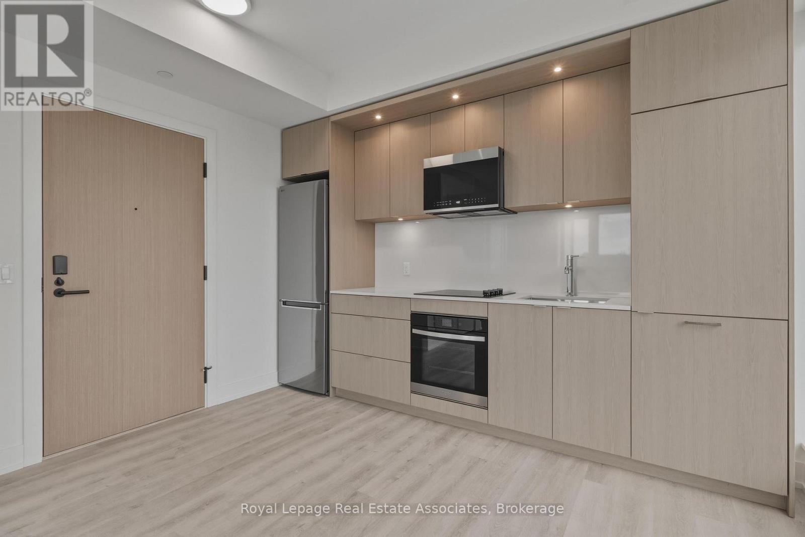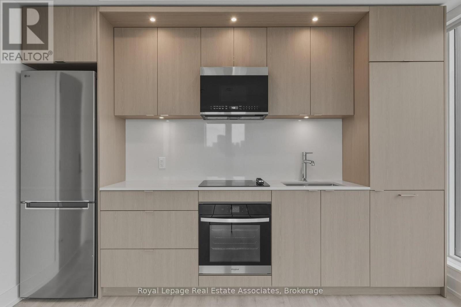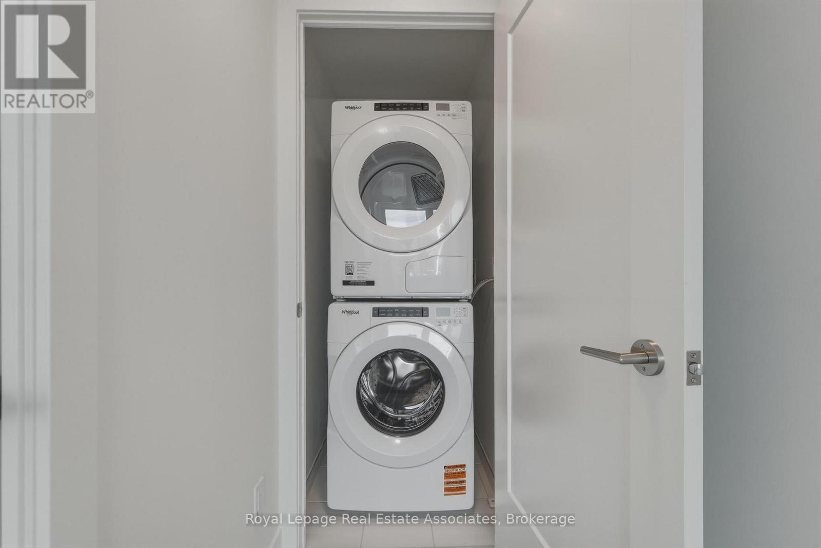 Welcome to Westerly 1, where contemporary design meets elevated urban living in the heart of Islington-City Centre West. This 1-bedroom suite offers a bright, carpet-free layout with modern finishes throughout, thoughtfully designed for comfortable everyday living. The modern kitchen features built-in stainless steel appliances and sleek cabinetry, flowing seamlessly into the combined dining and living area. Expansive floor-to-ceiling windows wrap around the curved façade, filling the space with natural light, while a walk-out leads to a private balcony, extending the living area outdoors. The bedroom offers a well-proportioned layout with a large closet and floor-to-ceiling window, creating a bright and comfortable retreat. A contemporary 4-piece bathroom is finished with clean tilework and modern fixtures. In-suite laundry is conveniently located within the suite for added ease. Residents enjoy access to amenities including a fitness centre, guest suites, party and meeting rooms, and concierge service. Ideally located steps from transit, parks, shopping, and dining, this residence offers comfortable, well-connected living in a desirable Etobicoke community. (id:50787)