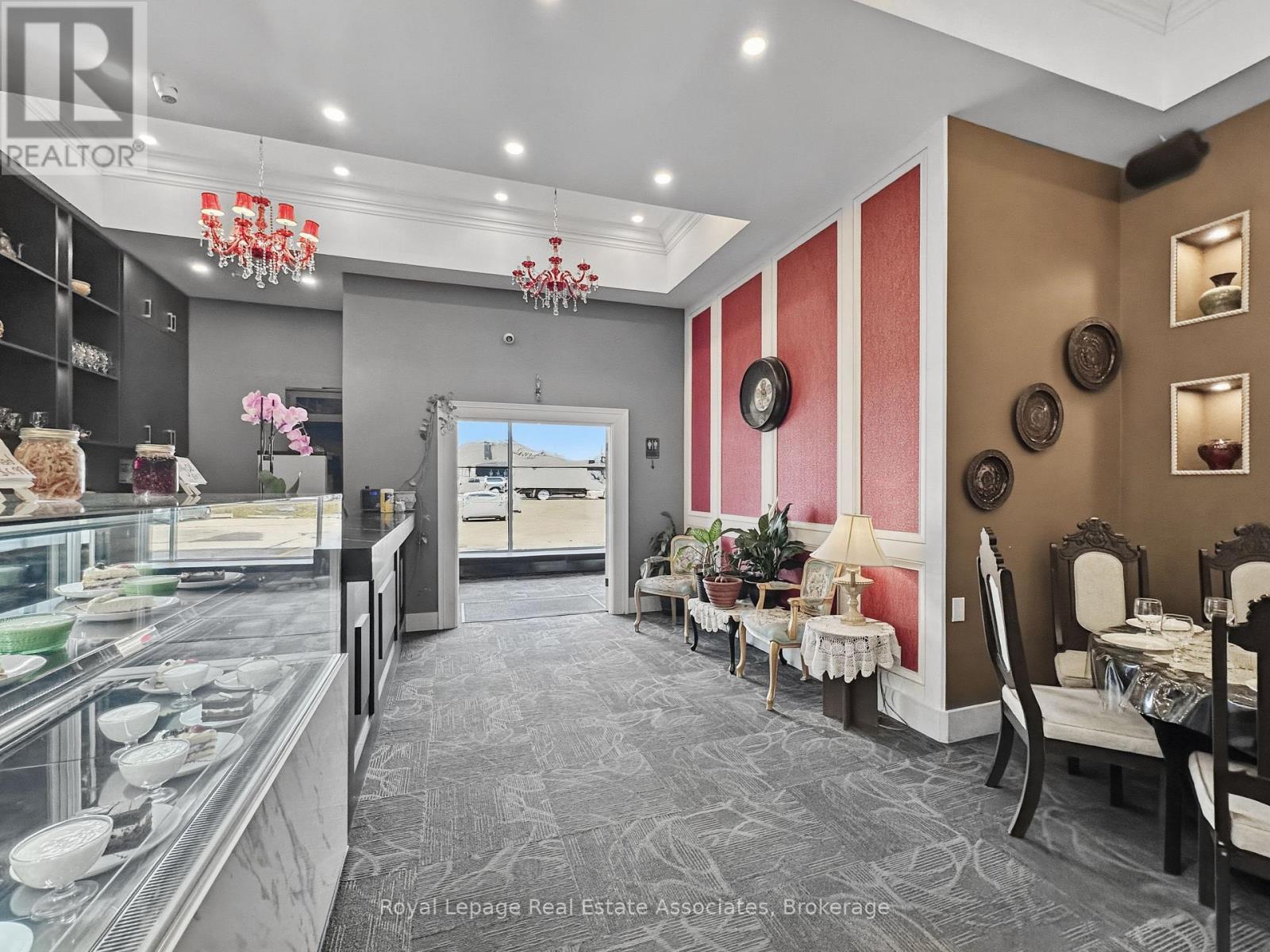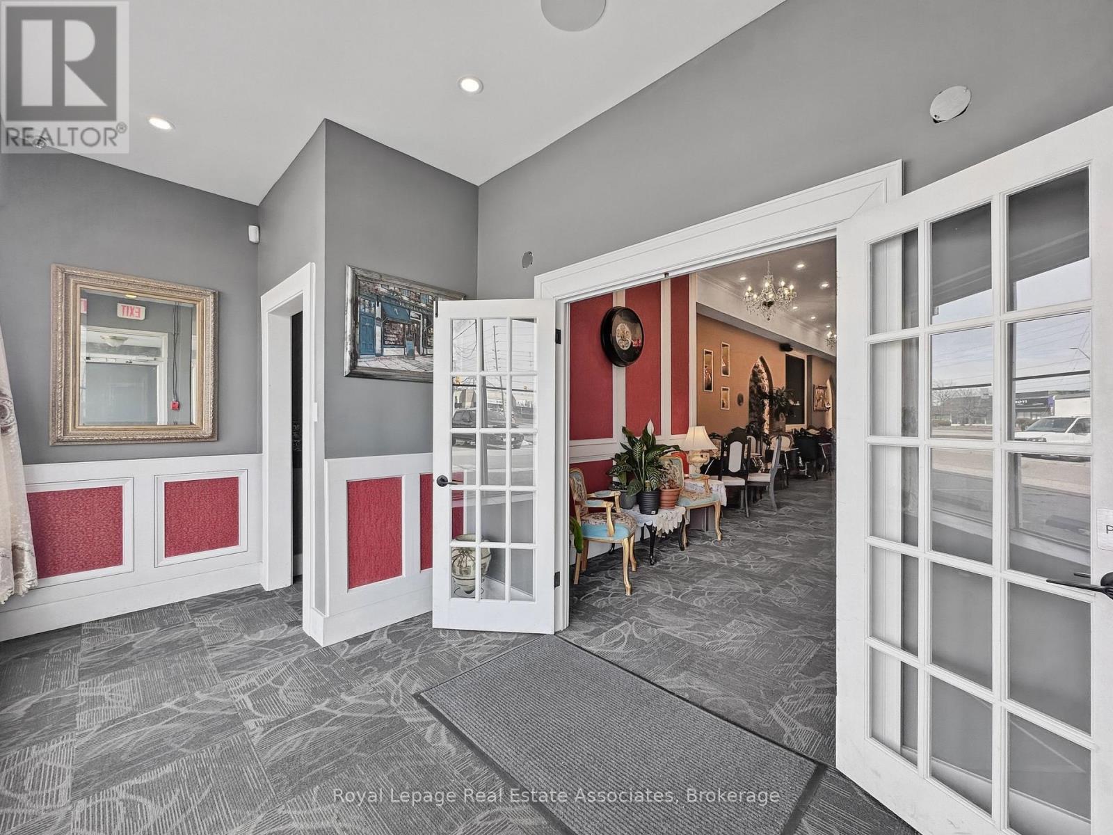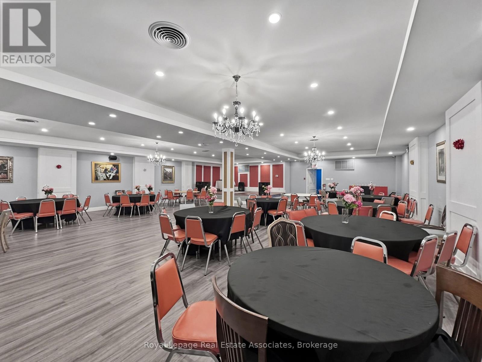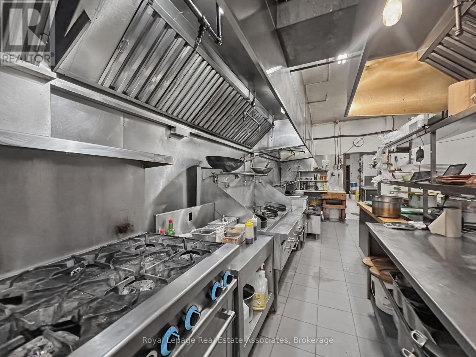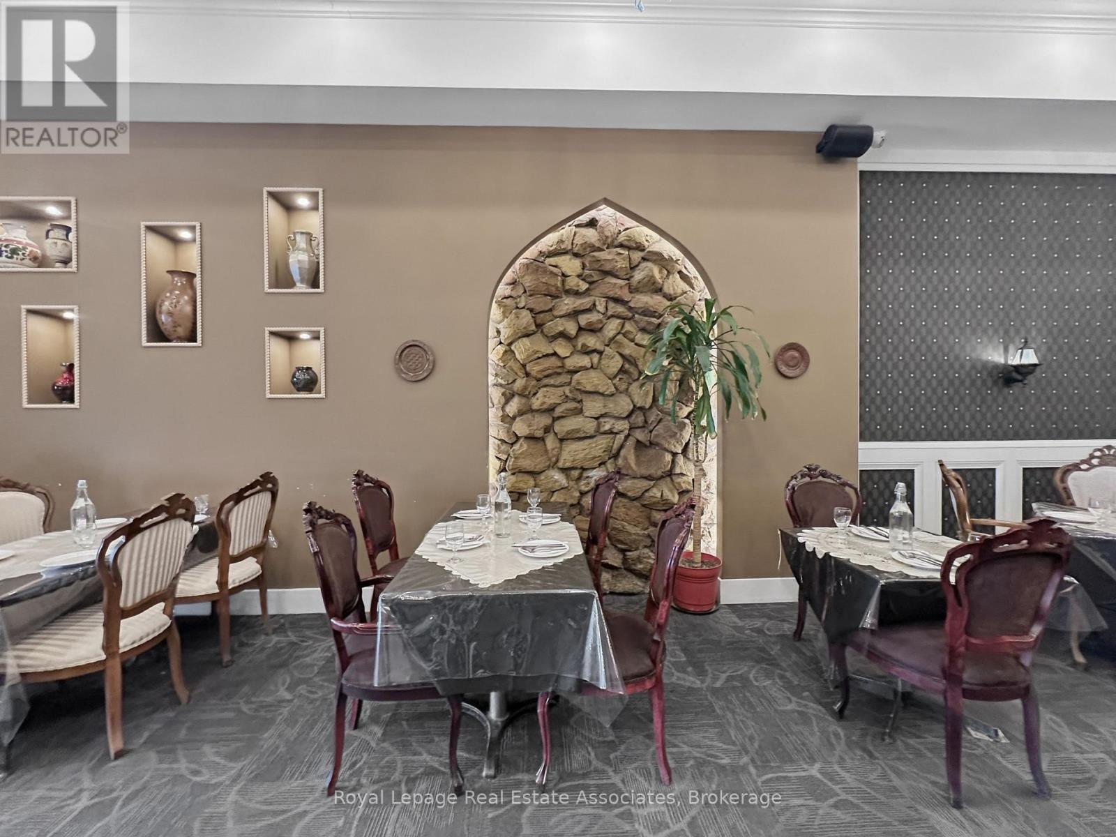 Exceptional opportunity to acquire a beautifully renovated turnkey restaurant located at 1850 Dundas St E in Mississauga. This impressive establishment offers approximately 210 seats in total, featuring an upscale dining area on the upper level with over 90 seats, highlighted by high ceilings, elegant finishes, and custom fireplaces that create a warm and sophisticated atmosphere. The lower level features a spacious banquet hall with seating for approximately 120 guests, ideal for private events, celebrations, and large group dining.Strategically positioned directly on Dundas Street, the property benefits from excellent visibility and strong through traffic. Situated in a busy plaza with ample parking, with only two restaurants in the entire plaza, offering a unique advantage and strong customer draw.The restaurant features a generously sized kitchen suitable for high-volume operations and a variety of cuisines. LLBO license in place, providing an excellent opportunity to expand the dining and event experience.Current rent is $6,624 per month including TMI and tax. A fantastic opportunity for restaurateurs or investors seeking a fully built-out restaurant with banquet capacity in a prime Mississauga location. (id:50787)