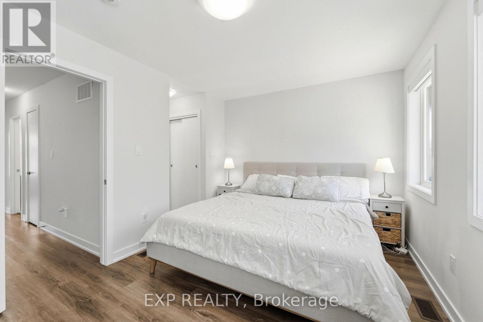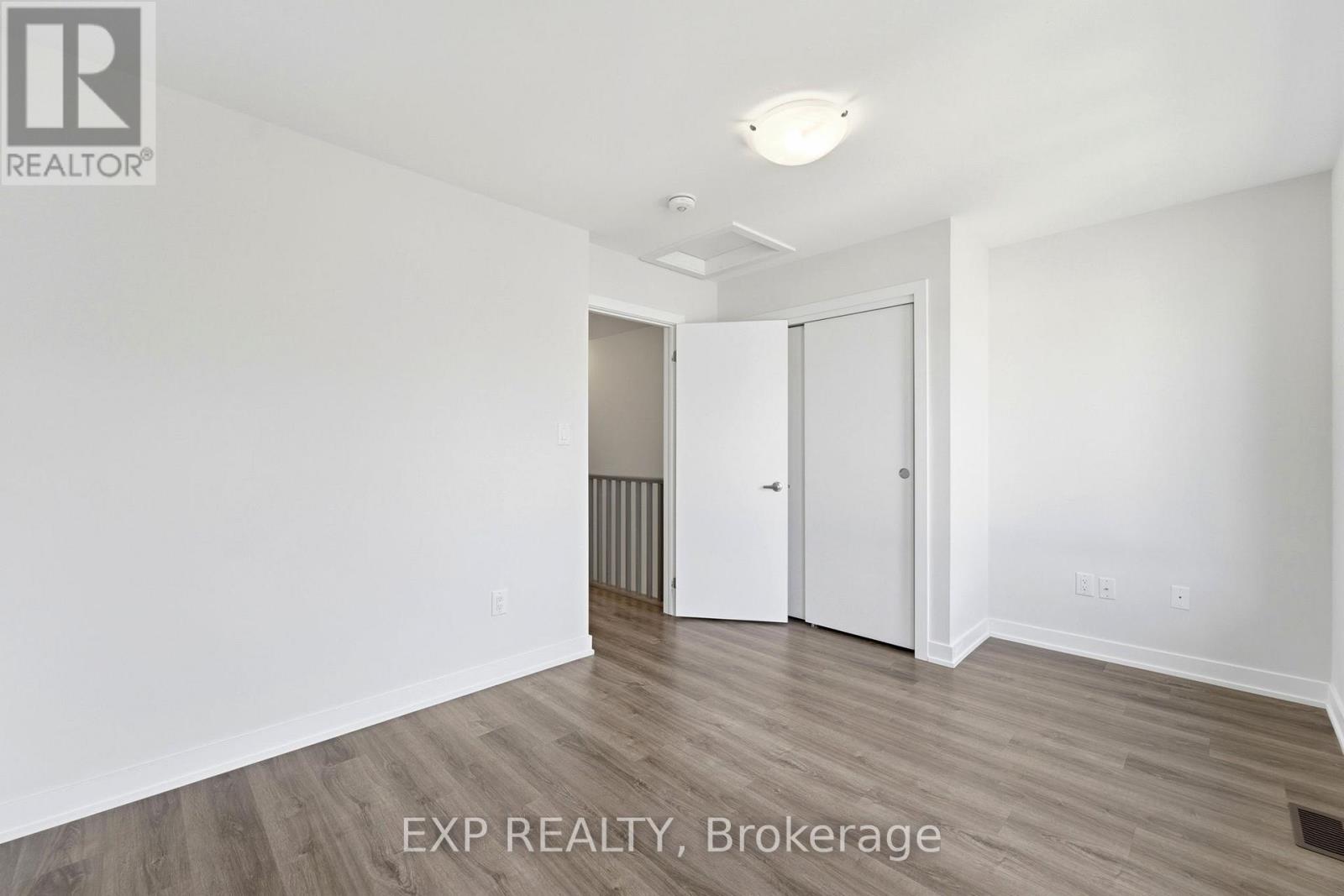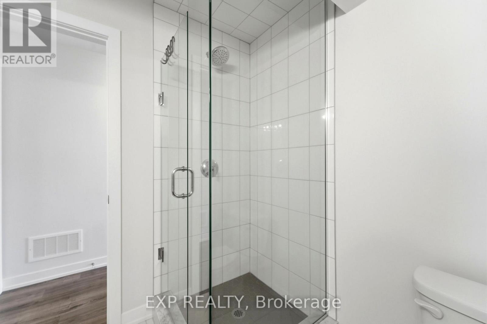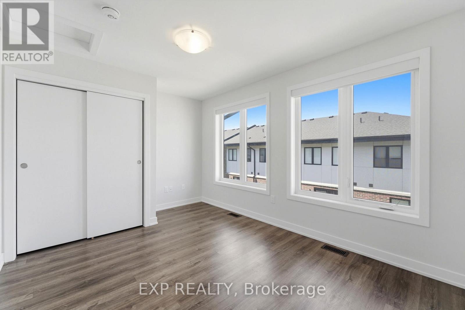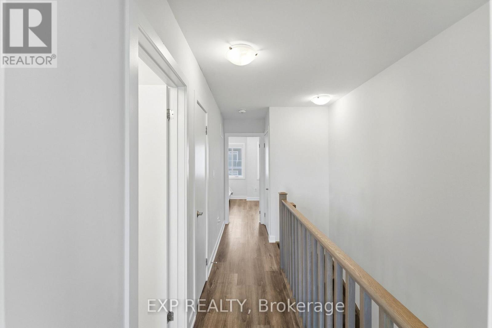 Modern 3-storey end-unit townhouse located in one of Ancaster's most desirable neighbourhoods, just minutes to Hwy 403, shopping, public transit, and all amenities. This bright, carpet-free home offers 3 bedrooms and 3 full bathrooms, including a primary bedroom featuring his and hers closets and a private ensuite, along with the convenience of bedroom-level laundry. The gourmet kitchen is equipped with quartz countertops, stainless steel appliances, a breakfast-bar island, and a spacious eat-in area. The open-concept living area is filled with natural light and features a walk-out access to a private balcony. The lower level provides exceptional flexibility and includes a 3-piece bathroom, making it ideal as a third bedroom, family room, home gym, or private office, with walk-out access to the yard. Additional features include 9-foot ceilings on the main level, an attached garage with inside entry and storage, ample visitor parking, and flexible possession. Move-in ready and perfect for a variety of lifestyles. (id:50787)
