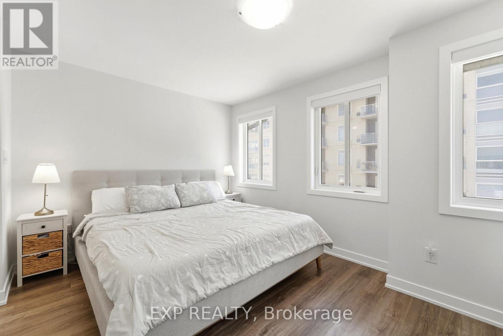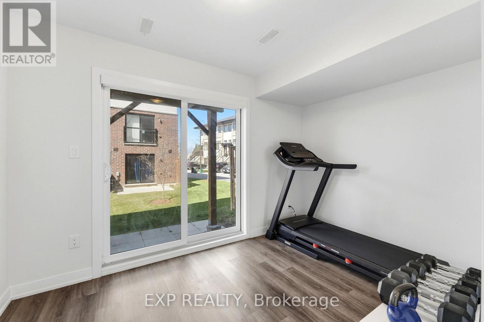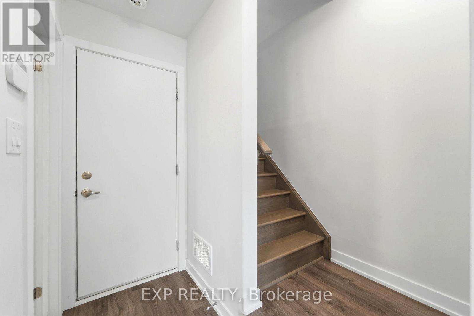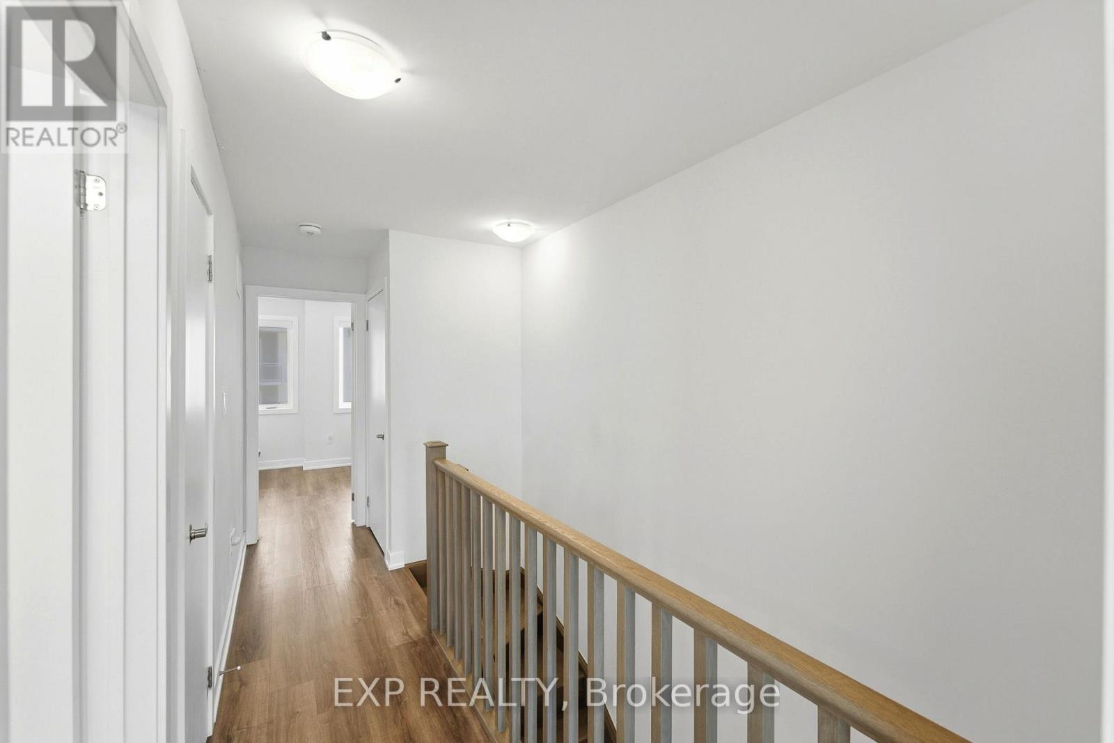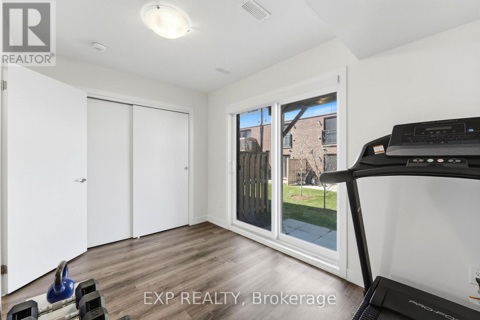 Modern 3-storey end-unit townhouse located in one of Ancaster's most desirable neighbourhoods, just minutes to Hwy 403, shopping, public transit, and all amenities. This bright, carpet-free home offers 3 bedrooms and 3 full bathrooms, including a primary bedroom featuring his and hers closets and a private ensuite, along with the convenience of bedroom-level laundry. The gourmet kitchen is equipped with quartz countertops, stainless steel appliances, a breakfast-bar island, and a spacious eat-in area. The open-concept living area is filled with natural light and features a walk-out access to a private balcony. The lower level provides exceptional flexibility and includes a 3-piece bathroom, making it ideal as a third bedroom, family room, home gym, or private office, with walk-out access to the yard. Additional features include 9-foot ceilings on the main level, an attached garage with inside entry and storage, ample visitor parking, and flexible possession. Move-in ready and perfect for a variety of lifestyles. (id:50787)
