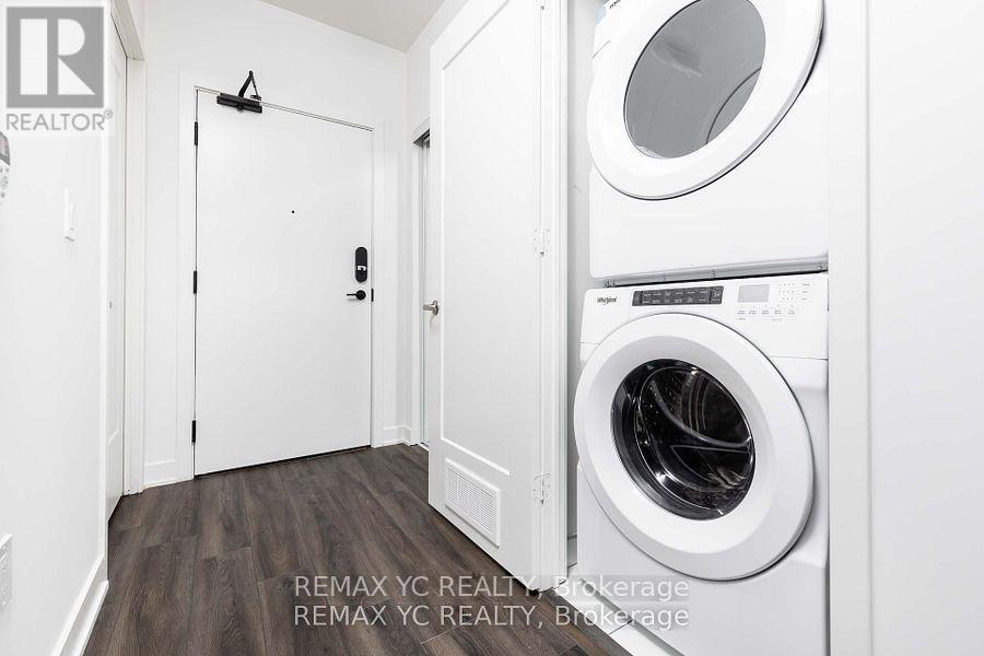 $445.19 MonthlyPresenting a suite located in one of Toronto's desirable, locally built neighborhoods. This contemporary suite features 9-foot ceilings and sleek laminate flooring throughout, creating an open and airy atmosphere. The well-designed layout includes a separate kitchen and living area, with the living room offering a walk-out to a private balcony, perfect for outdoor relaxation. The kitchen is equipped with built-in appliances and a stylish granite countertop, ideal for modern living. The spacious primary bedroom is highlighted by a large window and a generously sized closet. A versatile den, enclosed with a door, offers the flexibility to be used as a second bedroom or a home office. Every inch of this unit has been thoughtfully designed to maximize space, with no wasted corners or unused areas. Situated in a charming neighborhood, you're just steps away from St. Lawrence Market (with Phase 2 opening soon), grocery stores (No Frills), shops, restaurants, and the Distillery District. With quick access to the Downtown Core, DVP, and TTC, convenience is at your doorstep. This unit is truly move-in ready, offering an ideal blend of modern design and a prime location. (id:50787)