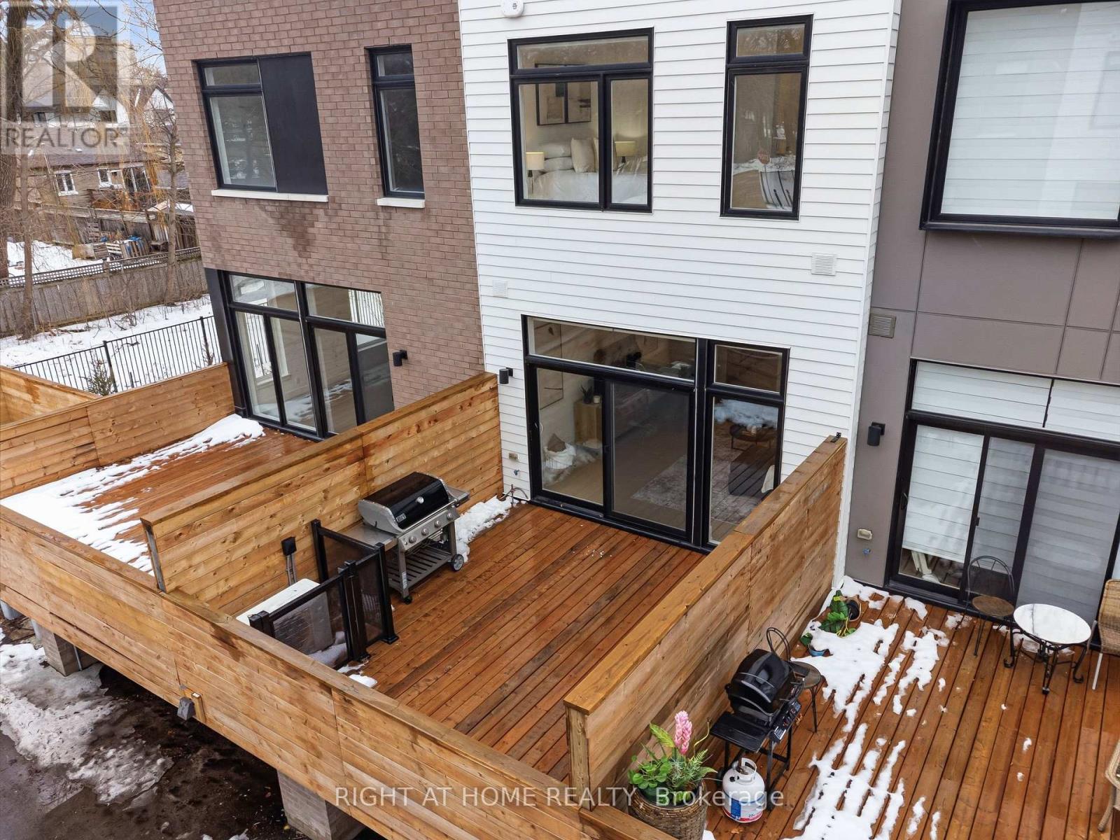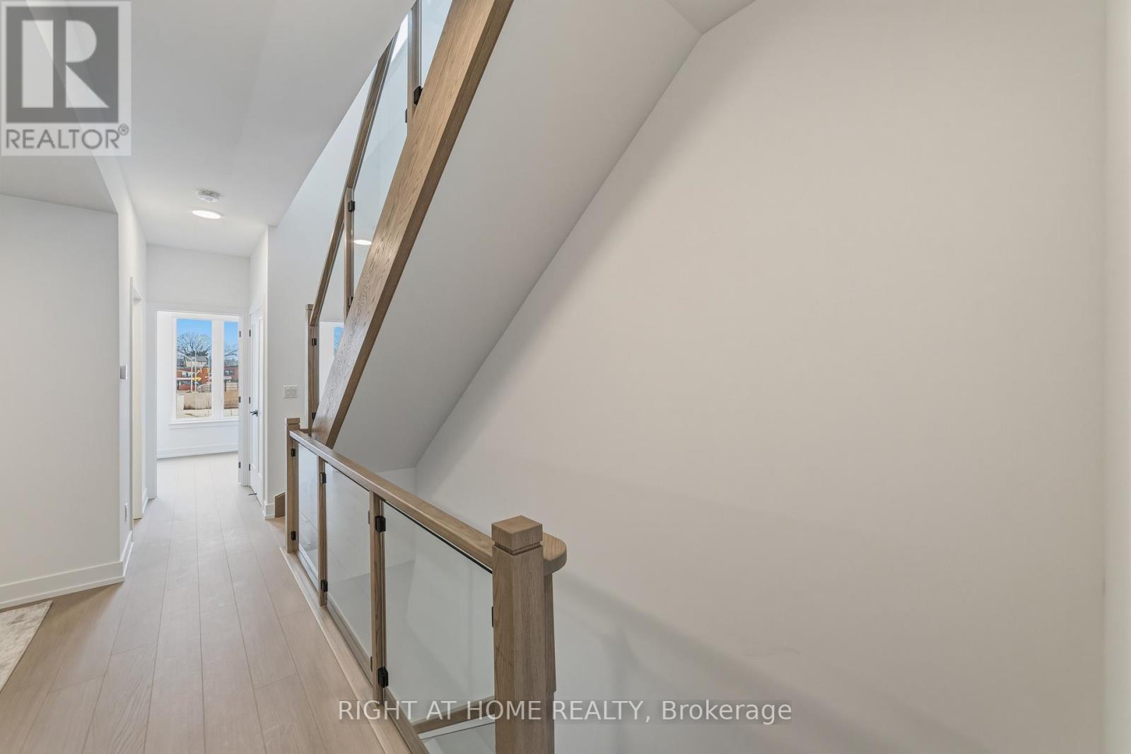 Stunning townhome located in the Brightwater Waterfront Community features a private walk-up and overlooks a large green space, offering enhanced privacy with no direct-facing neighbors. This thoughtfully designed residence showcases 10-ft ceilings on the main level and 9-ft ceilings on the second and third floors, oversized windows, and engineered hardwood flooring throughout, creating a bright and airy living environment. Gourmet kitchen combines style and functionality with premium integrated appliances, including a paneled fridge and dishwasher, a built-in wall oven, and a 5-burner gas cooktop. Quartz countertops with matching backsplash and a striking waterfall island anchor the space. Open-concept living and dining area transitions seamlessly to a spacious outdoor deck and expansive private terrace, perfect for entertaining or everyday enjoyment. Second floor offers two generously sized bedrooms, including one with its own ensuite, a full 4-piece main bath, convenient second-floor laundry. An additional den provides flexibility as a reading room or extra living space. Third floor offers a tranquil primary suite complete with a spa-inspired ensuite. A dedicated home office that opens directly onto a rooftop terrace, ideal space for working from home and enjoying quiet outdoor moments. 3 vehicles via a 2-car tandem garage plus driveway space. An opportunity to be part of the growing Brightwater Port Credit Waterfront Community, a multi-year master-planned neighbourhood featuring acres of open green space, multiple parks, pedestrian-friendly streets, and convenient on-site retail. Residents enjoy an exceptional lakeside lifestyle with walking distance to vibrant downtown Port Credit, waterfront trails, cafés, restaurants, Farm Boy, LCBO, boutique shops, and a resident shuttle to Port Credit GO Station for easy commuting. (id:50787)