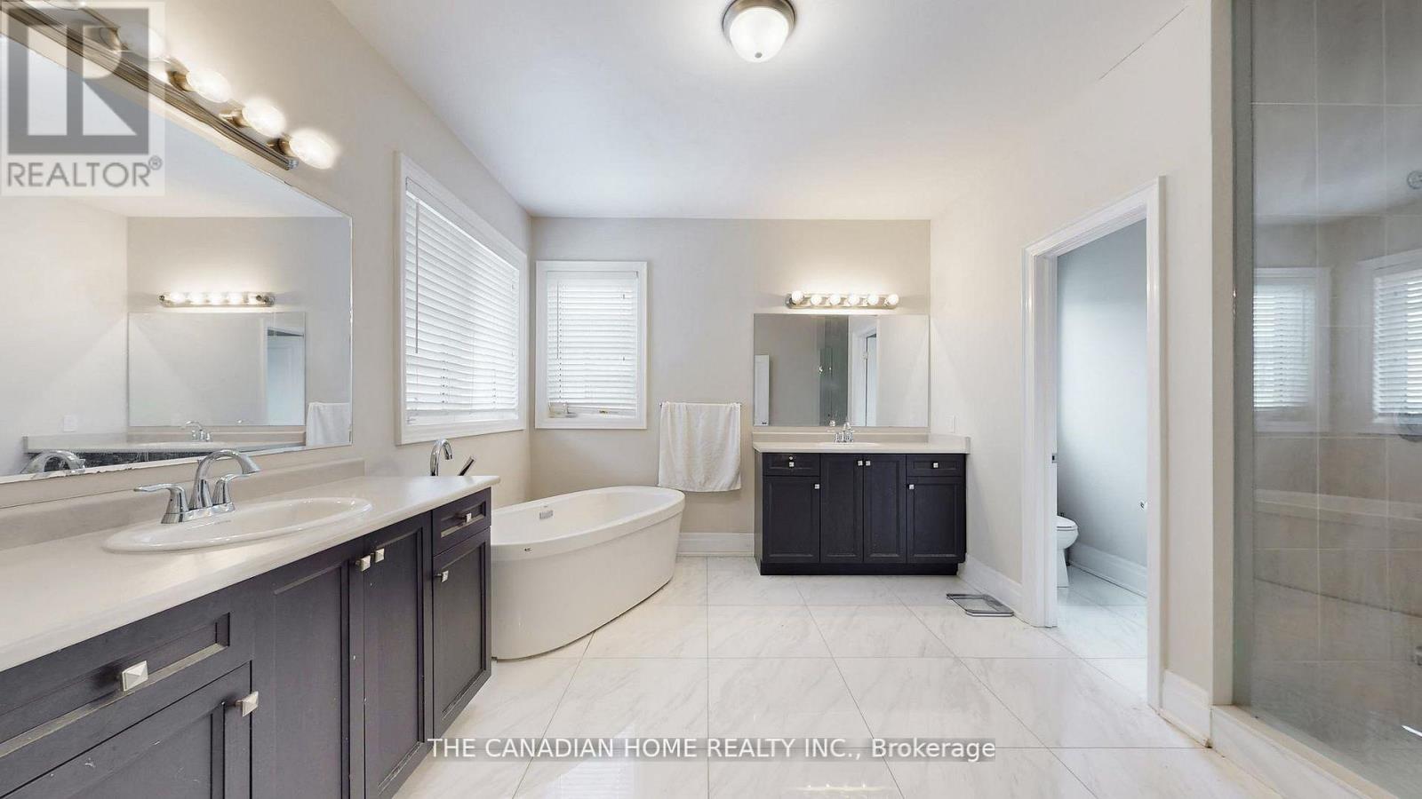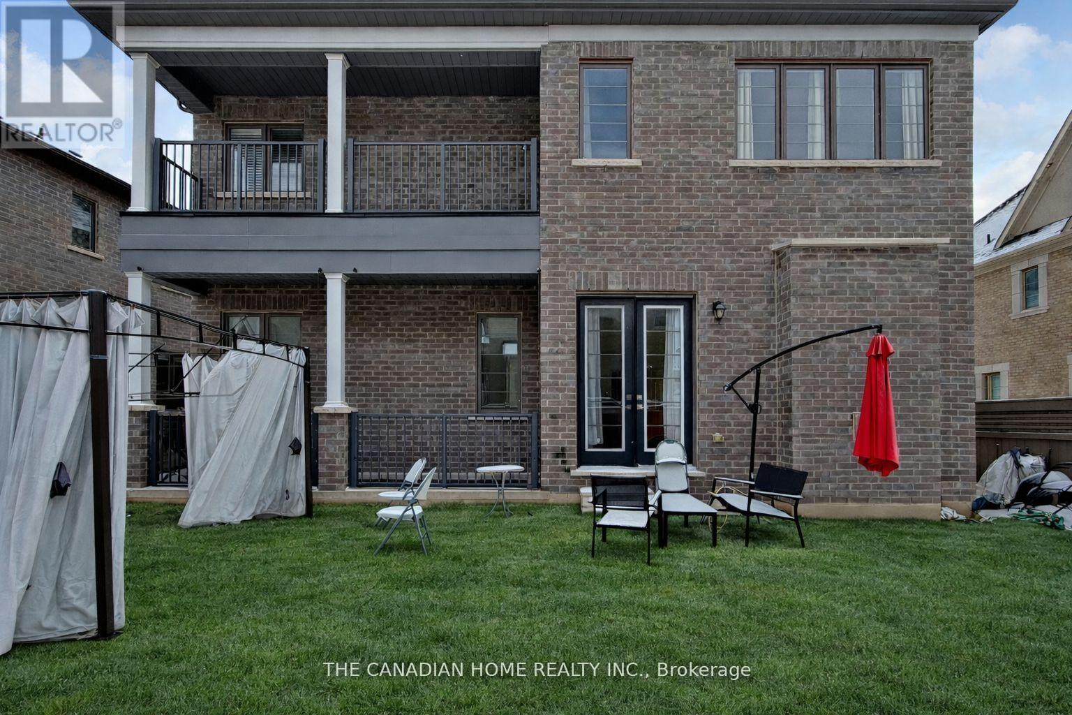 Welcome to this elite Brampton residence, where luxury meets long-term value against a serene pond-view backdrop. This architectural masterpiece features a refined brick and stone exterior, offering 5,080 sq. ft. of total living space, including 3,666 sq. ft. above grade. The main level impresses with soaring 10-foot ceilings, an 8-foot grand entrance, and rich hardwood flooring that leads to a chef-inspired kitchen outfitted with quartz countertops and custom cabinetry. Uniquely designed for multi-generational living or high-end hosting, the main floor includes a rear master suite with its own ensuite. The elegance continues on the upper level via oak stairs, where 9-foot ceilings frame four "ginormous" bedrooms, each boasting its own private ensuite. Two of these rooms feature private balconies-one overlooking the tranquil pond-alongside a highly convenient upper-level laundry room. The functionality extends to the 9-foot ceiling basement, which serves as a significant mortgage helper through two self-contained rental units (a one-bedroom studio and a separate two-bedroom suite) already generating consistent income. Outdoors, the expansive backyard provides the perfect setting for upscale entertainment, while the location offers unparalleled convenience. Situated just minutes from Highways 407 and 401, you are a mere 400 meters from major retailers like Walmart and Home Depot, top-tier schools, and essential services, with nature trails and parks just 50 meters from your doorstep. (id:50787)
