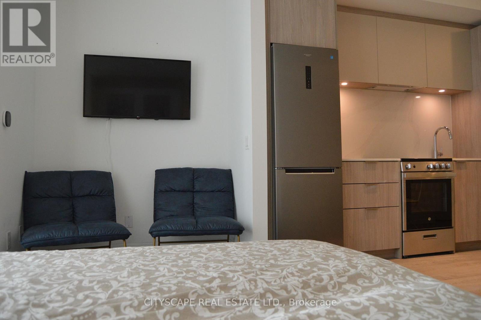 Bright & Modern Open Concept Bachelor Unit Floor To Ceiling Window, Murphy Bed Attached, with a private locker for added convenience. Bright open-concept with walk-out to the balcony. Located At One Of Toronto's Finest Condominium Residents On The Waterfront, Plenty Of Natural Sunlight .Modern Kitchen W/ S/S Appliances, Built In Dishwasher, Quartz Counters, Custom Backsplash. The Front Door Of This Gorgeous Home Is A one-minute Walk To The Lake! Perfect For a single professional. *Parking May Be Available To Rent Within Building* enjoy a world-class amenities, including a fully equipped fitness Centre, outdoor pool, yoga studio, party room, rooftop terrace with BBQs, and 24-hour concierge services. The building is also energy-efficient and well-managed, ensuring comfort and peace of mind. Located in the heart of Humber Bay Shores, this condo places you steps away from waterfront trails, parks, boutique shops, trendy cafes, and fine dining. access to the Gardiner Expressway easy commuting to downtown Toronto or the Airport. (id:50787)