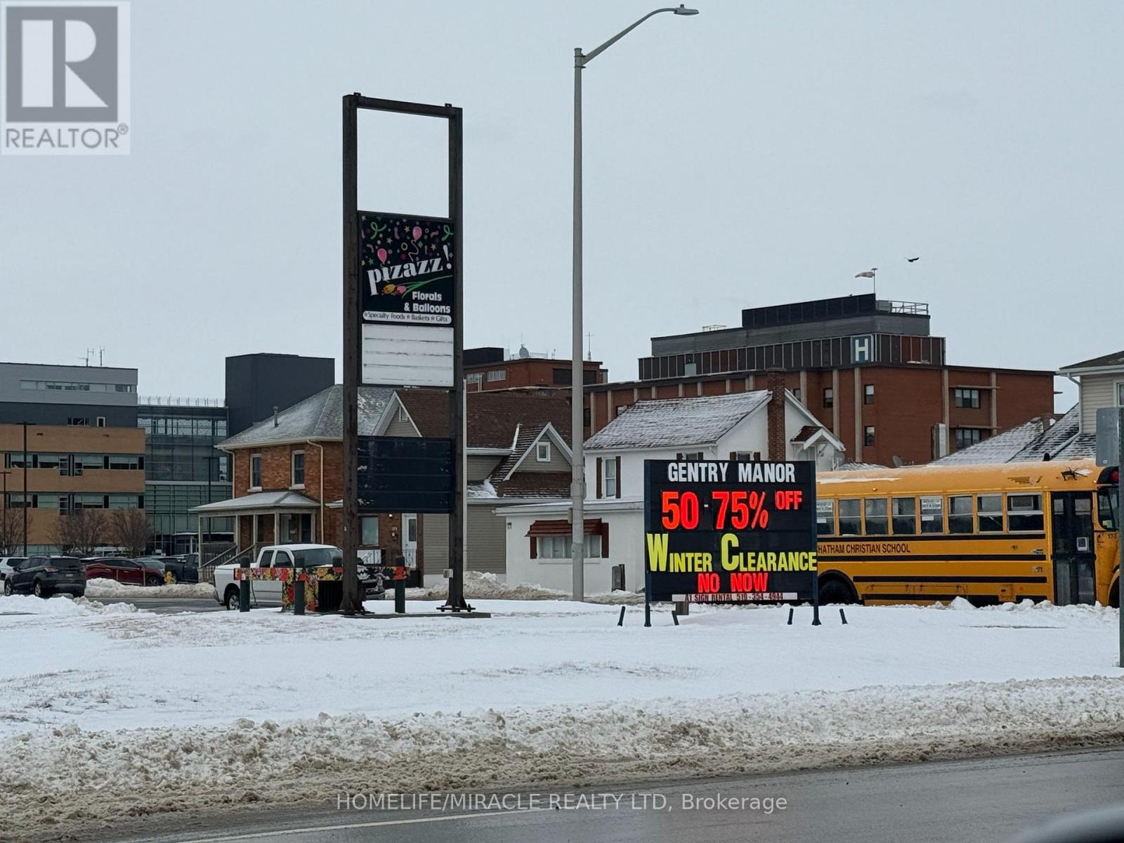 Rare multi-use corner triplex property in a high-traffic, highly visible location near downtown Chatham Kent Health Alliance Hospital. This property offers two large driveways, approximately 9 parking spaces, multiple income streams, and excellent flexibility for investors, owner-users, or buyers looking for residential and commercial potential. The property includes a one-bedroom corner unit, a one-bedroom upstairs apartment, a commercial unit, a large unfinished basement, and outdoor storage sheds. Current income includes the commercial unit rented for $1,000/month, the upstairs unit rented for $1,425/month, and the fully furnished Airbnb unit generating income potential of up to $1,500-$2,000/month. The Airbnb setup can potentially be taken over as-is, making this a strong turnkey income opportunity.The commercial space is suitable for office use, professional services, retail/service business, beauty/personal service, consulting, or other small business use. The large unfinished basement offers value-add potential for storage, future build-out, workspace, or additional functional space.Approximately $30,000 spent on recent upgrades, including new flooring in the commercial unit, plus an upgraded bathroom in the corner unit. With strong parking, corner exposure, existing income, and future upside, this is a rare opportunity to generate income today while holding a property with long-term potential, including possible affordable rental housing or future redevelopment plans, subject to approvals. (id:50787)