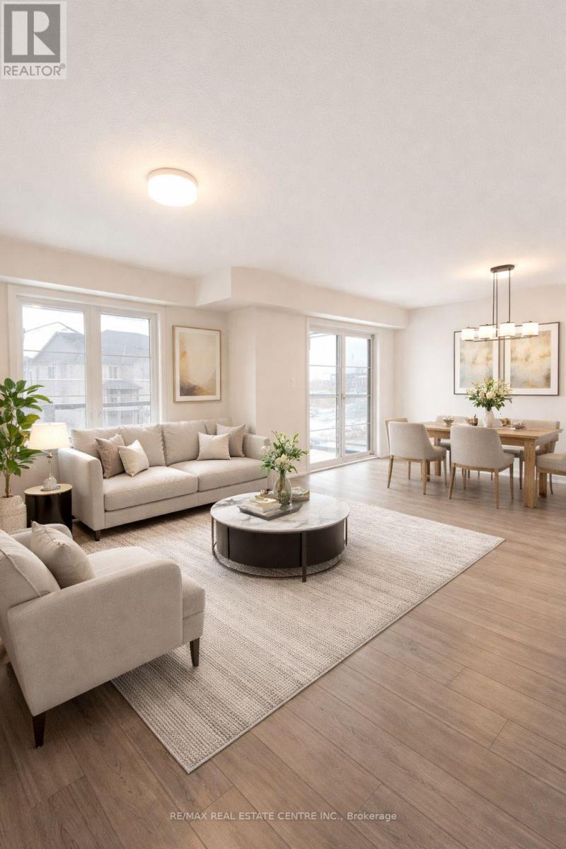 End Unit! 3-Storey, 2+Den, 1.5 Bath Private Townhome With Garage And Parking For 2 Vehicles In West Oak Trails. Only 2 Years New And Meticulously Maintained Offering 1,430 Sq Ft With Functional Floor Plan, Two Balconies, Ample Living Space And Plenty Of Storage Throughout. Direct Access To The Garage Leading To Main Floor Den, Perfect For A Home Office Or Bonus Rec Room. Open Concept Living And Dining Area With Walk-Out To A Spacious Terrace. Full Kitchen Features A Breakfast Bar, Stainless Steel Appliances, And Plenty Of Cabinet Space. Upper Level Boasts Two Spacious Bedrooms, Ensuite Laundry And Large Linen Closet. Primary Bedroom Includes A Walk-In Closet And Walk-Out To 2nd Balcony. Located In A Well-Managed Condo Community In The Heart Of South Kitchener, Just Minutes To Schools, Parks, Longo's, Shoppers Drug Mart, Shops, And All Amenities, Easy Access To Hwy 401. (id:50787)