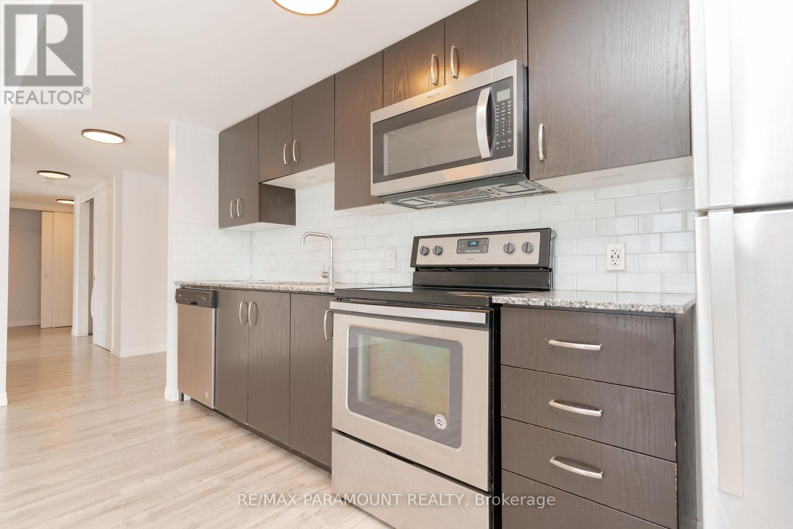 his Absolutely Beautiful Upgraded 3Bed, 2Bath Corner Unit Condo Is Sure To Impress! Sun-Filled Open Concept Floor Plan W/ laminate throughout. Modern Spacious Kitchen W'custom Pantry, Quartz Counters & S/S Appliances. Generous Sized Main Living Space Offers W/O To Large Wrap Around balcony. Master Retreat Boasts Double Closet & Modern 3Pc Ensuite. Spacious 4Pc Bath W'quartz Counter & Shower/Tub Combo. Fantastic Amenities: Gym, Party Room & Kids Park. 1 Locker & 1 Parking. (id:50787)