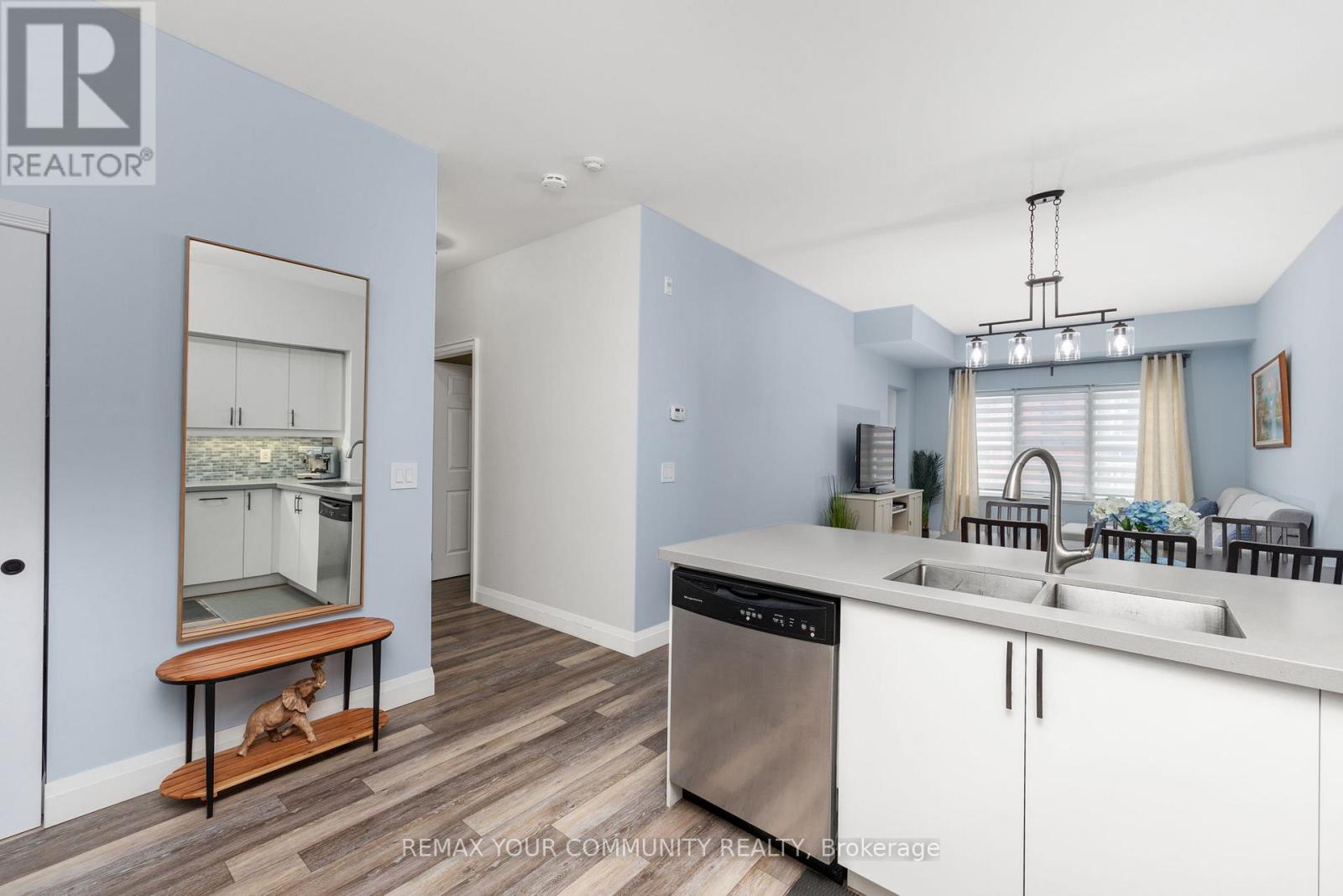Welcome to this beautifully maintained 970 sq.ft, 2-bedroom, 2-bathroom suite in a boutique low-rise condominium in the heart of Maple. Located on the second floor, this bright and functional unit features an open-concept kitchen and living space complete with a convenient breakfast bar, perfect for everyday living and entertaining. Offering nearly 1,000 sq.ft of well-designed living space, the thoughtful layout includes spacious bedrooms, including a primary suite with ensuite bath, along with the rare benefit of two owned parking spaces and a private locker for added storage and convenience. Situated in an intimate 30-unit building, residents enjoy quiet condo living with premium amenities including a fitness room, party room, rooftop terrace, and visitor parking. Ideally located close to transit, parks, schools, shopping, library and major highways, this home offers the perfect balance of comfort, lifestyle, and accessibility. A fantastic opportunity for end-users, downsizers, or investors alike. (id:50787)
