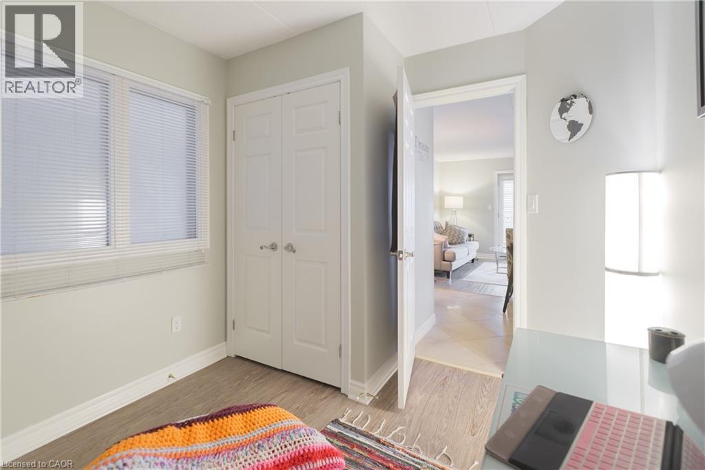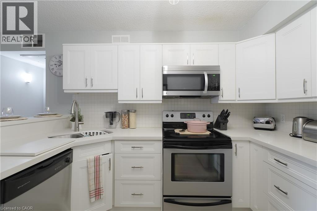 $609.84 MonthlyBeautifully updated 2-bedroom condo in the heart of Burlington's Headon Forest. Located within the sought-after Forest Chase community, Suite 218 is a stylish 719 sqft condo unit offering modern finishes, an open-concept layout, and a balcony. The renovated kitchen features white cabinetry with soft-closing drawers, quartz countertops, stainless steel appliances, tile backsplash, and breakfast bar with seating for three. The sun-filled living and dining area flows seamlessly from the kitchen with French doors to your personal balcony — perfect for morning coffee or unwinding after work. The spacious primary bedroom offers plenty of room as well as a large mirrored closet. The second bedroom is ideal for a home office, nursery, or guest room. The updated 4-piece bathroom features a quartz vanity, modern fixtures, and a tub/shower combo. In-suite laundry, generous closet space, and durable vinyl plank flooring throughout make this home as practical as it is pretty. Tasteful neutral palette and move-in ready — just unpack and enjoy! Conveniently located close to schools, parks, shopping, transit, and quick highway access. A perfect fit for first-time buyers, young families, downsizers, or savvy investors. (id:50787)