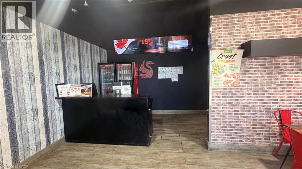 RED SWAN PIZZA Business in Brantford is For Sale. Located at the intersection of King George Rd/Dunsdon StSurrounded by Fully Residential Neighbourhood, Close to Schools, Highway, Offices, Banks, Major Big Box Store and Much More. Business with so much opportunity to grow the business even more. Rent: $3450/m including TMI & HST, Lease Term: Existing till 2040 + Option to renew, Royalty: 3.5%. (id:50787)