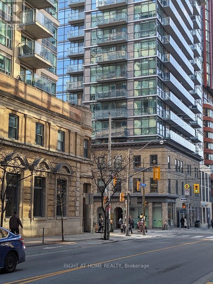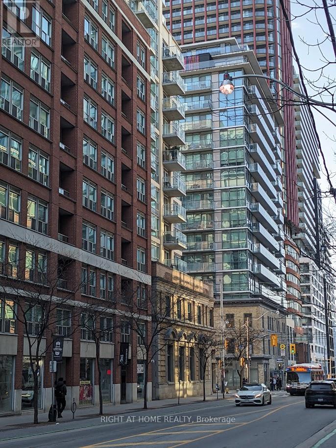 Modern junior 1 bedroom condo offering approximately 415 sq ft of thoughtfully designed living space at King+ Condos in the heart of downtown Toronto. This bright, open-concept suite maximizes every inch with a smart, functional layout that seamlessly blends living, dining, and kitchen areas-perfect for urban living. Featuring sleek laminate flooring, contemporary finishes, and a modern kitchen complete with integrated appliances and a space-saving island, the unit is both stylish and efficient. The well-defined sleeping area offers an airy feel of the space. Large windows invite natural light, enhancing the clean, modern aesthetic. Located in the vibrant St. Lawrence neighbourhood, residents enjoy unbeatable access to transit, shops, restaurants, and iconic destinations like St. Lawrence Market and the Distillery District-placing the best of the city just steps from your door. (id:50787)