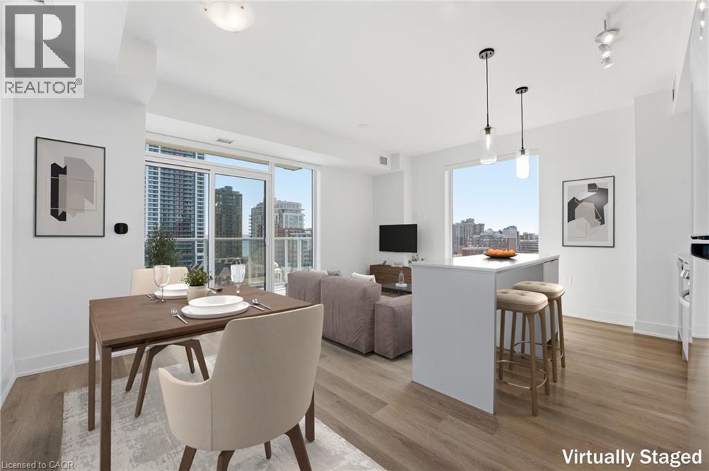 $835.61 MonthlyWelcome to 2088 James Street. The brand new Martha James Condominium by Mattamy Homes where modern design meets an unbeatable Burlington lifestyle. Perched on the 9th floor, this bright and spacious 2 bed, 2 bath, plus den suite offers 987 sq ft of thoughtfully designed living space. Enjoy a sleek, contemporary kitchen complete with stylish finishes, perfect for both living and entertaining. The open-concept layout is flooded with natural light thanks to its desirable south facing exposure, showcasing stunning lake views. The versatile den provides the ideal space for a home office or reading nook, while the in-suite laundry adds everyday convenience. This unit also includes an oversized parking space paired with a storage locker located directly beside it exceptionally convenient and close to both the stairs and elevator. Residents are welcomed by a stunning lobby with concierge service, and have access to premium amenities including a fully equipped gym with yoga studio, an elegant party room for hosting gatherings, roof top patio with BBQs and stunning views, as well as dog washing station. Situated just steps from downtown Burlington, this unit is within walking distance to the lake, vibrant restaurants, boutique shopping, and more. This is a rare opportunity to enjoy a sophisticated, low-maintenance lifestyle in one of the city’s most sought-after locations. A true elevated condo living experience. (id:50787)
