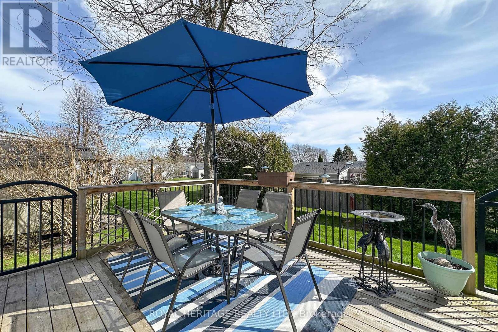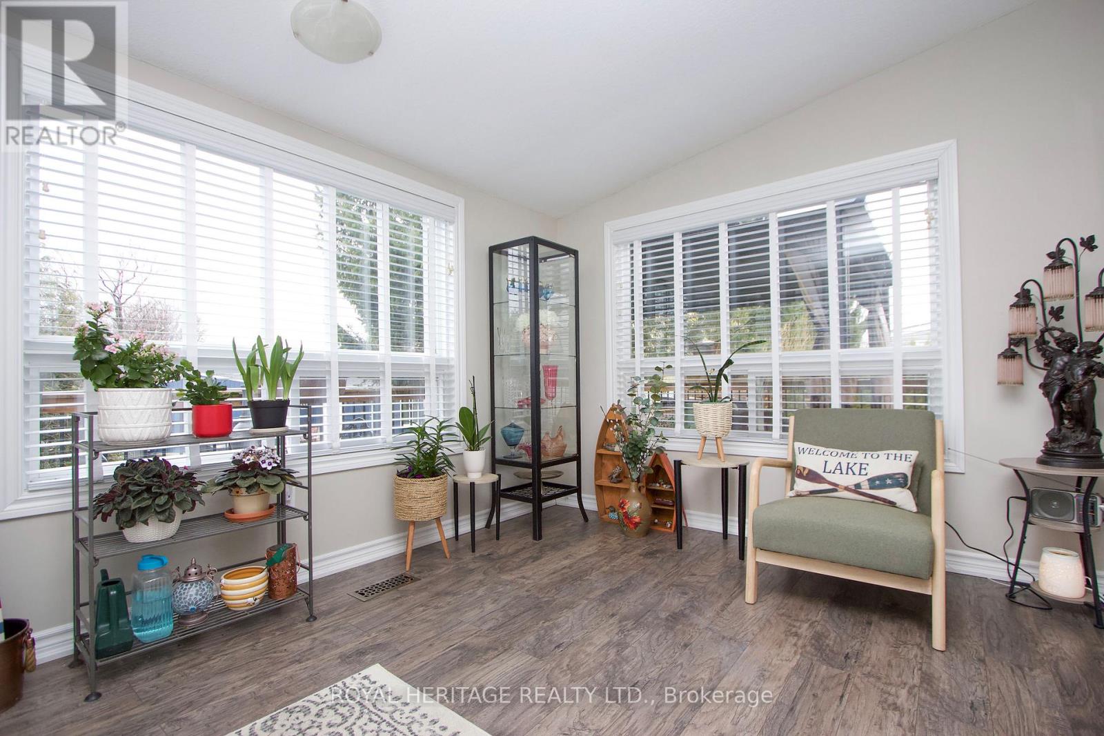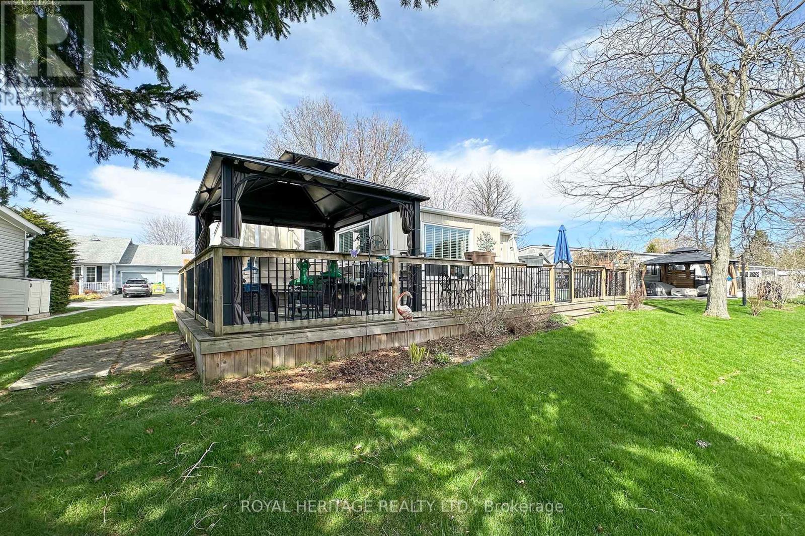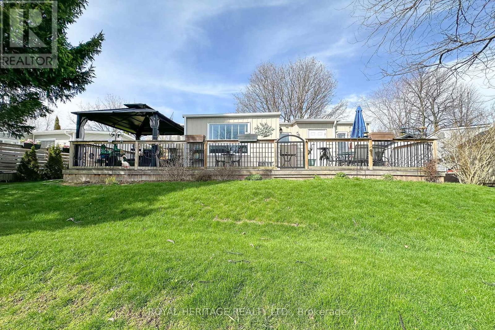 Welcome to 209 Wilmot Trail- A charming bungalow nestled in the highly sought-after adult lifestyle community of Wilmot Creek, just steps from the shores of Lake Ontario. This beautifully maintained 2-bdrm, 1-bath home is warm and inviting and ready for you to move right in. The home firsts greets you with an interlock patio and walkway. Once through the front doors, you'll notice the California knock down ceiling treatments, pot lights and crown molding. Laminate throughout means carpet free. Kitchen complete with Stainless Steel Appliances, ceramic backsplash, pot lights, and side door access to the deck. A bonus family room allows for extra space and provides a walkout to a lovely spacious deck complete with a curtained gazebo. The perfect place to cozy up with your morning coffee, or evening glass of wine. Perennial gardens complete the back yard. Extras include large ceramic walk in shower, Shed and 2 storage bins, Golf cart pad, hard line for a gas bbq. Home in on Leased Land - Monthly Maintenance Fee Includes the use of the clubhouse and all facilities including 9 Hole Golf Course, 2 Salt Water Heated Pools, Gym, Sauna, Hot Tub, Billiard Tables, Pickleball /Tennis Courts, Waterfront walking trails, and much more. Embrace the lifestyle, what are you waiting for? (id:50787)