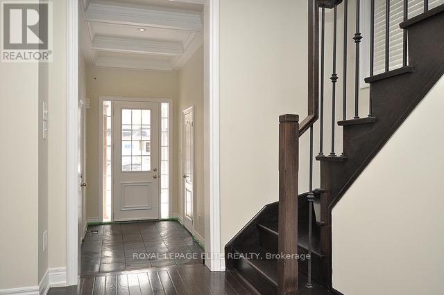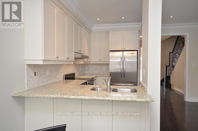 Executive End-Unit Linked Only at the Garage - Upgraded Top-to-Bottom! Welcome to 2092 Fiddlers Way. This stunning, manor-inspired end-unit townhome offers over 2,100 sq. ft. of total living space in one of Oakville's most prestigious family communities. Rarely offered and uniquely designed, this residence is linked only at the garage, providing the enhanced privacy, quiet, and lifestyle of a semi-detached home. The Main Level: Step into a bright and spacious open-concept floor plan characterized by 9ft ceilings, rich hardwood flooring, and elegant crown moulding. The gourmet chef's kitchen is an entertainer's dream, featuring premium stainless steel appliances, granite countertops, a custom marble backsplash, and a large breakfast bar. The space flows seamlessly into sun-filled living and dining areas, complete with oversized windows and a walk-out to the private backyard deck. Upper-Level Sanctuary: The second floor features a spacious primary retreat with a large walk-in closet and a spa- inspired 4-piece ensuite. Two additional generously sized bedrooms, a stylish full bathroom, and a highly convenient upper-level laundry room complete this level, ensuring a perfect layout for modern families. Versatile Lower Level: The newly professionally finished basement adds incredible versatility to the home. Whether you need a high-end home office, a private gym, or a media room, this space delivers. Complete with a rare full 4th bathroom for added convenience and guest comfort. Mechanical & Exterior Excellence: Enjoy total peace of mind with significant updates, including a newer furnace and hot water tank. This "turn-key" property also features a built-in sprinkler system, central vacuum, an attached garage with internal access, and a second parking spot on the driveway. The Location: Perfectly situated just steps from top-rated schools, including Emily Carr Elementary and Garth Webb Secondary and minutes from the Oakville Trafalgar Memorial Hospital. (id:50787)