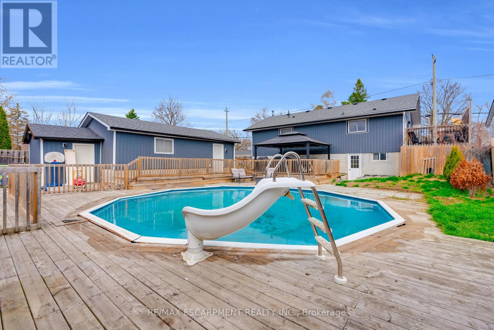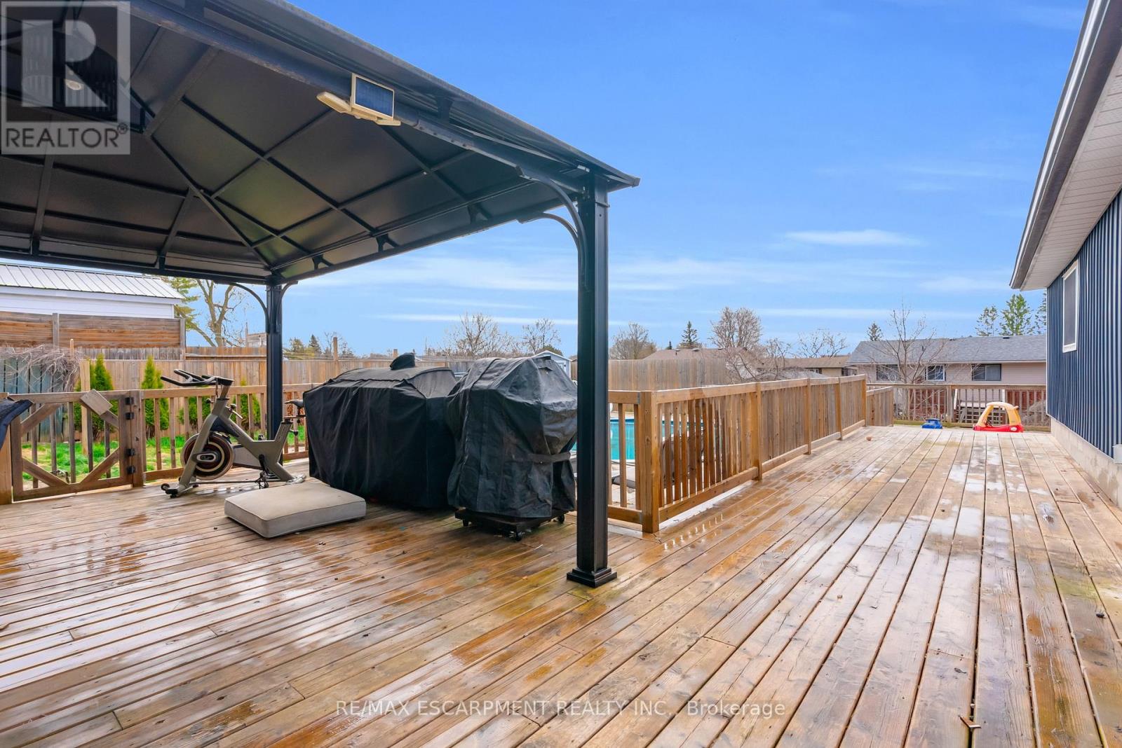 Spacious bungalow offering approximately 1,778 sqft of total finished living space, set on an extra-deep, fully fenced lot designed for outdoor enjoyment. The backyard is perfect for entertaining, featuring multiple decks, an above-ground pool, and a children's play structure-plenty of room for family and friends. The main level showcases an open-concept layout with a large kitchen complete with stainless steel appliances, gas double oven range, room for a centre island and pot lights throughout. A garden door leads to a side deck-ideal for morning coffee. The welcoming foyer features a custom built-in bench with storage and an upgraded front door. The primary bedroom offers a spacious walk-in closet, while the main 4-piece bathroom includes a granite vanity, oversized soaker tub, separate shower, and custom storage. The walk-out basement adds valuable living space with three generously sized bedrooms, a 2-piece bath with room to add a shower or tub, and additional storage. Additional features include an extra-deep double car garage-perfect for a workshop or "man cave" and a driveway accommodating up to six vehicles (new asphalt to be completed in May). Recent upgrades include flooring, stairs, front and patio doors, appliances, main floor bedroom windows, pool sand filter, furnace, service lines, and more. Ideally located just minutes to the base, Hwy 401, the Trent River, and the Bay of Quinte, with Prince Edward County, Sandbanks, and Wellington all within a short drive. A fantastic opportunity in an area known for its excellent fishing and outdoor lifestyle. The entire foundation has been waterproofed in 2023. (id:50787)